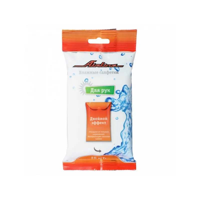 Салфетки влажные для рук (10 шт.) Описание: Влажные салфетки для рук 10 шт универсальные AIRLINE AN-H-02 Влажные салфетки от AIRLINE предназначены для рук и помогут очистить их от загрязнений или неприятных запахов. Салфетки пропитаны экстрактом зеленого чая, который борется с посторонними запахами и оказывает успокаивающее воздействие на кожу рук, не раздражая ее. Упаковка салфеток легко открывается и закрывается с помощью целлофанового многоразового стикера. Универсальные салфетки можно использовать для вытирания рук, лица или тела, а также в качестве салфетки или средства для уборки, что делает их незаменимым помощником в бытовых задачах. Качественный материал не пропускает никаких загрязнений. Салфетки не мылятся, не прилипают, обеспечивая комфортное использование. Преимущества: * Для рук, кожи, тела, универсальные; * Удобное хранение, компактная упаковка; * Обезжиривающая; * Не оставляет ворса; * Подходит для ежедневного применения; * Водная основа; * Не оставляет разводов; * Не оставляет царапин; * Удаляет грязь без использования чистящих средств; Влажные салфетки - это базовая вещь, которая всегда пригодится во время уборки и очистки разных поверхностей. Профессиональная линейка влажных салфеток AIRLINE - это нужная вещь по уходу за автомобилем, удобно хранить в сумке, в бардачке, брать с собой в дорогу, а также применять в быту, например, для зеркал. В линейке AIRLINE, вы найдете широкий ассортимент высококачественных автотоваров и средств по уходу за вашим автомобилем, аксессуары для автомобиля, салфетки для уборки влажные универсальные, салфетки антибактериальные, плотные салфетки для уборки, влажные салфетки от сильных загрязнений, салфетки для рук, салфетки для уборки автосалона, влажные салфетки для кожи, салфетки для стекол, фар и зеркал. Мы гарантируем качество и надежность наших товаров. Характеристики: Артикул: AN-H-02 Плотность материала, г/м2: 35 Длина салфетки, см: 18 Ширина салфетки, см: 15 Материал: гладкий спанлейс Комплектация: Салфетки влажные для рук - 10 шт Упаковка - 1 шт Гарантия: от 1 года.