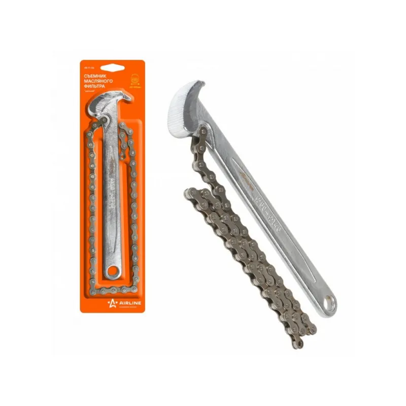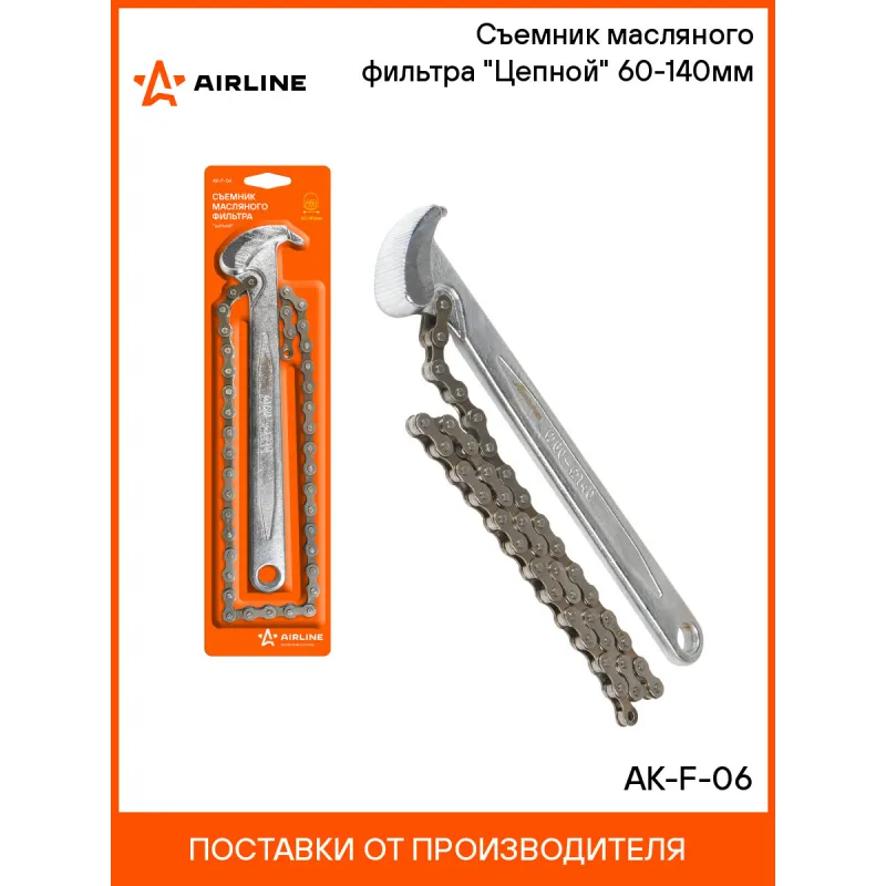 Съемник масляного фильтра "Цепной" 60-140мм Описание: Съемник масляного фильтра "Цепной" AK-F-06 от бренда AIRLINE предназначен для удобного и лёгкого демонтажа масляного фильтра двигателя. Конструкция для съема фильтра представлена в виде рукоятки и цепного зажима, с помощью которого закрепляется деталь. Размер зажима 60-140 мм. Универсальный инструмент для авто в ремонте и техническом обслуживании на СТО, в собственном гараже. Съемник является незаменимым инструментом во время замены масла в двигателе автомобиля (в ДВС), демонтажа масляного фильтра автомобиля и подойдет как для профессионального, так и бытового обслуживания автомобиля. Универсальный съемник масляного фильтра для машины, автомобиля применяется при ремонте и обслуживания авто. Отлично подойдет в качестве практичного подарка в автомобильный набор мужчинам на 23 февраля, автомобилисту, папе, отцу, мужу, парню и другу на Новый год, день рождения и без повода, незаменимая вещь для дома, автосервиса, для профессионального использования. Характеристики: Артикул: AK-F-06 OEM номера: AI050003 Размер, мм: 60-140 Комплектация: Съёмник - 1 шт Гарантия: от 1 года.