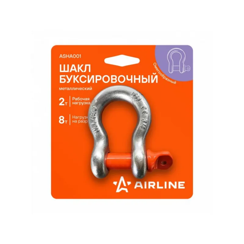 Шакл буксировочный металлический 2 т / 8 т Описание: Шакл буксировочный, 2 т / 8 т стальной, 1 шт AIRLINE ASHA001 Шакл буксировочный омегообразные с резьбой AIRLINE представляют собой надежное и высокопрочное изделие, широко используемое для соединения элементов такелажа, динамических, буксировочных тросов, закрепления блоков или других частей грузовой оснастки, где требуется надежное крепление. Изготовлены из технологичной стали, обеспечивающей высокий коэффициент запаса прочности - х4. Технология гальванического покрытия защищает изделия от коррозии без применения сварки. Подходит для автомобилей массой до 2 т, с минимальной разрывной нагрузкой 8 т и рабочей нагрузкой 2 т. Регулярное промазывание резьбового соединения способствует увеличению срока службы. При использовании следует избегать превышения рабочей нагрузки, чтобы предотвратить деформацию болта и внутренней резьбы. При грузоподъемных операциях крепление к грузу должно осуществляться только за штифт (палец) скобы. Комплект дополняется удобной сумкой, обеспечивающей удобное и компактное хранение шаклов, что делает их использование еще более удобным и практичным в различных условиях. Товар официального производителя AIRLINE. Характеристики: Артикул: ASHA001 Нагрузка на разрыв, т: 8 Рабочая нагрузка, т: 2 Тип шакла: Омегообразный Комплектация: Шакл омегообразный - 1 шт Картонная упаковка - 1 шт Гарантия: от 1 года.