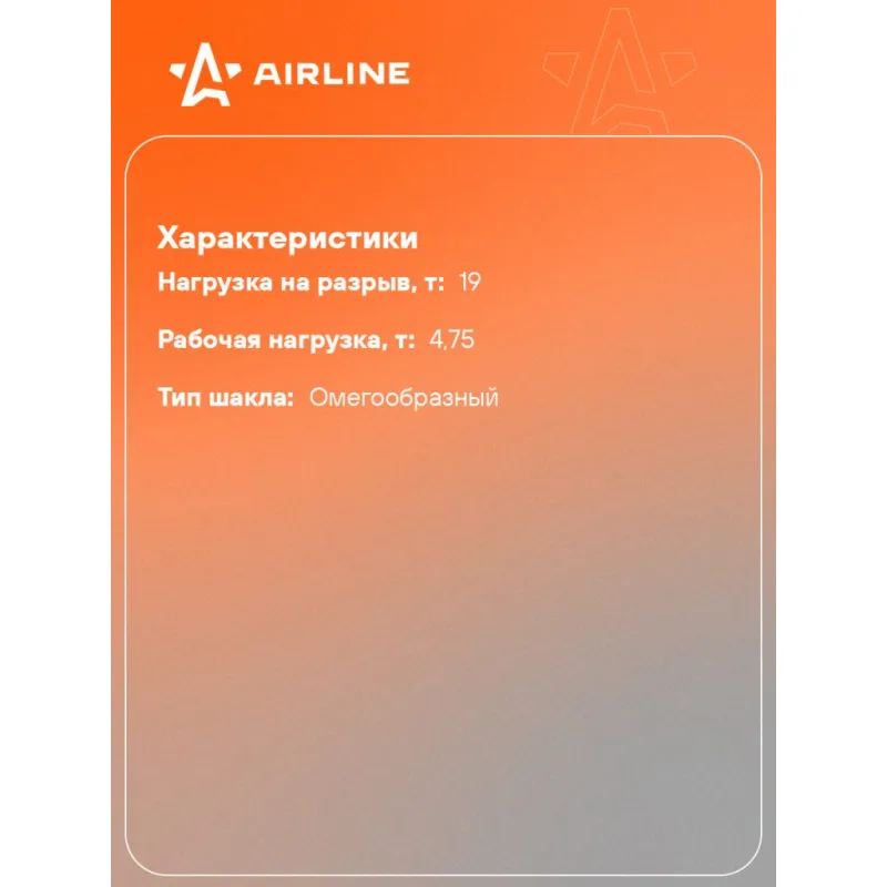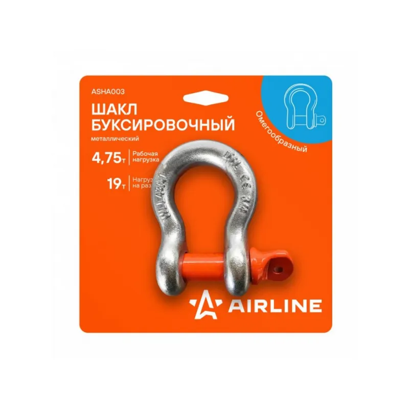 Шакл буксировочный металлический 4,75 т / 19 т Описание: Шакл буксировочный, 4,75 т / 19 т стальной, 1 шт AIRLINE ASHA003 Шакл буксировочный омегообразные с резьбой AIRLINE представляют собой надежное и высокопрочное изделие, широко используемое для соединения элементов такелажа, динамических, буксировочных тросов, закрепления блоков или других частей грузовой оснастки, где требуется надежное крепление. Изготовлены из технологичной стали, обеспечивающей высокий коэффициент запаса прочности - х4. Технология гальванического покрытия защищает изделия от коррозии без применения сварки. Подходит для автомобилей массой до 4,75 т, с минимальной разрывной нагрузкой 19 т и рабочей нагрузкой 4,75 т. Регулярное промазывание резьбового соединения способствует увеличению срока службы. При использовании следует избегать превышения рабочей нагрузки, чтобы предотвратить деформацию болта и внутренней резьбы. При грузоподъемных операциях крепление к грузу должно осуществляться только за штифт (палец) скобы. Комплект дополняется удобной сумкой, обеспечивающей удобное и компактное хранение шаклов, что делает их использование еще более удобным и практичным в различных условиях. Товар официального производителя AIRLINE. Характеристики: Артикул: ASHA003 Нагрузка на разрыв, т: 19 Рабочая нагрузка, т: 4,75 Тип шакла: Омегообразный Комплектация: Картонная упаковка - 1 шт Шакл омегообразный - 1 шт Гарантия: от 1 года.