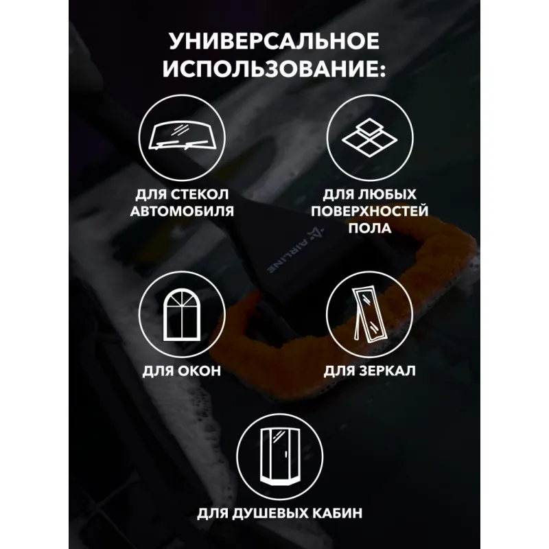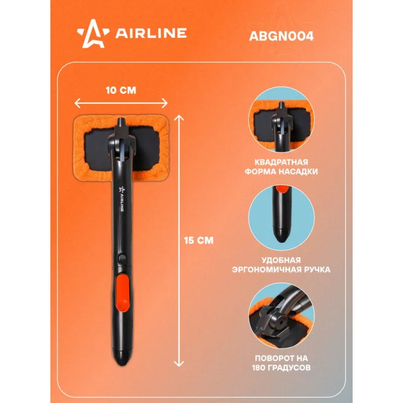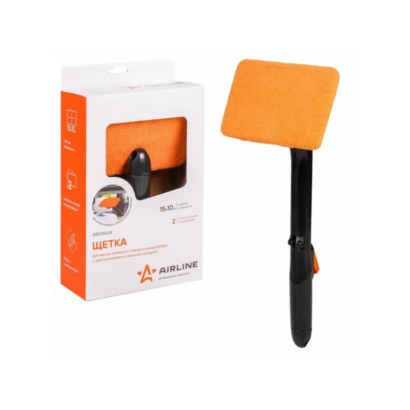 Щетка для мытья лобового стекла из микрофибры с распылителем и сменной насадкой (15*10 см) Описание: Щетка AIRLINE ABGN004 выполнена из пластика с насадкой из мягкой микрофибры. Щетка представляет собой флакон с распылителем и насадку из мягкой микрофибры. Во флакон можно влить средство для стекол и использовать при при мытье и протирке окон. Идеально подходит для мытья лобового стекла за счет подвижности насадки. Отлично справляется с запотевшими стеклами. Благодаря этому, вы сможете без усилий очистить лобовое стекло, крышу, капот, борта грузового автотранспорта. Автощетка оснащена микрофиброй, которая обеспечивает очистку без появления царапин на лакокрасочных поверхностях. Длинный и мягкий ворс на насадке хорошо впитывает воду и отлично собирает пыль с кузова на сухую. Автощетку удобно хранить в багажнике, в кладовке, в машине и легко найдет применение в быту. Автомобильная телескопическая щетка - это самый важный аксессуар который должен быть у каждого автолюбителя. Щетка AIRLINE для автомобиля повысит уровень комфорта во время путешествий и ежедневных поездок, поэтому станет нужным полезным подарком автомобилисту, мужу, папе, бату, дяде, жене, маме, сестре, тете, коллеге. Этот аксессуар для машины - это универсальный подарок на любой праздник, новый год, 23 февраля, 8 марта. В линейке AIRLINE, вы найдете широкий ассортимент высококачественных автотоваров и средств по уходу за вашим автомобилем щетки для окон, водосгоны, скребки, швабры. Мы гарантируем качество и надежность наших товаров. Характеристики: Артикул: ABGN004 Материал: микрофибра Длина в разложенном виде, см: 41 Ширина щетки, см: 15 Длина щетки, см: 10 Комплектация: Щетка из микрофибры с распылителем - 1 шт Салфетка из микрофибры - 1 шт Картонная коробка - 1 шт Гарантия: от 1 года.