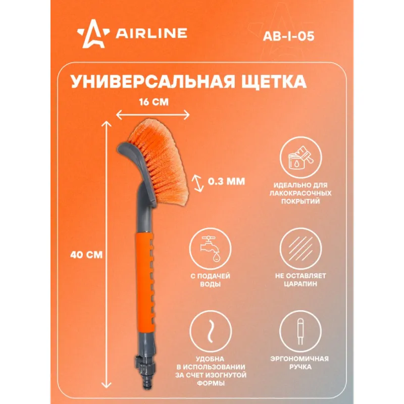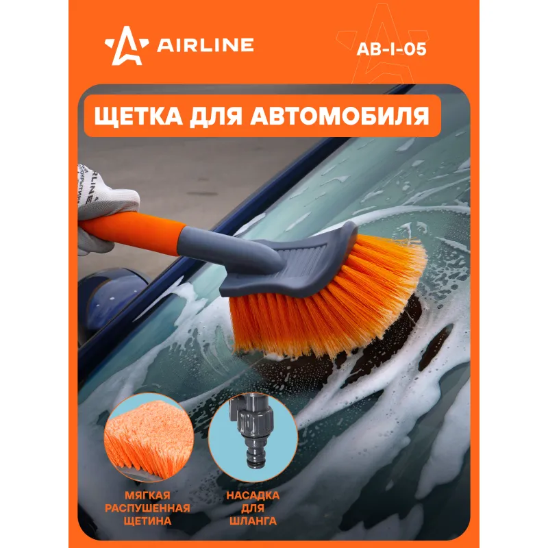 Щетка для мытья с насадкой для шланга, с мягкой распушенной щетиной (40 см) Описание: Щетка AIRLINE AB-I-05 выполнена из пластика с насадкой из мягкой микрофибры с насадкой для шланга, мягкой распушенной щетиной. Компактная пластиковая щетка серого цвета для мытья автомобиля поможет очистить машину от загрязнений. Диаметр щетины щетки составляет 0,3 мм и имеет мягкие распушенные кончики. Рабочая поверхность изделия имеет ворс средней длины, а также оранжевую окраску. Со стороны ручки у изделия расположена насадка для подключения шланга с водой. Идеально подходит для мытья лобового стекла за счет подвижности насадки. Отлично справляется с запотевшими стеклами. Благодаря этому, вы сможете без усилий очистить лобовое стекло, крышу, капот, борта грузового автотранспорта. Автощетка оснащена микрофиброй, которая обеспечивает очистку без появления царапин на лакокрасочных поверхностях. Длинный и мягкий ворс на насадке хорошо впитывает воду и отлично собирает пыль с кузова на сухую. Автощетку удобно хранить в багажнике, в кладовке, в машине и легко найдет применение в быту. Автомобильная телескопическая щетка - это самый важный аксессуар который должен быть у каждого автолюбителя. Щетка AIRLINE для автомобиля повысит уровень комфорта во время путешествий и ежедневных поездок, поэтому станет нужным полезным подарком автомобилисту, мужу, папе, бату, дяде, жене, маме, сестре, тете, коллеге. Этот аксессуар для машины - это универсальный подарок на любой праздник, новый год, 23 февраля, 8 марта. В линейке AIRLINE, вы найдете широкий ассортимент высококачественных автотоваров и средств по уходу за вашим автомобилем щетки для окон, водосгоны, скребки, швабры. Мы гарантируем качество и надежность наших товаров. Характеристики: Артикул: AB-I-05 Ширина щетки, см: 16 Длина в разложенном виде, см: 40 Щетина: мягкая распушенная Присоединительная резьба: Быстросьем + резьба внутренняя 3/4 Диаметр щетины, мм: 0,3 Комплектация: Щетка для мытья с насадкой для шланга с цветным воблером - 1 шт Гарантия: от 1 года.