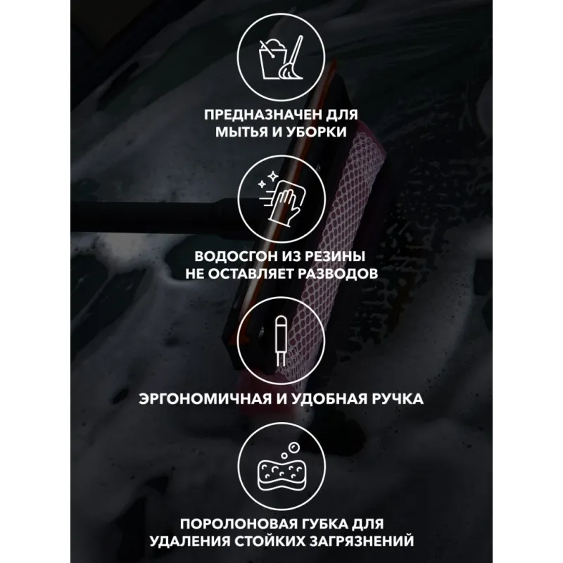Щетка для мытья стекол с поролоном и водосгоном (39см) Описание: Щетки для уборки и мытья 24 шт 20 см с поролоном и водосгоном AIRLINE ABGN008 выполнена из пластика с насадкой из мягкого поролона и водосгоном с другой стороны. Компактная щетка с пластиковой ручкой подойдет для удаления загрязнений со стекол легковых и среднегабаритных автомобилей. На рабочей поверхности щетки расположена поролоновая губка и прорезиненный водосгон. Идеально подходит для мытья лобового стекла за счет размера насадки. Отлично справляется с запотевшими стеклами. Благодаря этому, вы сможете без усилий очистить лобовое стекло, крышу, капот, борта грузового автотранспорта. Автощетка оснащена микрофиброй, которая обеспечивает очистку без появления царапин на лакокрасочных поверхностях. Насадка поролоновая хорошо впитывает воду, очищает стекла и отлично собирает пыль с кузова на сухую. Автощетку удобно хранить в багажнике, в кладовке, в машине и легко найдет применение в быту. Автомобильная телескопическая щетка - это самый важный аксессуар который должен быть у каждого автолюбителя. Щетка AIRLINE для автомобиля повысит уровень комфорта во время путешествий и ежедневных поездок, поэтому станет нужным полезным подарком автомобилисту, мужу, папе, бату, дяде, жене, маме, сестре, тете, коллеге. Этот аксессуар для машины - это универсальный подарок на любой праздник, новый год, 23 февраля, 8 марта. В линейке AIRLINE, вы найдете широкий ассортимент высококачественных автотоваров и средств по уходу за вашим автомобилем щетки для окон, водосгоны, скребки, швабры. Мы гарантируем качество и надежность наших товаров. Характеристики: Артикул: ABGN008 Материал: мягкая резина и поролон Длина в разложенном виде, см: 39 Ширина щетки, см: 20 Комплектация: Щетка с картонным воблером - 1 шт Гарантия: от 1 года.
