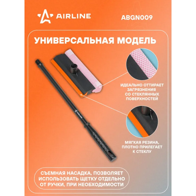 Щетка для мытья стекол с поролоном и водосгоном (52см) Описание: Щетки для уборки и мытья 24 шт 20 см с поролоном и водосгоном AIRLINE ABGN009 выполнена из пластика с насадкой из мягкого поролона и водосгоном с другой стороны. Компактная щетка с пластиковой ручкой подойдет для удаления загрязнений со стекол легковых и среднегабаритных автомобилей. На рабочей поверхности щетки расположена поролоновая губка и прорезиненный водосгон. Идеально подходит для мытья лобового стекла за счет размера насадки. Отлично справляется с запотевшими стеклами. Благодаря этому, вы сможете без усилий очистить лобовое стекло, крышу, капот, борта грузового автотранспорта. Автощетка оснащена микрофиброй, которая обеспечивает очистку без появления царапин на лакокрасочных поверхностях. Насадка поролоновая хорошо впитывает воду, очищает стекла и отлично собирает пыль с кузова на сухую. Автощетку удобно хранить в багажнике, в кладовке, в машине и легко найдет применение в быту. Автомобильная телескопическая щетка - это самый важный аксессуар который должен быть у каждого автолюбителя. Щетка AIRLINE для автомобиля повысит уровень комфорта во время путешествий и ежедневных поездок, поэтому станет нужным полезным подарком автомобилисту, мужу, папе, бату, дяде, жене, маме, сестре, тете, коллеге. Этот аксессуар для машины - это универсальный подарок на любой праздник, новый год, 23 февраля, 8 марта. В линейке AIRLINE, вы найдете широкий ассортимент высококачественных автотоваров и средств по уходу за вашим автомобилем щетки для окон, водосгоны, скребки, швабры. Мы гарантируем качество и надежность наших товаров. Характеристики: Артикул: ABGN009 Материал: мягкая резина и поролон Длина в разложенном виде, см: 52 Ширина щетки, см: 20 Комплектация: Щетка с картонным воблером - 1 шт Гарантия: от 1 года.