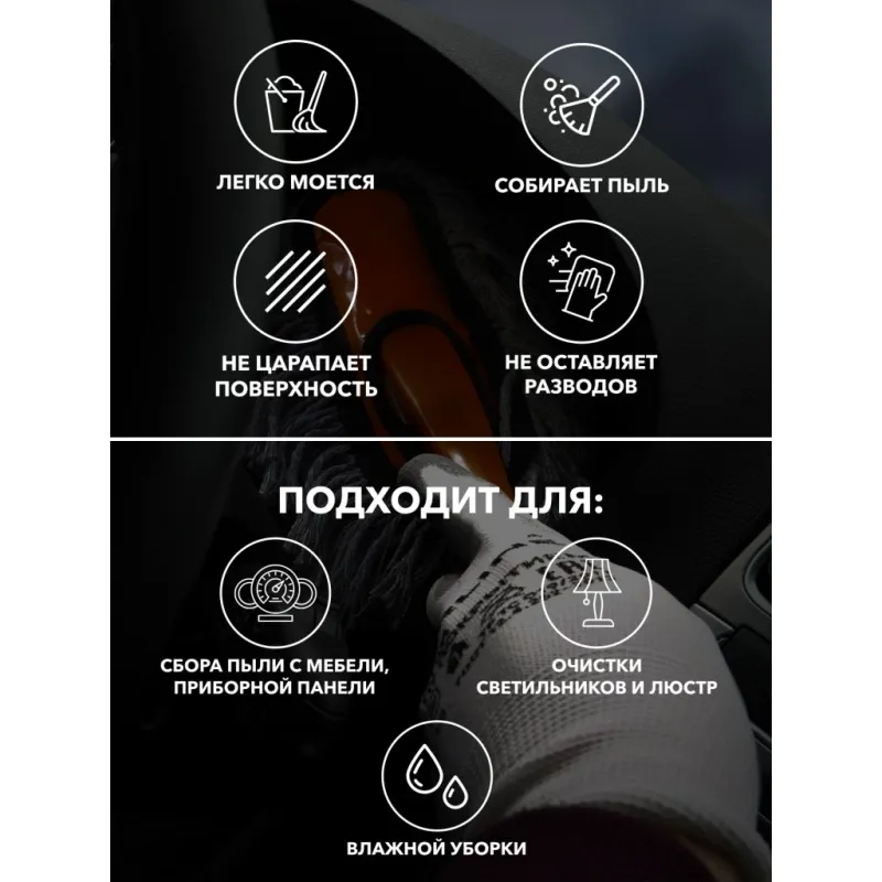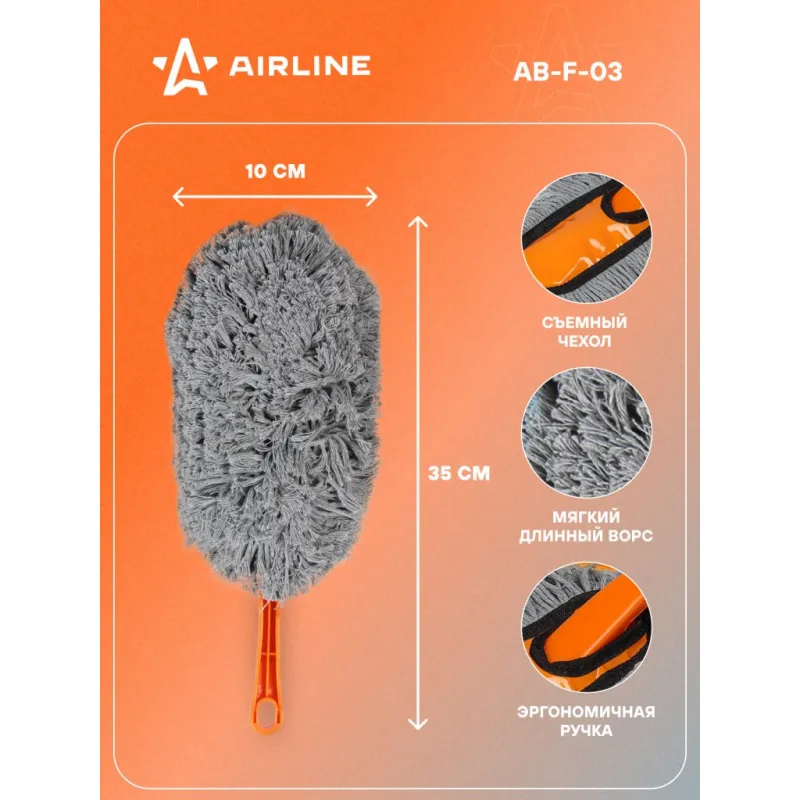 Щетка для удаления пыли средняя (35 см) Описание: Компактная щетка AIRLINE AB-F-03 позволит быстро очистить салон автомобиля от пыли и мелкого мусора. Длина ручки изделия составляет 35 см. Рабочая поверхность щетки оснащена длинным ворсом, который захватывает пыль и устраняет ее с убираемой поверхности. После эксплуатационного периода изделие легко моется и высыхает за короткий период времени благодаря особому строению ворса щетки. Идеально подходит для мытья и очистки лобового стекла за счет размера насадки. Благодаря этому, вы сможете без усилий очистить лобовое стекло, крышу, капот, борта грузового автотранспорта. Автощетка оснащена микрофиброй, которая обеспечивает очистку без появления царапин на лакокрасочных поверхностях. Насадка для щетки хорошо впитывает воду, очищает стекла и отлично собирает пыль с кузова на сухую. Автощетку удобно хранить в багажнике, в кладовке, в машине и легко найдет применение в быту. Автомобильная телескопическая щетка - это самый важный аксессуар который должен быть у каждого автолюбителя. Щетка AIRLINE для автомобиля повысит уровень комфорта во время путешествий и ежедневных поездок, поэтому станет нужным полезным подарком автомобилисту, мужу, папе, бату, дяде, жене, маме, сестре, тете, коллеге. Этот аксессуар для машины - это универсальный подарок на любой праздник, новый год, 23 февраля, 8 марта. В линейке AIRLINE, вы найдете широкий ассортимент высококачественных автотоваров и средств по уходу за вашим автомобилем щетки для окон, водосгоны, скребки, швабры. Мы гарантируем качество и надежность наших товаров. Характеристики: Артикул: AB-F-03 Длина в разложенном виде, см: 35 Ширина щетки, см: 10 Материал: хлопок Комплектация: Щетка для удаления пыли средняя (35 см) в пакете с картонным навершием - 1 шт Гарантия: от 1 года.