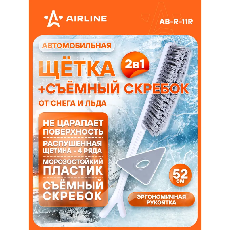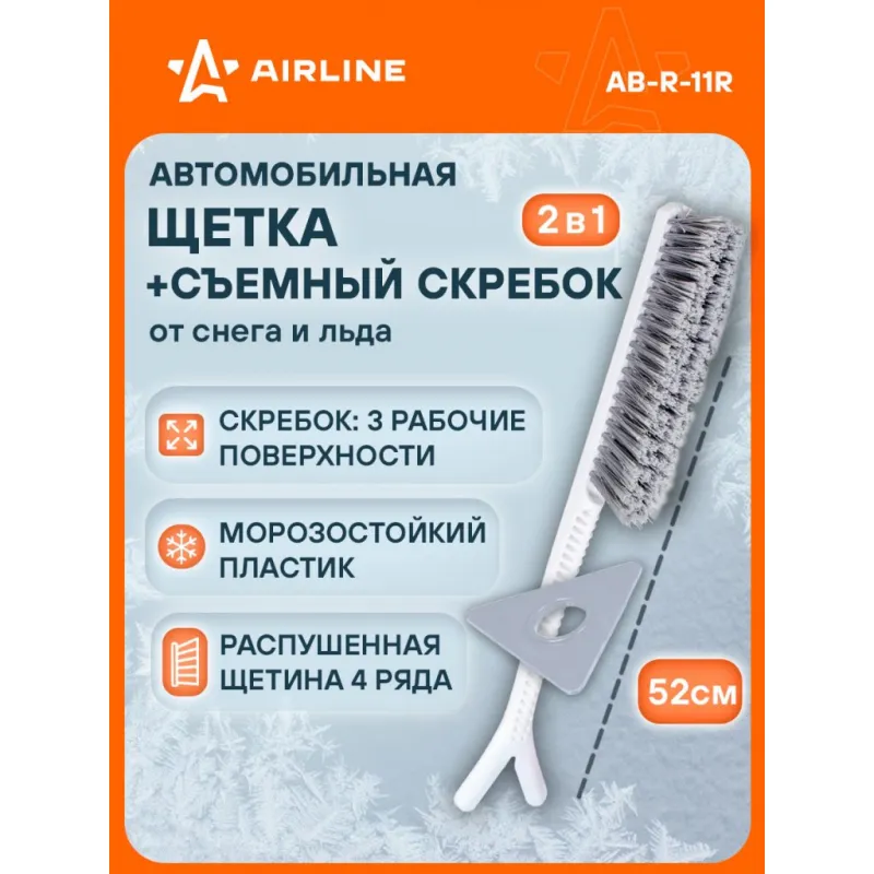 Щетка от снега и льда с мягкой распушённой щетиной (52 см) + съемный скребок Описание: Модель автомобильной щетки AB-R-11R со съемным скребком имеет четырехрядную щетину, которая позволяет легко убирать даже залежавшийся снег с автомобиля. Распушенная щетина позволяет проводить очистку снега с лакокрасочной поверхности автомобиля максимально деликатно. Скребок имеет 3 рабочие поверхности, что увеличивает срок его эксплуатации в 3 раза! Так же вам не нужно использовать всю щетку, если необходим для работы только скребок - снимаете его со щетки и используете отдельно! Особенности: - Длина щетки - 52 см; - Удобное хранение; - Не царапает поверхность автомобиля; - Быстрое и эффективное очищение автомобиля от снега, льда, наледи; - Количество рядов щетины у щетки - 4; Щетка выполнена из морозоустойчивого пластика, а эргономичная форма делают эксплуатацию изделия удобной даже при низком температурном режиме, предотвращает соскальзывание и замерзание рук. Для особо сложных загрязнений и льда предусмотрен съемный скребок на другом конце щетки. Щетка для машины AIRLINE - незаменимый аксессуар в зимний сезон максимально удобна в использовании независимо от габаритов автомобиля. В зимней линейке AIRLINE вы найдете щетки для машины от снега со скребком, скребки для окон, с телескопической эргономичной рукоятью, мягкой/жесткой щетиной, и другие автоаксессуары. Автомобильную щетку для снега можно преподнести в подарок мужчине, женщине, любимому парню, мужу, брату, коллеге, жене, другу, папе и дедушке на любой праздник, день рождения, Новый год и просто так. Характеристики: Артикул: AB-R-11R Количество рядов щетины: 4 Диаметр щетинок, мм: 0,3 Длина в разложенном виде, см: 52 Комплектация: Щетка от снега и льда с мягкой распушённой щетиной (52 см) + съемный скребок с лейблом - 1 шт Гарантия: от 1 года.