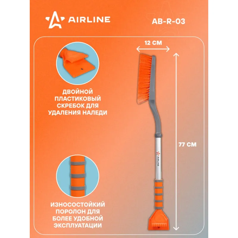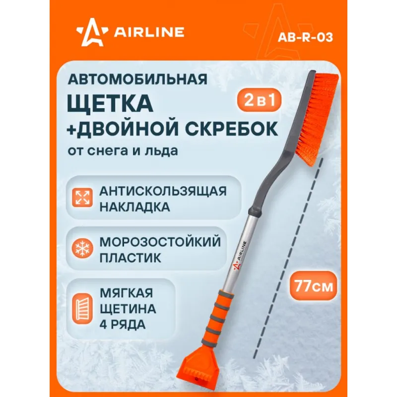 Щетка от снега и льда с мягкой щетиной + двойной скребок (77 см) Описание: Данная модель щетки AB-R-03 имеет четырехрядную щетину и двойной скребок для удаления льда. Усовершенствованный скребок позволяет удалять лед с любой поверхности, не повреждая ее. Особенности: - Длина щетки - 77 см; - Удобное хранение; - Не царапает поверхность автомобиля; - Быстрое и эффективное очищение автомобиля от снега, льда, наледи; - Количество рядов щетины у щетки - 4; Рукоятка из алюминия оснащена эргономичной поролоновой вставкой, которая обеспечивает дополнительный комфорт при уборке снега. Эргономичная форма делают эксплуатацию изделия удобной даже при низком температурном режиме, предотвращает соскальзывание и замерзание рук. Для особо сложных загрязнений и льда предусмотрен скребок на другом конце щетки. Щетка для машины AIRLINE - незаменимый аксессуар в зимний сезон максимально удобна в использовании независимо от габаритов автомобиля. В зимней линейке AIRLINE вы найдете щетки для машины от снега со скребком, скребки для окон, с телескопической эргономичной рукоятью, мягкой/жесткой щетиной, и другие автоаксессуары. Автомобильную щетку для снега можно преподнести в подарок мужчине, женщине, любимому парню, мужу, брату, коллеге, жене, другу, папе и дедушке на любой праздник, день рождения, Новый год и просто так. Характеристики: Артикул: AB-R-03 Количество рядов щетины: 4 Диаметр щетинок, мм: 0,4 Длина в разложенном виде, см: 77 Рукоятка: поролоновая вставка Комплектация: Щетка от снега и льда с двойным скребком (77 см) с лейблом - 1 шт Гарантия: от 1 года.