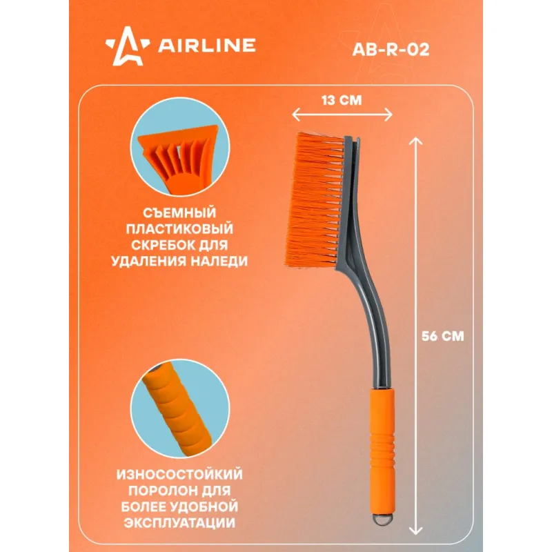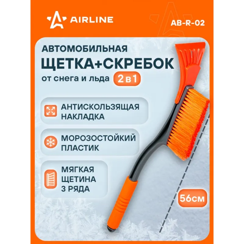 Щетка от снега и льда с мягкой щетиной + скребок (56 см) Описание: Особое строение щетки для удаления снега и льда с поверхности автомобиля делает ее более удобной при использовании и позволяет удалять загрязнения быстро и без затрат большого количества усилий. Щетка оснащена трехрядной густой щетиной, а также перпендикулярно расположенным скребком с увеличенной площадью рабочей поверхности. Для дополнительного удобства при работе во время низких температурных условий рукоятка щетки имеет поролоновую вставку с эргономичной поверхностью. Особенности: - Длина щетки - 56 см; - Удобное хранение; - Не царапает поверхность автомобиля; - Быстрое и эффективное очищение автомобиля от снега, льда, наледи; - Количество рядов щетины у щетки - 3; Щетка выполнена из морозоустойчивого пластика, а эргономичная форма делают эксплуатацию изделия удобной даже при низком температурном режиме, предотвращает соскальзывание и замерзание рук. Для особо сложных загрязнений и льда предусмотрен скребок на другом конце щетки. Щетка для машины AIRLINE - незаменимый аксессуар в зимний сезон максимально удобна в использовании независимо от габаритов автомобиля. В зимней линейке AIRLINE вы найдете щетки для машины от снега со скребком, скребки для окон, с телескопической эргономичной рукоятью, мягкой/жесткой щетиной, и другие автоаксессуары. Автомобильную щетку для снега можно преподнести в подарок мужчине, женщине, любимому парню, мужу, брату, коллеге, жене, другу, папе и дедушке на любой праздник, день рождения, Новый год и просто так. Характеристики: Артикул: AB-R-02 Количество рядов щетины: 3 Диаметр щетинок, мм: 0,4 Длина в разложенном виде, см: 56 Рукоятка: поролоновая вставка Комплектация: Щетка от снега и льда (56 см) с лейблом - 1 шт Гарантия: от 1 года.