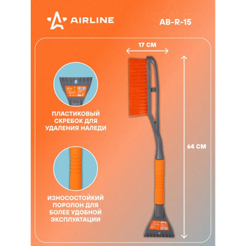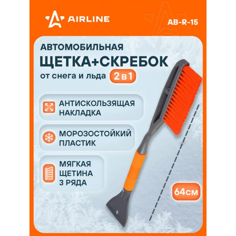 Щетка от снега и льда с мягкой щетиной + скребок (64 см) Описание: Особое строение щетки для удаления снега и льда с поверхности автомобиля делает ее более удобной при использовании и позволяет удалять загрязнения быстро и без затрат большого количества усилий. Щетка оснащена трехрядной густой щетиной, а также перпендикулярно расположенным скребком с увеличенной площадью рабочей поверхности. Для дополнительного удобства при работе во время низких температурных условий рукоятка щетки имеет поролоновую вставку с эргономичной поверхностью. Особенности: - Длина щетки - 64 см; - Удобное хранение; - Не царапает поверхность автомобиля; - Быстрое и эффективное очищение автомобиля от снега, льда, наледи; - Количество рядов щетины у щетки - 3; Щетка выполнена из морозоустойчивого пластика, а эргономичная форма делают эксплуатацию изделия удобной даже при низком температурном режиме, предотвращает соскальзывание и замерзание рук. Для особо сложных загрязнений и льда предусмотрен скребок на другом конце щетки. Щетка для машины AIRLINE - незаменимый аксессуар в зимний сезон максимально удобна в использовании независимо от габаритов автомобиля. В зимней линейке AIRLINE вы найдете щетки для машины от снега со скребком, скребки для окон, с телескопической эргономичной рукоятью, мягкой/жесткой щетиной, и другие автоаксессуары. Автомобильную щетку для снега можно преподнести в подарок мужчине, женщине, любимому парню, мужу, брату, коллеге, жене, другу, папе и дедушке на любой праздник, день рождения, Новый год и просто так. Характеристики: Артикул: AB-R-15 Количество рядов щетины: 3 Диаметр щетинок, мм: 0,3 Длина в разложенном виде, см: 64 Рукоятка: поролоновая вставка Комплектация: Щетка от снега и льда с мягкой щетиной (64 см) с лейблом - 1 шт Гарантия: от 1 года.
