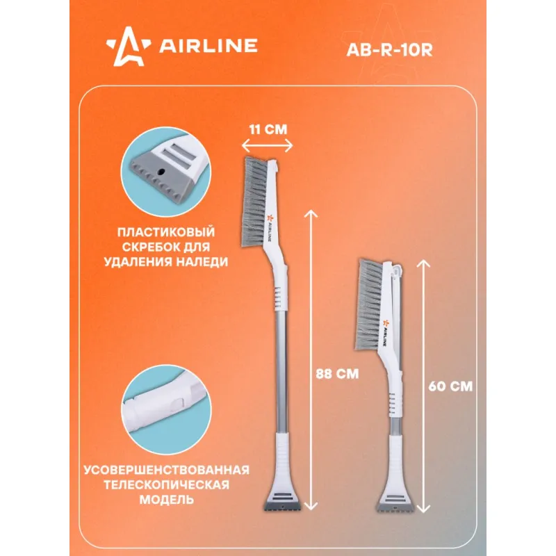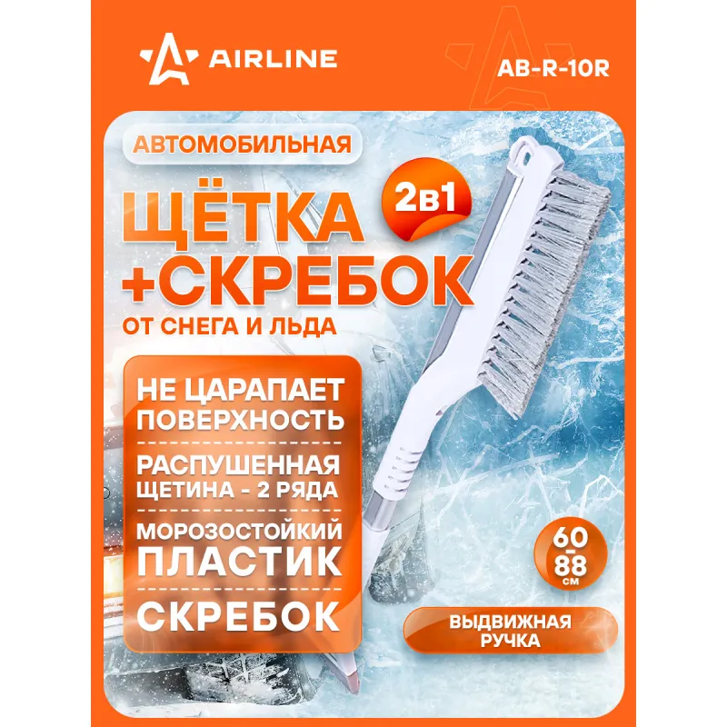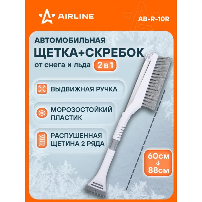 Щетка от снега и льда с плоской телескоп.рукояткой с мягкой распушённой щетиной + скребок (60-88 см) Описание: Щетка для очистки льда и снега представляет собой усовершенствованную модель, разработанную специально по технологии AIRLINE. Щетка оснащена плоской алюминиевой рукояткой, которая не позволяет изделию прокручиваться во время эксплуатации, что значительно повышает комфорт при использовании. Распушенная щетина позволяет проводить очистку снега с лакокрасочной поверхности автомобиля максимально деликатно. Особенности: - Длина в сложенном/разложенном виде - 88*60 см; - Удобное хранение; - Не царапает поверхность автомобиля; - Быстрое и эффективное очищение автомобиля от снега, льда, наледи; - Количество рядов щетины у щетки - 2; Щетка выполнена из высококачественных материалов, имеет рукоятку из алюминия. В состав рукоятки входит прочный пластик, который не подвержен перепадам температур. Для особо сложных загрязнений и льда предусмотрен скребок на другом конце щетки. Щетка для машины со складной/раздвижной ручкой AIRLINE - незаменимый аксессуар в зимний сезон максимально удобна в использовании независимо от габаритов автомобиля. В зимней линейке AIRLINE вы найдете щетки для машины от снега со скребком, скребки для окон, с телескопической эргономичной рукоятью, мягкой/жесткой щетиной, и другие автоаксессуары. Автомобильную щетку для снега можно преподнести в подарок мужчине, женщине, любимому парню, мужу, брату, коллеге, жене, другу, папе и дедушке на любой праздник, день рождения, Новый год и просто так. Характеристики: Артикул: AB-R-10R Количество рядов щетины: 2 Диаметр щетинок, мм: 0,3 Длина в разложенном виде, см: 88 Длина в сложенном виде, см: 60 Комплектация: Щетка от снега и льда с плоской телескоп.рукояткой с мягкой распушённой щетиной (88 см) с лейблом - 1 шт Гарантия: от 1 года.