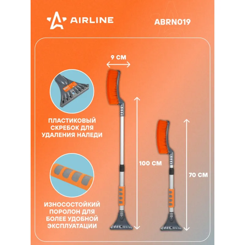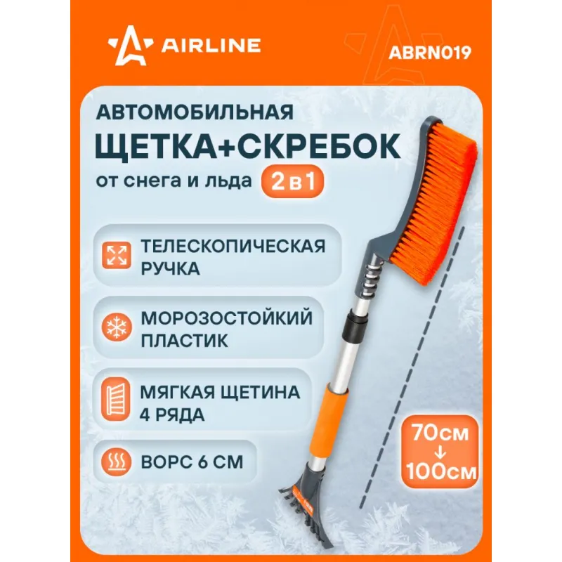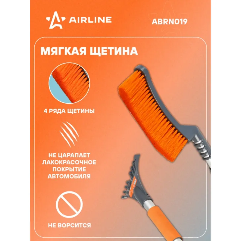 Щетка от снега и льда с телескоп. рукояткой и мягкой щетиной "Волна" + скребок (70-100см) Описание: Данная модель щетки для уборки снега и льда оснащена телескопической ручкой с усиленным основанием рабочей поверхности, а также четырехрядной щетиной, которая быстро устраняет загрязнения, не нанося при этом повреждений поверхности автомобиля. Ворс длиной 6 см. не прогибается при использовании и эффективно убирает снег, не царапая поверхность автомобиля. Особенности: - Длина в сложенном/разложенном виде - 100*70 см; - Удобное хранение; - Не царапает поверхность автомобиля; - Быстрое и эффективное очищение автомобиля от снега, льда, наледи; - Количество рядов щетины у щетки - 4; Щетка имеет рукоятку из алюминия, а также специальную эргономичную вставки из морозоустойчивого поролона, которые делают эксплуатацию изделия удобной даже при низком температурном режиме. В состав рукоятки входит прочный пластик, который не подвержен перепадам температур. Для особо сложных загрязнений и льда предусмотрен скребок на другом конце щетки. Щетка для машины со складной/раздвижной ручкой AIRLINE - незаменимый аксессуар в зимний сезон максимально удобна в использовании независимо от габаритов автомобиля. В зимней линейке AIRLINE вы найдете щетки для машины от снега со скребком, скребки для окон, с телескопической эргономичной рукоятью, мягкой/жесткой щетиной, и другие автоаксессуары. Автомобильную щетку для снега можно преподнести в подарок мужчине, женщине, любимому парню, мужу, брату, коллеге, жене, другу, папе и дедушке на любой праздник, день рождения, Новый год и просто так. Характеристики: Артикул: ABRN019 Количество рядов щетины: 4 Диаметр щетинок, мм: 0,4 Длина в разложенном виде, см: 100 Длина в сложенном виде, см: 70 Рукоятка: поролоновая вставка Скребок, см: 14,5 Комплектация: Щетка - 1 шт Гарантия: от 1 года.