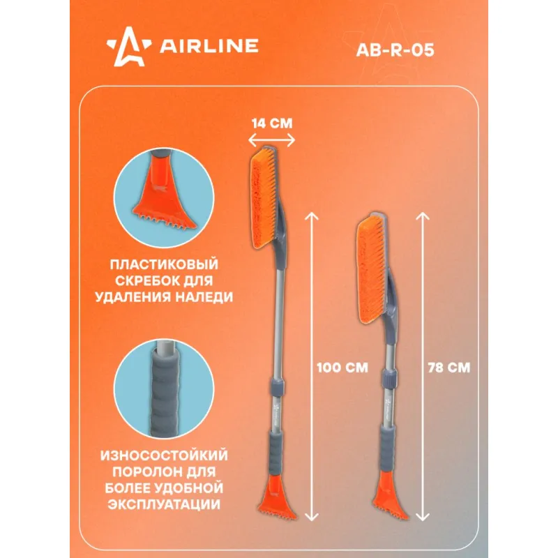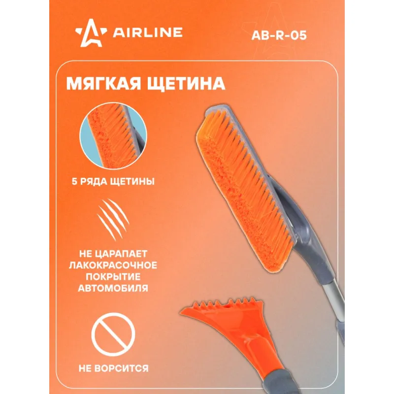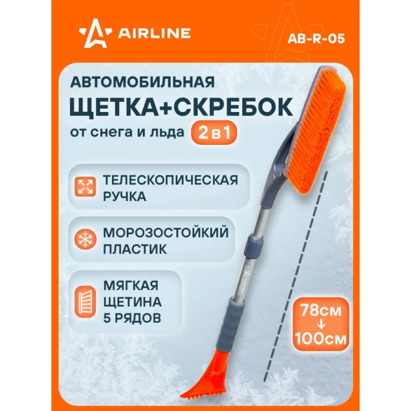 Щетка от снега и льда с телескопической рукояткой и мягкой щетиной + скребок (78-100 см) Описание: Данная модель щетки для уборки снега и льда оснащена телескопической ручкой с усиленным основанием рабочей поверхности, а также пятирядной щетиной, которая быстро устраняет загрязнения, не нанося при этом повреждений поверхности автомобиля. Особенности: - Длина в сложенном/разложенном виде - 100*78 см; - Удобное хранение; - Не царапает поверхность автомобиля; - Быстрое и эффективное очищение автомобиля от снега, льда, наледи; - Количество рядов щетины у щетки - 5; Щетка имеет рукоятку из алюминия, а также специальную эргономичную вставки из морозоустойчивого поролона, которые делают эксплуатацию изделия удобной даже при низком температурном режиме. В состав рукоятки входит прочный пластик, который не подвержен перепадам температур. Для особо сложных загрязнений и льда предусмотрен скребок на другом конце щетки. Щетка для машины со складной/раздвижной ручкой AIRLINE - незаменимый аксессуар в зимний сезон максимально удобна в использовании независимо от габаритов автомобиля. В зимней линейке AIRLINE вы найдете щетки для машины от снега со скребком, скребки для окон, с телескопической эргономичной рукоятью, мягкой/жесткой щетиной, и другие автоаксессуары. Автомобильную щетку для снега можно преподнести в подарок мужчине, женщине, любимому парню, мужу, брату, коллеге, жене, другу, папе и дедушке на любой праздник, день рождения, Новый год и просто так. Характеристики: Артикул: AB-R-05 Количество рядов щетины: 5 Диаметр щетинок, мм: 0,3 Длина в разложенном виде, см: 100 Длина в сложенном виде, см: 78 Рукоятка: поролоновая вставка Комплектация: Щетка от снега и льда с телескопической ручкой (78-100см) с лейблом - 1 шт Гарантия: от 1 года.
