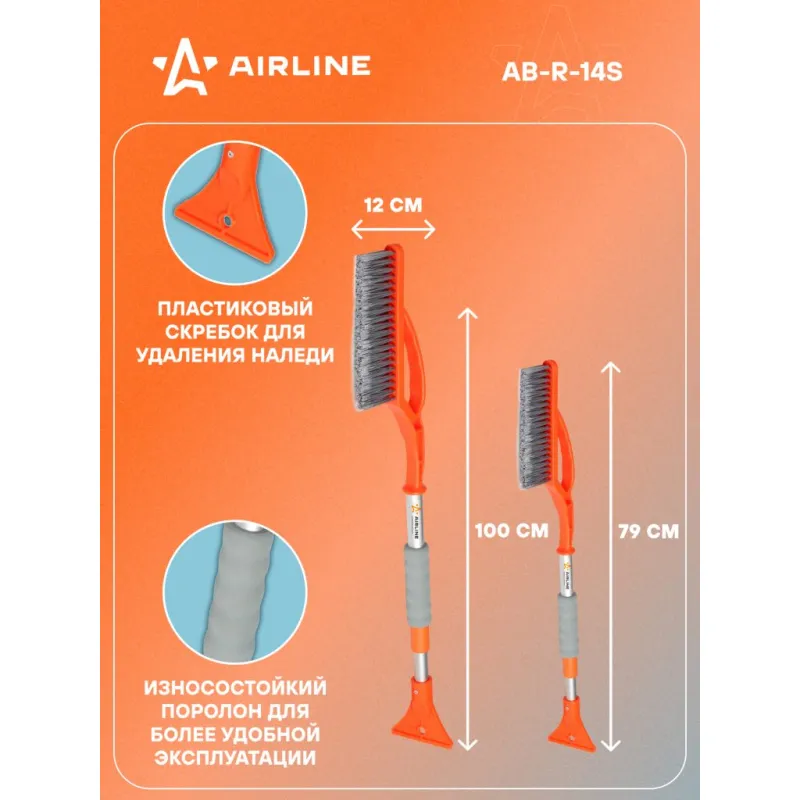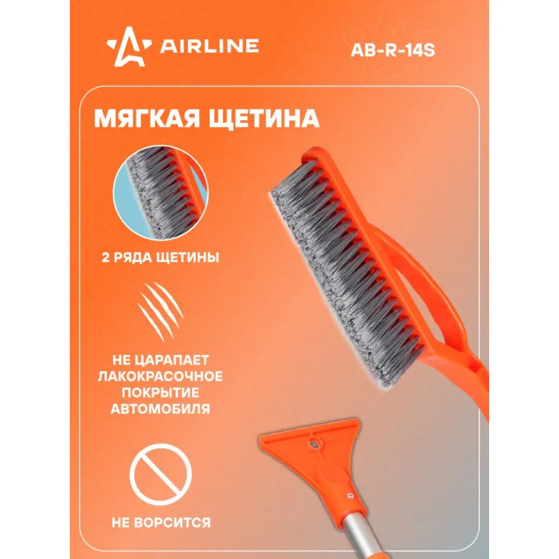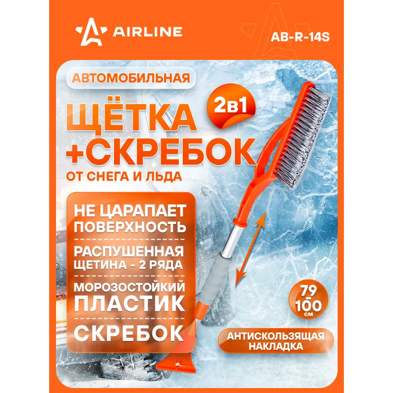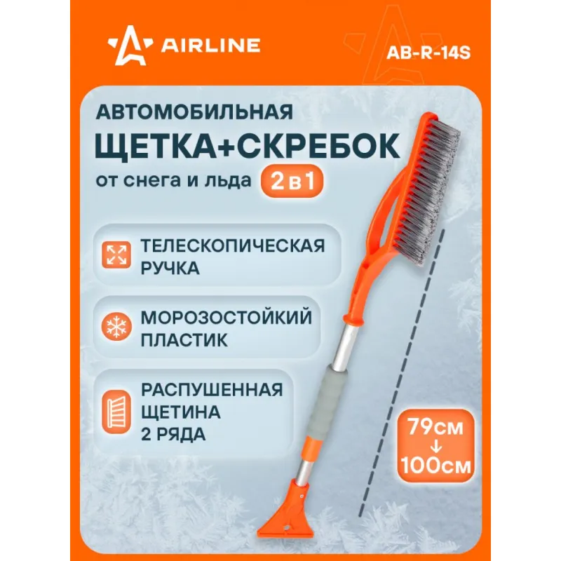 Щетка от снега и льда с телескопической рукояткой и распушённой щетиной + скребок (79-100 см) Описание: Данная модель щетки для уборки снега и льда оснащена телескопической ручкой с усиленным основанием рабочей поверхности, а также двухрядной щетиной, которая быстро устраняет загрязнения, не нанося при этом повреждений поверхности автомобиля. Особенности: - Длина в сложенном/разложенном виде - 100*79 см; - Удобное хранение; - Не царапает поверхность автомобиля; - Быстрое и эффективное очищение автомобиля от снега, льда, наледи; - Количество рядов щетины у щетки - 2; Щетка имеет рукоятку из алюминия, а также специальную эргономичную вставки из морозоустойчивого поролона, которые делают эксплуатацию изделия удобной даже при низком температурном режиме. В состав рукоятки входит прочный пластик, который не подвержен перепадам температур. Для особо сложных загрязнений и льда предусмотрен скребок на другом конце щетки. Щетка для машины со складной/раздвижной ручкой AIRLINE - незаменимый аксессуар в зимний сезон максимально удобна в использовании независимо от габаритов автомобиля. В зимней линейке AIRLINE вы найдете щетки для машины от снега со скребком, скребки для окон, с телескопической эргономичной рукоятью, мягкой/жесткой щетиной, и другие автоаксессуары. Автомобильную щетку для снега можно преподнести в подарок мужчине, женщине, любимому парню, мужу, брату, коллеге, жене, другу, папе и дедушке на любой праздник, день рождения, Новый год и просто так. Характеристики: Артикул: AB-R-14S Количество рядов щетины: 2 Диаметр щетинок, мм: 0,3 Длина в разложенном виде, см: 100 Длина в сложенном виде, см: 79 Рукоятка: поролоновая вставка Комплектация: Щетка от снега и льда с телескопической рукояткой и распушённой щетиной (100 см) с лейблом - 1 шт Гарантия: от 1 года.