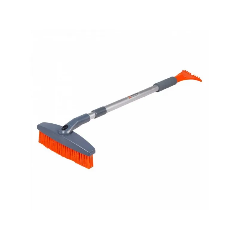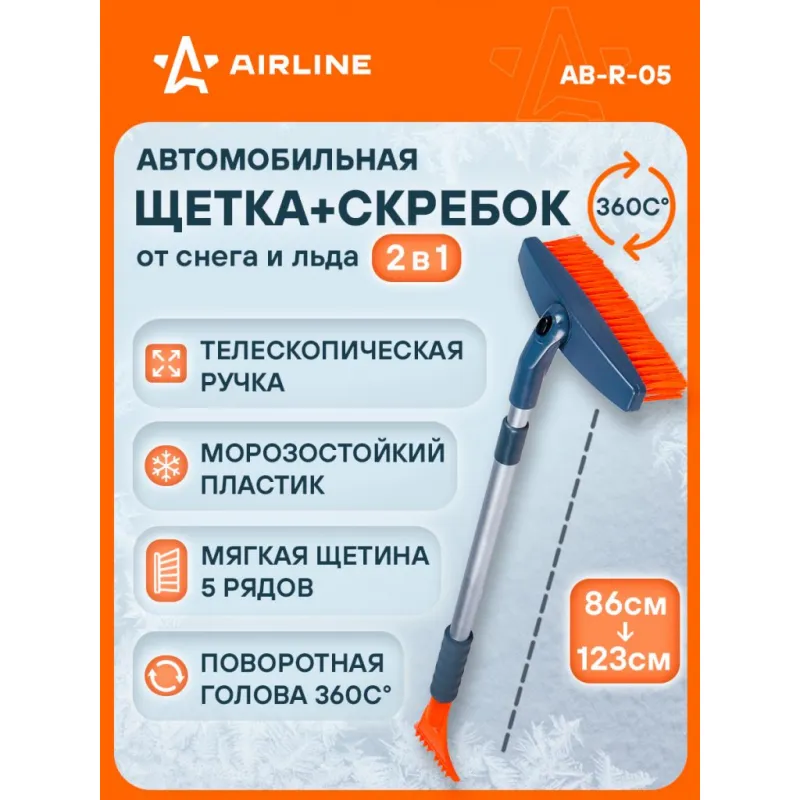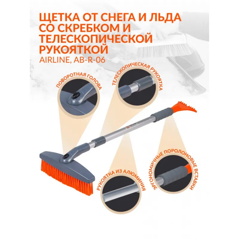 Щетка от снега + скребок (мягкая щетина, поворотная голова, телескоп.рукоятка 86-123см) Описание: Флагманская модель щетки для уборки снега и льда оснащена телескопической ручкой. Особенности: - Длина в сложенном/разложенном виде - 123*86 см; - Удобное хранение; - Не царапает поверхность автомобиля; - Быстрое и эффективное очищение автомобиля от снега, льда, наледи; - Щетка имеет поворотную голову, которая позволяет с двойным удобством убрать снег с автомобиля; - Количество рядов щетины у щетки - 5; Щетка выполнена из высококачественных материалов, имеет рукоятку из алюминия, а также специальные эргономичные вставки из морозоустойчивого поролона, которые делают эксплуатацию изделия удобной даже при низком температурном режиме, предотвращает соскальзывание и замерзание рук. В состав рукоятки входит прочный пластик, который не подвержен перепадам температур. Для особо сложных загрязнений и льда предусмотрен скребок на другом конце щетки. Щетка для машины со складной/раздвижной ручкой AIRLINE - незаменимый аксессуар в зимний сезон максимально удобна в использовании независимо от габаритов автомобиля. В зимней линейке AIRLINE вы найдете щетки для машины от снега со скребком, скребки для окон, с телескопической эргономичной рукоятью, мягкой/жесткой щетиной, и другие автоаксессуары. Автомобильную щетку для снега можно преподнести в подарок мужчине, женщине, любимому парню, мужу, брату, коллеге, жене, другу, папе и дедушке на любой праздник, день рождения, Новый год и просто так. Характеристики: Артикул: AB-R-06 Количество рядов щетины: 5 Диаметр щетинок, мм: 0,3 Длина в разложенном виде, см: 123 Длина в сложенном виде, см: 86 Рукоятка: поролоновая вставка Комплектация: Щетка от снега и льда с телескопической ручкой (123 см) с лейблом - 1 шт Гарантия: от 1 года.