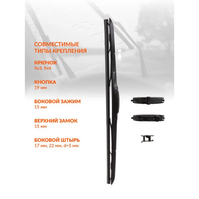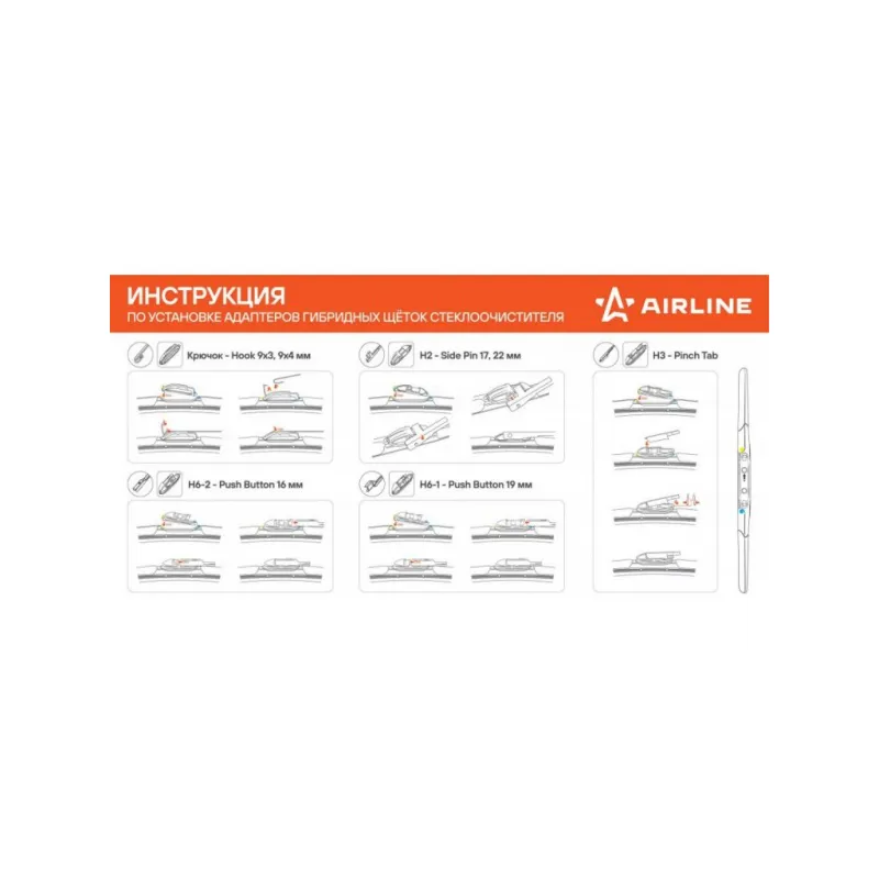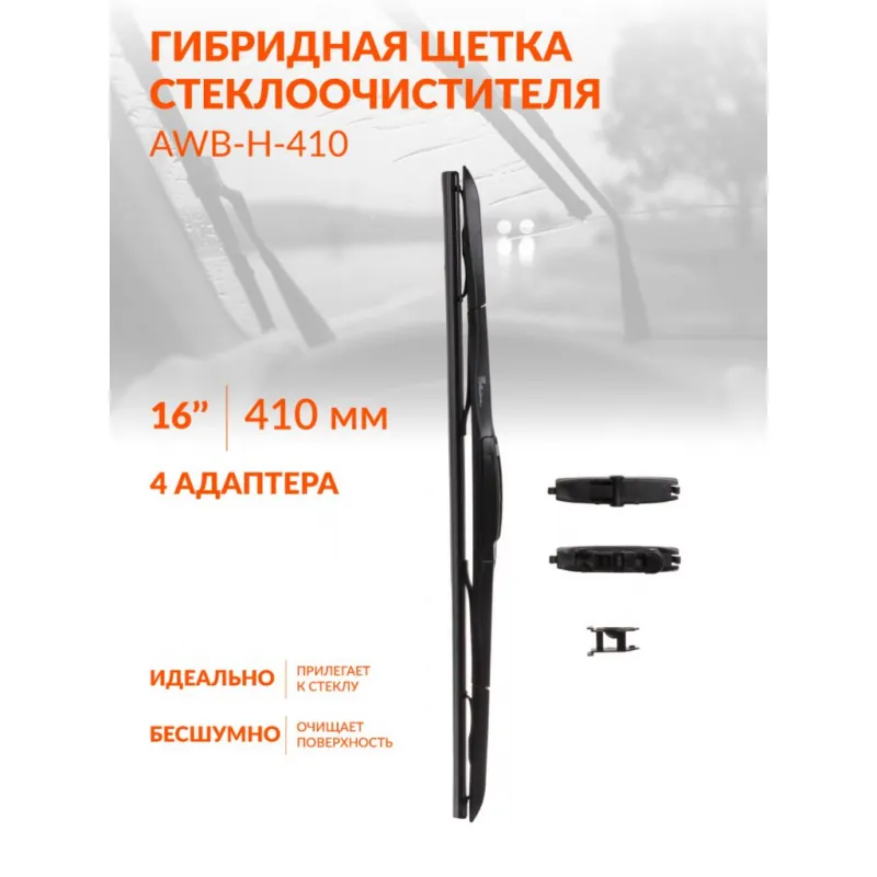 Щетка стеклоочистителя 400 мм (16") гибридная 5 адаптеров Описание: Гибридные щетки - это смесь каркасной щетки, со всеми ее преимуществами надежного прилегания к стеклу автомобиля и наличием пластикового кожуха. Кожух выполняет защитную функцию и не позволяет налипать мокрому снегу и льду. Второе его преимущество - он выполняет функцию спойлера, благодаря аэродинамической конструкции. Щетка гораздо лучше прилегает к стеклу автомобиля, особенно это заметно на больших скоростях. Для щеток были специально разработаны 3 различных мульти-адаптера, которые подходят на 8 типов поводков Hook 9x3, 9x4 mm - Крючок 9x3, 9x4 мм,Push Button 16 mm - Узкая кнопка 16 мм (H6-2), Push Button 19 mm - Кнопка 19 мм (H6-1), и с помощью которых становится возможным использовать щетки в подавляющем большинстве существующих креплений, и соответственно сделать подходящими на 95% автомобилей. Наличие в резине частиц озона, а также нанесение графитового покрытия на верхний эксплуатационный слой резины. Озон создает anti-age технологию, которая значительно увеличивает период использования щетки и обеспечивает сохранение ее рабочих свойств. При работе щетки не создают шумовых помех, а также гладко скользят по стеклу, обеспечивая тщательное и безопасное очищение. Если у вас есть вопросы по применяемости, мы всегда готовы помочь вам с подбором по VIN-НОМЕРУ ВАШЕГО АВТОМОБИЛЯ. Преимущества щетки AIRLINE AWB-H-410 -Материал щетки - долговечная искусственная резина (произведенная по эксклюзивной anti-age технологии с использованием озона); -Бесшумная работа каркасной щетки стеклоочистителя; -Равномерный прижим щетки к поверхности стекла; Характеристики: Артикул: AWB-H-410 OEM номера: 85212-87202-000, 85212-87210-000, 85212-87501-000, 85212-87801-000, 85212-97501, 85212-97501-000, 85222-B2010-000, 85222-B2080, 85222-B2080-000, 85291-44080, 85291-60060, 85291-87501-000, 85220-87506-000, 85220-87607-000, 85222-97207-000, 85222-97210, 85222-97210-000, 85222-B1010, 85220-22370-000, 85220-22380-000, 85220-22600-000, 85220-87117-000, 85220-87219-000, 85220-87505-000, 2S6J17528AC, 2S6J17528BA, A780X17528AHA, 1202188, 1712819, 1733613, 7278921, AS6J-17528-BA, 1 537 086, 76630-SEA-G01, 76630-SEA-G11, 76630-SWA-A01, 38450-693-023, 38450-SB3-952, 76620-S2A-003, 76630-T7A-003, 76630-TME-T02, 76630-TVA-A01, 76730-SZT-G02, 76620-S2A-013, 76620-S2A-023, 76620-SJ6-003, 76630-S7S-003, 76630-S7S-J01, 76630-T0A-J01, 8-97121-982-0, 11180-5205070, 1118-5205070, 11180-5205072-01, 11180-5205072-00, 21214-5205070-10, 11170-5205072-04, 8450050812, 11190-6313200-01, B467-67-330, CC30-67-330, DB02-67-330, DB10-67-330, DD14-67-330, G307-67-330, SE10-67-330, SE10-67-330A, SE10-67-330B, DC28-67-330, G307-67-330A, G307-67-330B, LC64-67-330, S05C-67-330, S096-67-330, CB08-67-330, D062-67-330, D062-67-330A, D351-67-330, D376-67-330A, DC21-67-330, A086-67-330, B467-67-330A, C101-67-330, C177-67-330, C238-67-330A, C245-67-330A, 1A16-67-330, 1A19-67-330, 1A61-67-330, 1A64-67-330, 1N14-67-330, A002-67-330, GS1E-67-330, 0223-67-330, 1A00-67-330, 1A06-67-330, 1A06-67-330A, 1A11-67-330, MB542222, MBZ0427009, AW 334865, MB 184023, MB 196744, MB261585, MR 530979, MR904741, MR 339831, MR 339993, MR 416318, MR 416630, MR 472604, MR 472607, MN117088, MQ 700003, MQ 911608, MR 155393, MR 164791, MR 300499, MB 415739, MB510386, MB510387, MB 542225, MB848835, MB 929027, 28790-05R00, 28890-2Y91C, 28890-4EH1A, 28890-C7160, 28890-JG410, KE288-89925-AF, 28890-W7511, AY001-U400R, AY00A-UT31R, AY00A-UZ51R, AY02A-UL33R, 2889095F0D, 28890-EQ010, 28890-EQ310, 28890-HA00B, 28890-HC011, 28890-JX31B, 28890-2Y910, 28890-2Y912, 28890-4A00D, 28890-6A00B, 28890-8H910, 28890-95F0B, 28790-01N05, 28790-30R05, 28790-5F000, 28790-5F010, 28790-9C001, 28790-HA001, 12 72 789, 62 72 310, 6423.H0, 6426.T7, 993.628.03800, 993.628.03801, 7701 017 267, 7701 401 978, 86542-FE010, 86542-FG060, 86542-FG150, 86542-FG160, 86542-FG380, 86542-FG050, 86542-TC030, 86542-TC080, 86542-FG370, 86542-FJ070, 86542-FJ080, 86542-FJ120, 86542-FJ130, 86542-TA000, 38340-50E60, 38340-50Z00, 38340-51K20, 38340-51K30, 38340-54P30, 38340-58J60, 38340-80F00, 38340-81A10, 38340-81A11, 38340-70F30, 38340-72J60, 38340-75B00, 38340-75B10, 38340-75H00, 38340-77R10, 85212-02141, 85212-02161, 85212-02210, 85212-05081, 85212-28170, 85212-47030, 85291-B2320, 85291-13020, 85291-28150, 85291-41020, 85291-60070, 85291-71020, 85291-87202, 85242-48010, 85242-60012, 85242-60020, 85242-60050, 85242-60060, 85242-60080, 85242-22080, 85242-22091, 85242-28010, 85242-28040, 85242-28050, 85242-36010, 85222-58021, 85222-60050, 85222-60051, 85222-B1060, 85222-K0010, 85242-10010, 85222-50070, 85222-50071, 85222-52040, 85222-52150, 85222-52151, 85222-58020, 85222-37110, 85222-42130, 85222