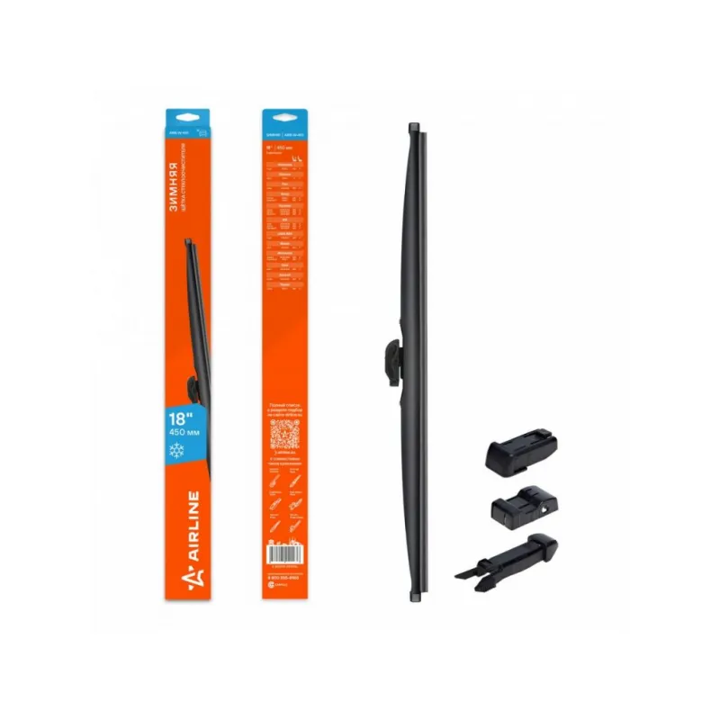 Щетка стеклоочистителя зимняя 450мм (18") 5 адаптеров Описание: Зимняя щетка AIRLINE AWB-W-450 стеклоочистителя хотя и может использоваться круглый год, идеальна для работы зимой, особенно в суровом климате! Это каркасная щетка в резиновом корпусе. Благодаря металлическому каркасному коромыслу щетка имеет максимальный уровень прилегания к лобовому стеклу автомобиля. А благодаря кожуху, не прилипает снег и наледь. После многочисленных проведенных испытаний для ЗИМНИХ щеток была выбрана искусственная резина, произведенная по эксклюзивной anti-age технологии с использованием озона. Как результат - увеличение расчетного ресурса работы до 50%, по сравнению с дешевыми аналогами. Вся используемая резина имеет графитовое покрытие, что обеспечивает низкое трение и бесшумную работу. Зимние дворники (щетки стеклоочистителя) оснащены 4-мя адаптерами. Благодаря адаптерам, данные щетки подходят к 85% всего автопарка мира. Если у вас есть вопросы по применяемости, мы всегда готовы помочь вам с подбором по VIN-НОМЕРУ ВАШЕГО АВТОМОБИЛЯ. Преимущества щетки: Материал щеток - долговечная искусственная резина (произведена по эксклюзивной anti-age технологии с использованием озона); Равномерный прижим каркасной щетки стеклоочистителя, комплект к стеклу; Характеристики: Артикул: AWB-W-450 OEM номера: 61 61 9 069 195, 61 62 7 009 884, 6426.JH, 85212-28070-000, 85212-87201-000, 85212-87203-000, 85212-87209-000, 85212-87701-000, 85212-97203-000, 85291-87704-000, 85291-B2040-000, 85220-87108-000, 85220-87218-000, 85220-87726-000, 85222-28030-000, 85222-87701-000, 85222-97201-000, 85212-97205-000, 85212-97208-000, 85212-97209, 85212-97209-000, 85220-16410-000, 85220-16420-000, 84AU17528B, A780X17528AJA, XM3417528FA, XM3417528HA, 1332348, 76630-S2X-003, 76630-S30-E01, 76630-S30-G01, 76630-S3Y-003, 76630-S3Y-G01, 76630-S70-003, 76630-ST3-E05, 76630-TEA-T02, 76630-TV0-G01, 76730-SEA-003, 76730-ST3-E11, 76630-S84-G01, 76630-SCC-003, 76630-SCC-013, 76630-SDC-T01, 76630-SF4-003, 76630-SH3-G11, 8-94269-070-0, 8-94353-789-0, 8-94353-855-0, 8-94353-856-0, 8450008572, 8FG2-67-330A, B095-67-330, BE5J-67-330, BHS3-67-330, BJ0F-67-330, FE15-67-330A, LC62-67-330, M002-67-330, UJ06-67-330, UJ07-67-330, UJ35-67-330, 8FG7-67-330B-9K, FE16-67-330, G030-67-330A, G22D-67-330, GJ6E-67-330, J002-67-330, K015-67-330, D040-67-330A, DX01-67-330, F156-67-330, FD03-67-330, FD03-67-330A, FE15-67-330, B01K-67-330, B01K-67-330A, B16B-67-330, B302-67-330, B461-67-330, B461-67-330A, 1A63-67-330, 1N08-67-330, 1N10-67-330, A001-67-330, A001-67-330A, A085-67-330, 1A04-67-330, 1A05-67-330, 1A13-67-330, 1A14-67-330, 1A18-67-330, 1A60-67-330, G044-67-330, GB93-67-330, KD53-67-330, NA12-67-330, NA13-67-330, BE8T-67-330, 8250A186, 8250A375, MB382532, MB622213, MB622214, MN181423, MR 574652, MR 915125, MR 300302, MR 416628, MR 416667, MR 416760, MR 416761, MR 416762, MR 441673, MR300210, MR 300213, MR 339832, MR 361508, MR 361512, MR 416365, MR109217, MR 154354, MR 154355, MR 192098, MR 192109, MR 275957, MB 859105, MB885837, MB 929584, MB 929957, MB 952249, MQ 901371, MB 683719, MB 848455, MB 848476, MB 848801, MB848802, MB 848806, MB 571771, MB 623075, MB 683237, MB 683715, MB683717, MB 683718, 8250A597, 8250A778, 8250B037, MB 415741, MB 487894, MB 530299, MR300879, MR416668, MZ690098, 8250A374, 8250A593, 8250A596, 28890-AM615, 28890-AU311, 28890-AX610, 28890-JR81A, AY00J-UAF5R, 28790-56E05, AY00J-UAZ5R, B6365-89938, B8790-15U00, 28890-V6905, 28890-W3460, 28890 W3560, AY001-U450R, AY002-U43AS, AY00A-UJ50R, 28890-J7501, 28890-R8010, 28890-R8011, 28890-R9711, 28890-V5000, 28890-V6901, 28890-AM600, 28890-BU010, 28890-C8300, 28890CC01B, 28890-CF41A, 28890-HA000, 28890-50A05, 28890-50A10, 28890-53A00, 28890-5V015, 28890-6A00A, 28890-70N05, 28890-1E300, 28890-1E301, 28890-40U10, 28890-41A00, 28890-41B10, 28890-4A00C, 28790-65F00, 28790-8H310, 28890-00Q1A, 28890-05B65, 28890-05B71, 28890-13C00, 12 72 038, 12 72 337, 12 72 788, 12 72 033, 1272346, 6426.CE, 6426.SP, 6426.HR, 6426.SS, 77 01 038 296, 77 01 057 367, 28 89 084 11R, 86542-AG160, 86542-SC150, 86542-SC160, 86542 AA040, 86542-AE140, 86542-AE200, 86542-FA170, 86542-GA470, 86542-GA471, 86542-GA472, 86542-GA481, 86542-AE201, 86542-AG050, 86542-AG060, 86542-AG150, 86542-FA030, 86542-FA130, 38340-60B00, 38340-60B00-000, 38340-60B20, 38340-60B20-000, 38340-65B00, 38340-65B00-000, 38340-81A00, 38340-81A50, 38340-83E20, 38340-85E00, 38340M81A20, 38340-70B00, 38340-72J50, 38340-75F20, 38340-76F20, 38340-77R00, 38340-78F10, 38340-60G10, 38340-60G30, 38340-62J10, 38340-63J20, 38340-63J70, 38340-65B10, 38340-70B10, 38340-70B10-000, 38340-50E50, 38340-54G20, 38340-54G30, 38340-54G31, 85212-10130, 85212-10140, 85212-74010, 85222-10230, 85222-10240, 85222-30590, 85291-35010, 85291-60020, 85291-87704, 85222-23040, 85222-33050, 85222-33051, 85291-16010, 85291-22080, 85291-30030, 85291-33050, 88222-33041, 85222-30600, 85220-12620, 85220-16870, 85220-16871, 85242-33031, 85242-60070, 85242-60071, 85242-90