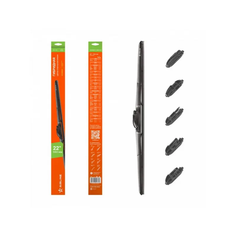 Щетка стеклоочистителя 550 мм (22") гибридная 5 адаптеров Описание: Гибридные щетки - это смесь каркасной щетки, со всеми ее преимуществами надежного прилегания к стеклу автомобиля и наличием пластикового кожуха. Кожух выполняет защитную функцию и не позволяет налипать мокрому снегу и льду. Второе его преимущество - он выполняет функцию спойлера, благодаря аэродинамической конструкции. Щетка гораздо лучше прилегает к стеклу автомобиля, особенно это заметно на больших скоростях. Для щеток были специально разработаны 3 различных мульти-адаптера, которые подходят на 8 типов поводков Hook 9x3, 9x4 mm - Крючок 9x3, 9x4 мм,Push Button 16 mm - Узкая кнопка 16 мм (H6-2), Push Button 19 mm - Кнопка 19 мм (H6-1), и с помощью которых становится возможным использовать щетки в подавляющем большинстве существующих креплений, и соответственно сделать подходящими на 95% автомобилей. Наличие в резине частиц озона, а также нанесение графитового покрытия на верхний эксплуатационный слой резины. Озон создает anti-age технологию, которая значительно увеличивает период использования щетки и обеспечивает сохранение ее рабочих свойств. При работе щетки не создают шумовых помех, а также гладко скользят по стеклу, обеспечивая тщательное и безопасное очищение. Если у вас есть вопросы по применяемости, мы всегда готовы помочь вам с подбором по VIN-НОМЕРУ ВАШЕГО АВТОМОБИЛЯ. Преимущества щетки AIRLINE AWB-H-550 -Материал щетки - долговечная искусственная резина (произведенная по эксклюзивной anti-age технологии с использованием озона); -Бесшумная работа каркасной щетки стеклоочистителя; -Равномерный прижим щетки к поверхности стекла; Характеристики: Артикул: AWB-H-550 OEM номера: 61 61 0 032 743, 61 61 0 443 590, 6161 0 431 438, 6426.TX, 85212-87401-000, 85212-B2130, 6153467, 86VB17528A1B, 1148288, 1202188, 1545441, 1132443, YS7J17528CA, 1712818, 4U2J-17528-KA, 5201086, AS6J-17528-AA, AT1A17528-BA, MEEU2J-17528-FAA, 76620-S1A-G01, 76620-S1F-003, 76620-S84-G01, 76620-SCC-003, 76620-SCC-013, 76620-SD5-003, 76630-TL0-G01, 76620-SZ3-003, 76620-SZ3-901, 76620-SZA-R01, 76620-T6A-J01, 76630-SL0-003, 76630-TL0-E01, 76620-SL0-003, 76620-SL4-003, 76620-SM4-E01, 76620-SP0-003, 76620-SR3-003, 76620-SYP-004, 5-86006-363-0, 8-94480-175-1, 8-97134-567-0, 8-97139-627-0, 8-97254-765-0, 8-97351-484-0, 8-97556-202-0, FB02-67-330, G226-67-330, G226-67-330A, EA05-67-330, EA05-67-330A, 1N22-67-330, L001-67-330C, L001-67-330D, L092-67-330, P100-67-330, DB5J-67-330, G22C-67-330, GJ6A67330, GJ6A67330A, GK1R-67-330, L001-67-330A, 1N33-67-330, 86542-FE090, D461-67-330, D461-67-330A, D463-67-330, D463-67-330A, 000 820 91 45, 000 820 96 45, 001 820 05 45, 001 820 06 45, A 000 820 91 45, A 000 820 96 45, A 001 820 05 45, A 001 820 06 45, A1708200845, A2038202145, 8250A094, 8250A098, 8250A203, MN181335, 8250A002, 8250A116, MR300214, MR 339465, MR 441669, MR 908441, MQ 502571, MQ 700001, MR 155004, MR 191075, MR 275956, MR 300211, MB622942, MB848470, MB848803, MB 848804, MN 182413, MQ 500925, 8250A202, 8250A274, 8250A356, 8250A485, 8250A780, MB 487893, 28890-ED500, KE288-89935-AG, 26360-4A00B, 28890-0P065, 28890-11C00, 28890-14Y00, AY00J-UDZ2R, 28891-1KA0A, AY00D-UF15R, 28890-JF00A, 28890-JX56A, 28891-BA61A, AY001-U550R, AY002-U550R, AY00D-UJ50R, 2889095F0C, 28890-BA62C, 28890-BM400, 28890-BM410, 28890-CG000, 28890-CG00C, 28890-44U00, 28890-4A01E, 28890-4Z800, 28890-5V005, 28890-7S010, 28890-95F0A, 28890-2F000, 28890-35R15, 28890-3W400, 28890-3XA0A, 28890-40U00, 28890-40U01, 12 72 329, 62 72 293, 12 72 326, 62 72 255, 62 72 279, 62 72 280, 62 72 302, 62 72 303, 6426.R8, 6426.GP, 7701 410 008, 7701 423 034, 7701 423 212, 7701 423 214, 7711 170 144, 28 89 076 72R, 86542-AE020, 86542-AE000, 86542-AE210, 86542-AE220, 86542-CA000, 86542-FE020, 86542-FE100, 86542-KG010, 86542-KG110, 86542-PA010, 86542-SA040, 38340-51K00, 38340-51K10, 3834054G00, 38340-54G10, 38340-54G40, 38340-54G50, 38340-54G51, 3834068L01, 38340-69DA0, 3834071L01, 38340-71L10, 85212-0G010, 85212-42110, 85222-48140, 85222-48160, 85222-53070, 85222-53071, 85291-71010, 85291-B2250, 85291-22090, 85291-33040, SU003-02676, SU003-02677, 85291-22100, 85291-26070, 85222-52050, 85222-60200, 85222-60201, 8522260250, 85222-60290, 85222-71010, 85222-33140, 85222-35110, 85222-40080, 85222-42060, 85222-48040, 85222-48070, 85220-32420, 85221-02310, 8522202120, 85222-04030, 85222-06020, 8522226120, 85212-60140, 85212-60170, 8521260171, 85212-60250, 85212-71010, 85212-B1050, 85212-46010, 85212-50020, 85212-50021, 85212-52050, 85212-53010, 85212-53070, 85212-30360, 85212-33130, 85212-33170, 85212-35080, 85212-40080, 85212-40081, 85212-0T020, 85212-12460, 85212-22420, 85212-22430, 85212-26130, 85212-27010, 7835009000, 7835032000, 7835032001, 783