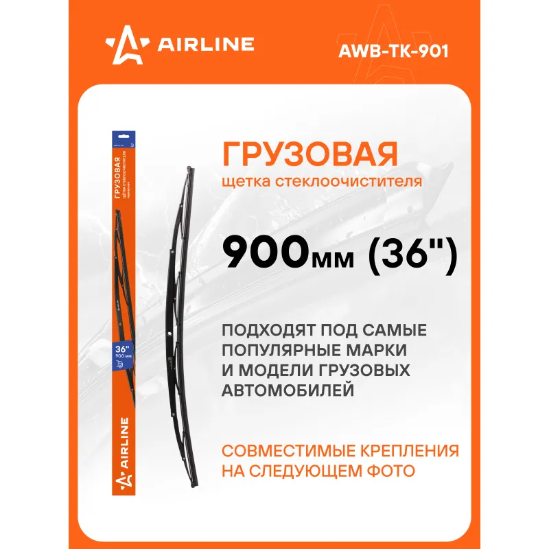 Щетка стеклоочистителя 900 мм (36") каркасная грузовая с адаптером "Крючок 6x16 мм" Описание: Каркасная конструкция щетки стеклоочистителя — это качество, проверенное десятилетиями. Такие щетки являются самыми доступными по цене, обладает высокой прочностью, и лучшими показателями прилегания резинок к стеклу автомобиля. К классической форме щетки производители AIRLINE добавили изменения в составе резины, позволяющие продлить ее срок использования. В комплект добавлены адаптеры Hook 6x16 mm - Крючок 6x16 мм, которые необходимы для установки на автомобили различных марок (подходя для 95% марок и моделей автомобилей).Применяемость: AUDI A6, AUSTIN MONTEGO, CHRYSLER NEWPORT, NEW YORKER, LE BARON, VOYAGER, CITROEN C5, CX, C25, DODGE CARAVAN, HONDA TORNEO, HYUNDAI LANTRA, SANTA FE, JAGUAR XJS, MAZDA B-Series, MERCEDES-BENZ E-Class, M-Class, MITSUBISHI SPACE STAR, MOSKVICH 427, NISSAN PRIMASTAR, OPEL ASTRA, PEUGEOT 406, BOXER, PLYMOUTH VOYAGER, RENAULT 18, 19, SAAB 900, SKODA OCTAVIA, TOYOTA COASTER, VOLVO V40.. Если у вас есть вопросы по применяемости, мы всегда готовы помочь вам с подбором по VIN-НОМЕРУ ВАШЕГО АВТОМОБИЛЯ. Преимущества щетки AIRLINE AWB-TK-901 -Материал щетки - долговечная искусственная резина (произведенная по эксклюзивной anti-age технологии с использованием озона); -Адаптеры произведены из специального технического пластика, от -40 до +60; -Бесшумная работа каркасной щетки стеклоочистителя; -Равномерный прижим щетки к поверхности стекла; -Возможность использовать на автомобилях, как с левым, так и с правым расположением руля, а так же на автомобилях с распашной системой очистки стекла. Мы гарантируем качество и надежность наших товаров. Характеристики: Артикул: AWB-TK-901 OEM номера: 33 26430 0001, 81.26440-0060, 812643000001, A 001 820 07 45, 001 820 07 45, 18200745 Размер, мм: 900 Размер, дюйм: 36 Тип: Грузовая каркасная Кол-во адаптеров, шт: 1 Адаптер крепления 1: Hook 6x16 mm - Крючок 6x16 мм Комплектация: Щетка стеклоочистителя - 1 шт Адаптеры - 1 шт Картонная коробка - 1 шт Гарантия: от 1 года.