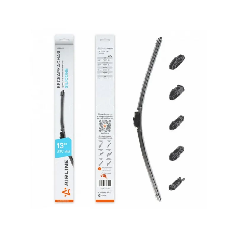 Щетка стеклоочистителя бескаркасная SILICONE 330мм (13") 5 адаптеров Описание: Щетка стеклоочистителя / AIRLINE AWBBS001 с бескаркасной конструкцией, выполненные из силиконовой резинки, представляют собой инновационное решение для обеспечения безупречной чистоты вашего автомобильного стекла. Силиконовая резинка, используемая в этих щетках, превосходит натуральную резинку по ряду параметров: она обеспечивает более долгий срок службы, устойчива к ультрафиолету, экстремальным температурам и озону, что предотвращает растрескивание и быстрое старение. Применяемость: LADA ВАЗ 2101-2107, UAZ 3151, HUNTER.; Силикон отличается улучшенными гидрофобными свойствами, благодаря чему вода легко смывается с лобового стекла, обеспечивая видимость во время дождя и снегопада. В комплект включены адаптеры для быстрой и простой установки на разнообразные модели автомобилей. Преимущества щетки AIRLINE AWBBS001 - Материал щетки - долговечная искусственная резина; - Адаптеры произведены из специального технического пластика, от -40 до +60; - Адаптеры: Hook;Push Button;Push Button;Side pin;Pinch Tab, Top Lock; - Бесшумная работа бескаркасной щетки стеклоочистителя; - Равномерный прижим щетки к поверхности стекла; Если у вас есть вопросы по применяемости, мы всегда готовы помочь вам с подбором по VIN-НОМЕРУ ВАШЕГО АВТОМОБИЛЯ. С модельными щетками стеклоочистителя AIRLINE каждая поездка будет проходить с максимальным комфортом и безопасностью, независимо от погоды за окном. Характеристики: Артикул: AWBBS001 OEM номера: 85220-87612-000, 85222-87205-000, 85222-87401, 85222-97401-000, 85222-B2100, 85291-87703-000, 85291-87203, 85291-B2260, GM5J-A17402-DA, 76620-T6G-003, 76630-S2K-004, 76630-S7A-004, 76630-S7A-014, 76630-S7A-G01, 76630-S7A-G02, 76630-TAA-J02, 76630-TF0-004, 76630-TF0-014, 76630-TF0-G01, 76630-TKR-003, 76730-SJ8-N71, 76630-SLJ-J01, 76630-SMA-004, 76630-SYY-003, 76630-SYY-023, 76630-T5A-J01, 76630-T5A-J02, 76630-SEL-P01, 76630-SEL-T01, 76630-SEM-G11, 76630-SLA-004, 76630-SLA-J01, 76630-SLJ-003, 21050-5205070-01, 21080-6313200-01, 2103-5205070-02, 2105-5205070, 2103-5205070, 21230-6313200-01, 21230-6313200-00, 2103-5205070-01, 2102-6313200-10, 21214-6313200-04, 21213-6313200-00, 21710-6313200-00, 1A02-67-330, 1A23-67-330, 1A62-67-330, 1A62-67-330A, 1N09-67-330, 1N12-67-330, ZZS1-67-330, ZZS4-67-330, ZZS7-67-330, 1A51-67-330, DF7267330, D652-67-330, D652-67-330A, D654-67-330, D654-67-330A, D654-67-330B, DF96-67-330A, 1N31-67-330, 8134-67-330, B25H-67-330, C102-67-330, C275-67-330, D522-67-330, A 000 820 06 45, 000 820 06 45, A1688202045, 8250A210, 8250B123, MB 286249, MB 623076, MB 639955, MB 821144, MR 154352, MR339554, MR339996, MR 416915, MR 472981, MR 971923, 26360-6A00B, 26360-HA00A, 28790-0N000, 28790-0N001, 28790-60R00, 28790-BM410, 28890ES61A, 288909U110, AY00A-UK13R, AY01A-UC26R, AY02A-UB17R, 28890-1KE1A, AY00A-UF15R, AY01M-U34US, 28890-5TA1A, 28890-6A0A3, 28890-BA61A, 28890-BA63C, 28890EM31A, AY001-U350R, 28790-WF010, 28890-1HA3B, 28890-1HA3D, 28890-4A00B, 28890-4A00F, 28890-4A01G, 86542-KE020, 86542-KE090, 86542-KG060, 86542-KG160, 86542-TA020, 38340-50G20, 38340-50G21, 38340-60F00, 38340-65C00, 38340-66K20, 38340-76F00, 38822-61A00, 3834061M30, 3834079J20, 38340-78F20, 38340-80J30, 38340-80J71, 38340-80J80, 38340-81J20, 38340-82C50, 85212-02250, 85212-0D060, 852120D061, 85212-12430, 85212-35090, 85212-35091, 85291-28120, 85291-60030, 85212-12620, 85291-32080, 85291-44040, 85291-47030, 85242-52030, 85242-60010, 85242-60011, 85242-60021, 85242-60040, 85291-13050, 85242-21020, 85242-23010, 85242-30040, 85242-33040, 85242-34010, 85242-34011, 85222-68030, 85222-B2200, 85222-B5010, 8524205020, 85242-05060, 85242-21010, 85222-52220, 85222-52310, 85222-58060, 85222-65040, 85222-68010, 85222-68011, 85222-47060, 85222-47070, 85222-52020, 85222-52140, 85222-52141, 85222-52160, 85222-28200, 85222-28201, 85222-37161, 85222-44030, 85222-44040, 85222-44050, 85220-89112, 85222-12860, 85222-27010, 85222-27011, 85222-28140, 85222-28141, 85220-22430, 85220-22460, 85220-22461, 85220-22500, 85220-22531, 85220-22710, 85212-44031, 8521244032, 85212-52010, 85212-52180, 85212-52220, 85220-22300, 7852005001, 7852008010, 98360-3X000, 98360-3X100, 98820-17000, 98820-1C000, HG830-001A, 98360A5000, 983602W100, 98360 1C000, 0K2C0-67330, 98360-A2000, 98360-G6000, 1J6955427, 1U9955425B, 9193459, 96323563, 96602112, 96688385, СЛ236-5205600, СЛ44-5205751, 3151-40-5205200-01, 31514-5205200, 72-5205900, 3159-6313200, 31601-6313200, 494.5205900, 31519-5205200-02, 3160-6313200, 3153-6313200, 31519-5205200, 31514-5205200-01, 3160-5205200, 3163-00-6313200-01, 3163-00-6313200-71, LR049843, 1017002088, A5205220 Размер, мм: 330 Размер, дюйм: 13 Тип: Бескаркасная Кол-во адаптеров, шт: 5 Материал резинового лезвия: Силикон Адаптер кр