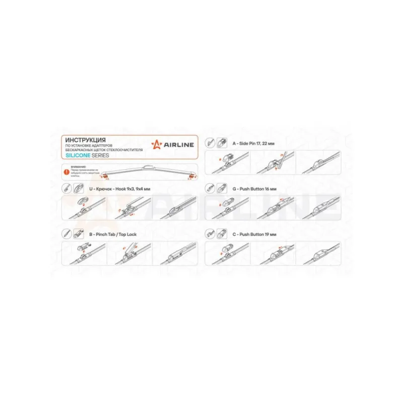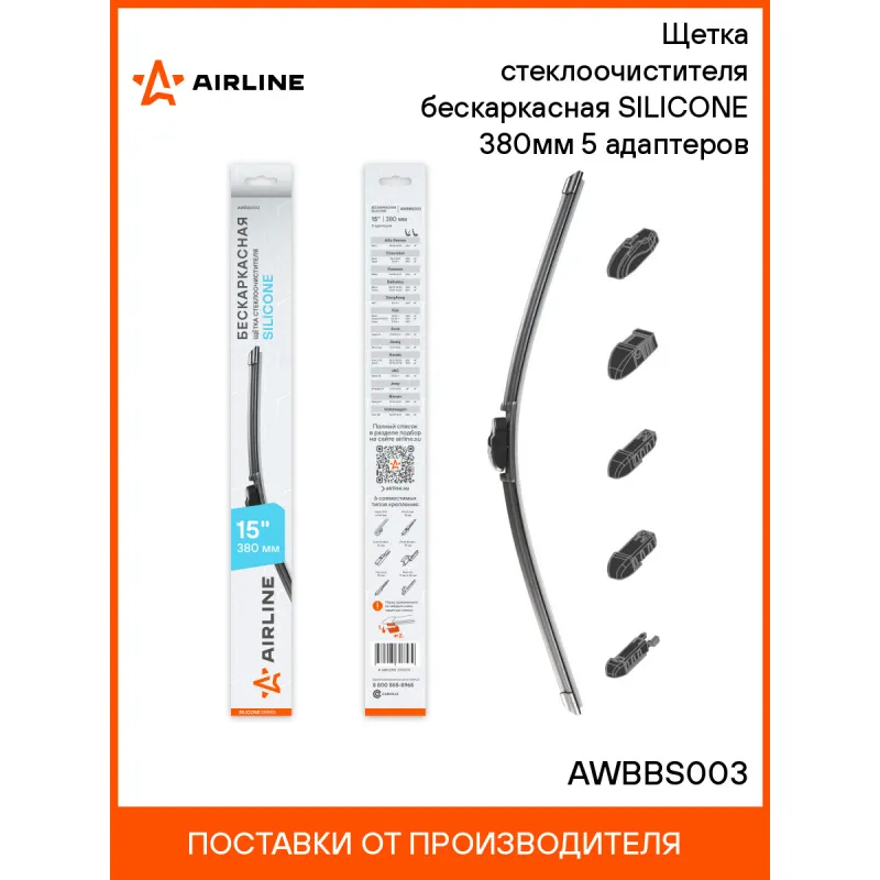 Щетка стеклоочистителя бескаркасная SILICONE 380мм (15") 5 адаптеров Описание: Щетка стеклоочистителя / AIRLINE AWBBS003 с бескаркасной конструкцией, выполненные из силиконовой резинки, представляют собой инновационное решение для обеспечения безупречной чистоты вашего автомобильного стекла. Силиконовая резинка, используемая в этих щетках, превосходит натуральную резинку по ряду параметров: она обеспечивает более долгий срок службы, устойчива к ультрафиолету, экстремальным температурам и озону, что предотвращает растрескивание и быстрое старение. Применяемость: ABARTH GRANDE PUNTO, PUNTO, ALFA ROMEO MITO, CHEVROLET AVEO, SPARK, DAEWOO MATIZ, DAIHATSU GRAN MOVE, MOVE, TERIOS, FIAT 500, PUNTO, IDEA, LINEA, PANDA, FORD FIESTA, RANGER, GEELY MK, HONDA CIVIC, JAZZ, JEEP WRANGLER, LANCIA MUSA, YPSILON, NISSAN JUKE, QASHQAI, RAVON R2, SEAT Mii, TOLEDO, SUBARU LIBERO, TOYOTA YARIS, VW KAEFER, FOX, POLO.; Силикон отличается улучшенными гидрофобными свойствами, благодаря чему вода легко смывается с лобового стекла, обеспечивая видимость во время дождя и снегопада. В комплект включены адаптеры для быстрой и простой установки на разнообразные модели автомобилей. Преимущества щетки AIRLINE AWBBS003 - Материал щетки - долговечная искусственная резина; - Адаптеры произведены из специального технического пластика, от -40 до +60; - Адаптеры: Hook;Push Button;Push Button;Side pin;Pinch Tab, Top Lock; - Бесшумная работа бескаркасной щетки стеклоочистителя; - Равномерный прижим щетки к поверхности стекла; Если у вас есть вопросы по применяемости, мы всегда готовы помочь вам с подбором по VIN-НОМЕРУ ВАШЕГО АВТОМОБИЛЯ. С модельными щетками стеклоочистителя AIRLINE каждая поездка будет проходить с максимальным комфортом и безопасностью, независимо от погоды за окном. Характеристики: Артикул: AWBBS003 OEM номера: 85222-97203-000, 85222-97206-000, 85222-97209-000, 85290-87201-000, 85290-87202-000, 85290-87501-000, 85291-87207-000, 85290-87502-000, 85220-22490-000, 85242-28020-000, 85242-87701-000, 85242-97501-000, 85291-87202-000, 1556082, AS7J-17402-AA, GM5J-A17402-CA, 2120566, 76630-S3A-003, 76630-S5S-E01, 76630-S5S-G01, 76630-S6A-003, 76630-SAA-004, 76630-SAA-G01, 76730-SV5-A01, 76730-S0A-921, 76730-S30-901, 76730-TAA-003, 76730-TAA-N01, 76630-SZW-J01, 76630-T4G-003, 76630-T6A-J02, 76630-TDK-J03, 76630-TM0-G01, 76630-TZA-J01, 76630-SEA-003, 76630-SEA-G01, 76630-SEA-G11, 76630-SEA-J11, 76630-SJ6-003, 76630-SYA-003, 5-86011-160-0, 8-94423-654-0, 8-94358-867-0, 8-97252-182-0, 8-97252-182-2, 1A03-67-330, 1A53-67-330, 8421-67-330, A084-67-330, D462-67-330, D462-67-330A, G14S-67-330, G14T-67-330, D464-67-330, D464-67-330A, ZZS0-67-330, ZZS3-67-330, ZZS6-67-330, 8418-67-330, A4638200345, 8250A769, MB 141142, MB 623074, MB 639953, MB 859530, MB 859545, MB623364, MR416323, MR 164792, MR 339500, MR 361511, MR 441471, MB542553, MB542554, 28890-JD910, 28890-JD910C, 28790-70N00, 28790-70N05, 28890-6A00F, 28890-6A0A0, 28890-ES51A, 28890-JD010, AY001-U380R, 28790-HC000, 78654-2210, 78654-2211, 78654-2390, 78654-2400, 86542-AA010, 86542-AE070, 86542-SA100, 86542-AA050, 86542-AC150, 86542GA130, 86542GA710, 86542-FC060, 86542-FC100, 86542-FC110, 86542-FE050, 86542-KA121, 86542-KC010, 38340-76F10, 38340-77510, 85290-87202, 85220-22371, 85220-22510, 85220-22600, 85222-B1100, 85242-10020, 85242-28020, 85242-44010, 85242-60030, 85242-97501, 85242-12080, 85242-13010, 85242-13030, 85242-20010, 85242-20060, 85242-20070, 98360-G6000, 3B9 955 427, 8D9 955 425, 8D9955427, 95228810, ROVER, A00063170, MOTORS Размер, мм: 380 Размер, дюйм: 15 Тип: Бескаркасная Кол-во адаптеров, шт: 5 Материал резинового лезвия: Силикон Адаптер крепления 1: Hook 9x3, 9x4 mm - Крючок 9x3, 9x4 мм (A) Адаптер крепления 2: Push Button 16 mm - Узкая кнопка 16 мм (B) Адаптер крепления 3: Push Button 19 mm - Кнопка 19 мм (B+C) Адаптер крепления 4: Side pin 17 mm, 22 mm - Боковой штырь 17 мм, 22 мм (D) Адаптер крепления 5: Pinch Tab - Боковой зажим, Top Lock - Верхник замок (E) Комплектация: Инструкция - 1 шт Щетка стеклоочистителя - 1 шт Картонная коробка - 1 шт Адаптеры - 5 шт Гарантия: от 1 года.