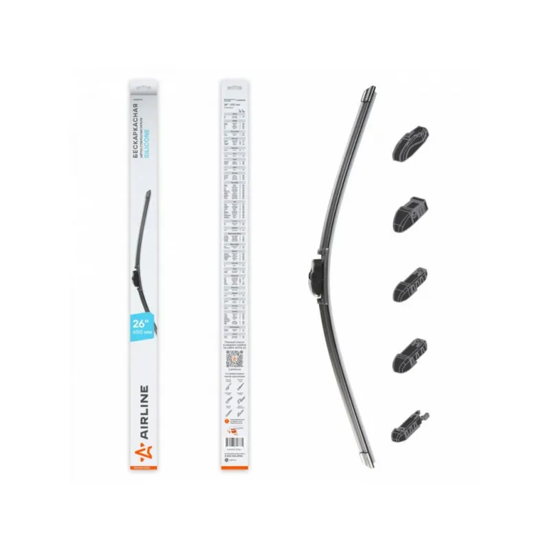Щетка стеклоочистителя бескаркасная SILICONE 650мм (26") 5 адаптеров Описание: Щетка стеклоочистителя / AIRLINE AWBBS012 с бескаркасной конструкцией, выполненные из силиконовой резинки, представляют собой инновационное решение для обеспечения безупречной чистоты вашего автомобильного стекла. Силиконовая резинка, используемая в этих щетках, превосходит натуральную резинку по ряду параметров: она обеспечивает более долгий срок службы, устойчива к ультрафиолету, экстремальным температурам и озону, что предотвращает растрескивание и быстрое старение. Применяемость: ; Силикон отличается улучшенными гидрофобными свойствами, благодаря чему вода легко смывается с лобового стекла, обеспечивая видимость во время дождя и снегопада. В комплект включены адаптеры для быстрой и простой установки на разнообразные модели автомобилей. Преимущества щетки AIRLINE AWBBS012 - Материал щетки - долговечная искусственная резина; - Адаптеры произведены из специального технического пластика, от -40 до +60; - Адаптеры: Hook;Push Button;Push Button;Side pin;Pinch Tab, Top Lock; - Бесшумная работа бескаркасной щетки стеклоочистителя; - Равномерный прижим щетки к поверхности стекла; Если у вас есть вопросы по применяемости, мы всегда готовы помочь вам с подбором по VIN-НОМЕРУ ВАШЕГО АВТОМОБИЛЯ. С модельными щетками стеклоочистителя AIRLINE каждая поездка будет проходить с максимальным комфортом и безопасностью, независимо от погоды за окном. Характеристики: Артикул: AWBBS012 OEM номера: 61 61 2 183 576, 61612407288, 61612408631, 61 61 2 447 932, 61 61 2 458 006, 61 61 2 458 015, 61 61 2 458 017, 61 61 9 466 377, 6324.J6, 6423.H6, 6426.JG, 6426.YP, 1680486, 1680506, 1694741, 1465888, 1473406, 1473407, 7S7J-17B437-AA, BB5Z-17528-E, LB5Z-17528-A, 1899706, 2206402, 5318073, 5318074, 4M5J-17B437-AA, 7S711-7B437-AA, 6M2JS17528AA, 1462906, 1680508, 1680511, 1726283, 1850109, 1537074, 1537075, 1537077, 1537084, 1556082, 3M51S17528AA, 76620-SEA-G01, 76620-SEA-G11, 76620-SWA-G11, 76620-SZTA-G01-0M1, 76620-TE0-A01, 76620-TF0-0041, 76620-TVA-A01, 76620-TY3-J02, 76620-TZA-J01, 76620SWAA01, 76620-TME-T02, 76620-TP6-A01, 76620-TP6-A02, 76620-TR0-A01, 76620-TR0-A02, 76620-TV0-G01, 76620-T5A-J02, 76620-T7A-003, 76620-TA0-J01, 76620-TDK-J03, 76620-TEA-T02, 76620-TF0-004, 76620-SYY-013, 76620-SZT-E01, 76620-SZT-G01, 76620-T0A-J01, 76620-T2A-J01, 76620-T5A-J01, 76620-SMG-G11, 76620-SNA-A11, 76620-SNA-U02, 76620-SNB-G01, 76620-SWA-J01, 76620-SYY-003, 76620-SJD-G01, 76620-SJK-003, 76620-SLE-J01, 76620-SLJ-003, 76620-SLJ-J01, 76620-SMA-004, 76620-TF0-G01, 76620-TF0-G01-1M1, 76620-SDC-T01, 76620-SEA-003, 76620-SEA-J11, 76620-SJD-003, 28 89 030 13R, CC29-67-330, TD11-67-330, C235-67-330, C243-67-330, C273-67-330, E221-67-330, EG21-67-330, TK93-67-330, 211 820 14 45, A 211 820 14 45, 166 820 10 45, 166 820 78 00, A 166 820 10 45, A 166 820 78 00, A1688201645, 8250A104, 8250A184, 8250A255, 8250A035, 8250A037, 8250A207, MR 472595, MR 472606, 8250B220, MN 127797, MN154885, MR 155991, MR 192015, MR 416320, 8250A594, 8250A595, 8250A752, 8250A753, 8250B026, 8250B125, 28890-4EH0A, 28890-AU310, 28890-EM30B, 28891-3Y61B, 28890-00Q1B, 28890-0C000, AY02D-UL33R, AY02D-UT32R, AY02D-UY51R, AY00J-UDU3R, AY00J-UDZ5R, AY01D-UC26R, AY01D-UT32R, AY02D-UB17R, AY02D-UE12R, AY00D-UE52R, AY00D-UJ32R, AY00D-UT32R, AY00D-UY51R, AY00J-UDC2R, AY00J-UDE5R, 28891-3Y606, AY001-U700R, AY002-U650R, AY00D-UC25R, AY00D-UC26R, AY00D-UE12R, 28890-BU005, 28890CC00B, 28890-HA00A, 28890-JN00B, 28891-2Y907, 28891-3Y605, 28890-3C910, 28890-3C911, 28890-3JY0B, 28890-4MA0A, 28890-5WJ0A, 28890-BU000, 28890-0C005, 28890-0C010, 28890-0C011, 28890-0C015, 28890-3C900, 28890-3C901, 62 72 310, 6423.22, 6424.CK, 6426.ZE, 6426.ZF, E429015, 6423.A6, 6426.JP, 6426.V5, 6426.VJ, 6426.YG, 6426.YV, 28 89 004 32R, 28 89 014 21R, 28 89 033 84R, 28 89 067 96R, 28 89 536 63R, 28 89 550 07R, 77 01 056 011, 86542-AJ010, 86542-AJ000, 86542-AL000, 86542AL020, 86542-AN000, 86542-AN010, 86542-SG020, 86542-SG100, 86542-SG110, 86542-SJ000, 86542-SJ010, 86542-XA04A, 86542-FJ000, 86542-FJ020, 86542-FJ030, 86542-FL000, 86542-FL020, 86542-FL021, 38340-61M00, 38340-79J00, 38340-80J50, 38340-80J51, 38340-50Z20, 38340-51Z01, 38340-61M10, 38340-80J10, 38340-80J60, 85212-12450, 85212-48140, 85212-68050, 85212-76010, 85222-12840, 85222-12890, 85291-48020, 85222AA070, 85291-26080, 85291-44050, 85291-44060, 85291-44070, 85291-47010, 85291-47020, 85291-48010, 85212-62060, 85222-06170, 85222-06210, 85222-06250, 85222-33340, 85222-78012, 85222-AA040, 85222-AA050, 85222-AE010, 85222-F4010, 85222-F4011, 85222-44070, 8522247020, 85222-47100, 85222-47101, 85222-48130, 85222-60260, 85222-12830, 85222-20450, 85222-20460, 85222-33270, 85222-42120, 85222-42180, 85222-0E040, 85222-0E050, 85222-0F010, 85222-0F030, 85222-0H010, 85222-12480, 85222-05070, 85222-06130, 85222-06131, 85222-0C020, 85222-0C021, 85222-0C030, 85212-680