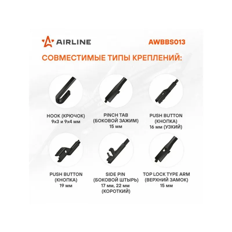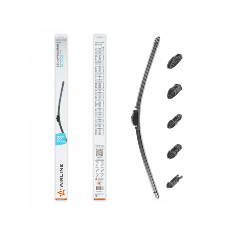 Щетка стеклоочистителя бескаркасная SILICONE 700мм (28") 5 адаптеров Описание: Щетка стеклоочистителя / AIRLINE AWBBS013 с бескаркасной конструкцией, выполненные из силиконовой резинки, представляют собой инновационное решение для обеспечения безупречной чистоты вашего автомобильного стекла. Силиконовая резинка, используемая в этих щетках, превосходит натуральную резинку по ряду параметров: она обеспечивает более долгий срок службы, устойчива к ультрафиолету, экстремальным температурам и озону, что предотвращает растрескивание и быстрое старение. Применяемость: CHRYSLER VOYAGER, CITROEN C4, C5 AIRCROSS, C6, DODGE CARAVAN, FERRARI 458, CALIFORNIA, F12 Berlinetta, FF, FIAT SCUDO, FORD EDGE, FIESTA, GALAXY, KUGA, S-MAX, TRANSIT CUSTOM, HONDA CIVIC, JAGUAR XE, XF, KIA CARENS, MAN TGE, MERCEDES-BENZ GL-Class, M-Class, R-Class, S-Class, VIANO, VITO, MITSUBISHI GRANDIS, i, NISSAN TEANA, OPEL AMPERA, ASTRA, CASCADA, GRANDLAND, MERIVA, ZAFIRA, PEUGEOT 307, 407, EXPERT, ION, 3008, 5008, RENAULT CAPTUR, MODUS, ESPACE, SEAT ALHAMBRA, SUBARU TREZIA, TESLA MODEL S, TOYOTA COROLLA, PREVIA, PRIUS, SIENNA, VERSO, YARIS, VW CADDY, CRAFTER, GOLF PLUS, ID. 4, SHARAN, TOURAN.; Силикон отличается улучшенными гидрофобными свойствами, благодаря чему вода легко смывается с лобового стекла, обеспечивая видимость во время дождя и снегопада. В комплект включены адаптеры для быстрой и простой установки на разнообразные модели автомобилей. Преимущества щетки AIRLINE AWBBS013 - Материал щетки - долговечная искусственная резина; - Адаптеры произведены из специального технического пластика, от -40 до +60; - Адаптеры: Hook;Push Button;Push Button;Side pin;Pinch Tab, Top Lock; - Бесшумная работа бескаркасной щетки стеклоочистителя; - Равномерный прижим щетки к поверхности стекла; Если у вас есть вопросы по применяемости, мы всегда готовы помочь вам с подбором по VIN-НОМЕРУ ВАШЕГО АВТОМОБИЛЯ. С модельными щетками стеклоочистителя AIRLINE каждая поездка будет проходить с максимальным комфортом и безопасностью, независимо от погоды за окном. Характеристики: Артикул: AWBBS013 OEM номера: 6423.36, 6423.99, 6426.XF, 6426.YA, 6426.YC, 1731693, 1731696, 1730302, 1124510, 1373656, 1373657, AM5J S17528-AA, BM51-17528-DC, BM5J-17528-AA, BM5J-17528-BA, CJ54-17528-AC, CJ54-17528-BD, 99VW17K442AB, 1899671, 2008353, 2008355, 5176786, 5310654, BM51-17528-CC, 76620-SVA-A02, 76620-SZW-J01, 76620-T4R-J03, 76620-T6A-J02, 76620-TAA-J02, 76620-TR0-G11, 76620-TR0-G12, 8250A162, 8250A273, 8250A355, 8250A418, 8250A526, MN 182386, MN 182387, 28890-35R05, AY02D-UL33R, 6423.86, 6426.JN, 6426SY, 6426SZ, 6426.VH, 6424CH, 85222-52190, 85222-52270, 85212-28130, 85212-28150, 85212-28200, 85212-28201, 8521252190, 8521228160, 85222-52210, 85222-52211, 85222-52212, 85222-52280, 85222-52281, 8522228170, 85222-0D180, 85222-12B00, 85222-28070, 85222-28071, 85222-28120, 85222-47120, 85220-95D02, 85220-95D03, 85220-95D07, 8522208020, 85222-0D120, 85222-0D122, 85212-47080, 85212-47090, 85212-47122, 85212-52240, 85212-52271, 85212-58040, 98350-A4010, 98350-CG010, 4M1 955 425, 7M3955425C, 7M3955426B, 7M3 998 002 A, 5M0955426C, 5M0955425C, 95508195, 13289893, 13348837, 20812582, 93183142, 93183145, 93194634, 95508199, 95516017 Размер, мм: 700 Размер, дюйм: 28 Тип: Бескаркасная Кол-во адаптеров, шт: 5 Материал резинового лезвия: Силикон Адаптер крепления 1: Hook 9x3, 9x4 mm - Крючок 9x3, 9x4 мм (A) Адаптер крепления 2: Push Button 16 mm - Узкая кнопка 16 мм (B) Адаптер крепления 3: Push Button 19 mm - Кнопка 19 мм (B+C) Адаптер крепления 4: Side pin 17 mm, 22 mm - Боковой штырь 17 мм, 22 мм (D) Адаптер крепления 5: Pinch Tab - Боковой зажим, Top Lock - Верхник замок (E) Комплектация: Инструкция - 1 шт Щетка стеклоочистителя - 1 шт Картонная коробка - 1 шт Адаптеры - 5 шт Гарантия: от 1 года.