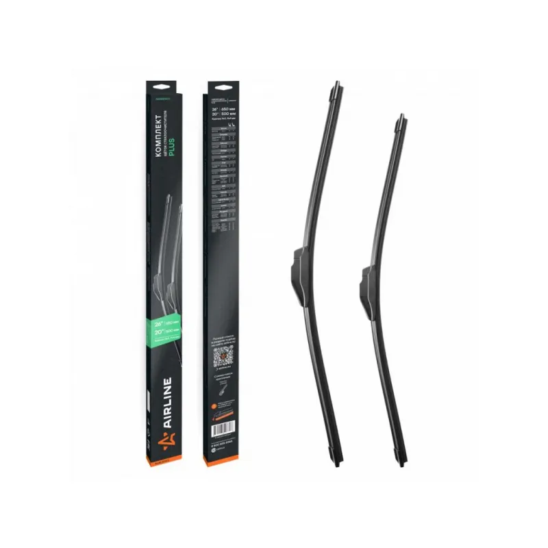 Щетки стеклоочистителя комплект (2 шт) 650/500мм (26"/20") бескаркасные PLUS с креплением "Крючок 9x3, 9x4 мм" Описание: Модельные бескаркасные щётки стеклоочистителя AIRLINE серии PLUS с креплением крючок 9х3, 9х4 мм — это результат современных инженерных решений, направленных на обеспечение высокой эффективности очистки лобового стекла в любых погодных условиях. Они оснащены универсальным креплением Hook 9x3, 9x4 мм, что делает их совместимыми с широким спектром автомобилей без необходимости использования дополнительных адаптеров. Конструкция бескаркасных щёток обеспечивает равномерное распределение давления по всей длине резинового элемента, что позволяет добиться идеального прилегания к стеклу и качественной очистки без разводов. Используемые материалы обладают высокой устойчивостью к износу, ультрафиолету и перепадам температур, что гарантирует длительный срок службы щёток. Улучшенная аэродинамическая форма щёток снижает шум и вибрации во время работы, обеспечивая тихую и плавную очистку даже на высоких скоростях. Надёжная фиксация и простота установки делают эти щётки удобным выбором для водителей, ценящих комфорт и функциональность. С модельными бескаркасными щётками стеклоочистителя AIRLINE серии PLUS каждая поездка будет проходить с максимальным комфортом и безопасностью, независимо от погодных условий. Характеристики: Артикул: AWBBN011 OEM номера: 6426.JG, 6426.JH, 6426.FQ, K9790376580, K9790376780, 5895027, 9790376580, 9790376780, 6426 E5, 6426 E8, 6426 E9, 6426.CJ, 6426.HT, 6426.V5, 85212-06210, 85212-33340, 85212-53081, 85212-60210, 85222-06210, 85222-33340, 85222-48130, 85222-60260, 98360-3K000, 983502B010, LR064428, LR082689 Размер водительской щетки, мм: 650 Размер пассажирской щетки, мм: 500 Адаптер крепления: Hook 9x3, 9x4 mm - Крючок 9x3, 9x4 мм Размер водительской щетки, дюйм: 26 Размер пассажирской щетки, дюйм: 20 Тип: Бескаркасная Комплектация: Щетка стеклоочистителя - 2 шт Картонная коробка - 1 шт Пластиковая подложка - 1 шт Гарантия: от 1 года.