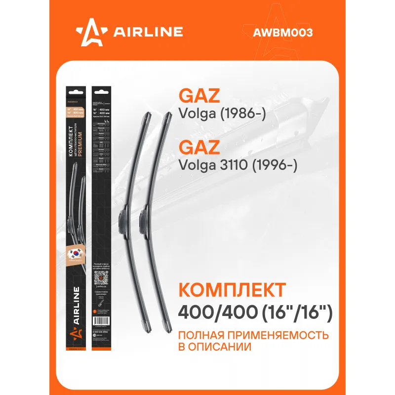 Щетки стеклоочистителя комплект 400/400мм (16"/16") бескаркасные PREMIUM с креплением "Крючок 9x3, 9x4 мм", 2 штуки Описание: Комплект модельных щеток стеклоочистителя PREMIUM с бескаркасной конструкцией AIRLINE AWBM003 400/400 мм - это результат инновационных разработок, направленных на обеспечение безупречного видения дороги в любых погодных условиях. Они специально разработаны для конкретных моделей авто, что позволяет достичь безупречного прилегания к лобовому стеклу и обеспечить высочайшую эффективность очистки. Использование премиальных материалов гарантирует долгий срок службы щеток, а также их стойкость к различным погодным условиям. Уникальная конструкция щеток AIRLINE обеспечивает тихую и плавную работу, минимизируя шум и неприятные звуки даже при высоких скоростях. Простота установки этих щеток стеклоочистителя делает их идеальным выбором для водителей, которые ценят свое время и удобство. Применяемость: ALFA ROMEO SPIDER, CHEVROLET BLAZER, S10, DAEWOO TICO, DAIMLER SOVEREING, FIAT PANDA, GAZ VOLGA, VOLGA SIBER, HUMMER H3, JEEP WRANGLER, MAZDA E-SERIES, MERCEDES-BENZ G-Class, SUZUKI CARRY, JIMNY.. Преимущества щетки AIRLINE AWBM003 - Материал щетки - долговечная натуральная резина; - Адаптеры произведены из специального технического пластика, от -40 до +60; - Адаптер - Hook 9x3, 9x4 mm - Крючок 9x3, 9x4 мм; - Бесшумная работа бескаркасной щетки стеклоочистителя; - Равномерный прижим щетки к поверхности стекла; Если у вас есть вопросы по применяемости, мы всегда готовы помочь вам с подбором по VIN-НОМЕРУ ВАШЕГО АВТОМОБИЛЯ. С модельными щетками стеклоочистителя AIRLINE каждая поездка будет проходить с максимальным комфортом и безопасностью, независимо от погоды за окном. Характеристики: Артикул: AWBM003 OEM номера: 61 61 1 357 272, 85220 22400 000, 4473239, 5881206, 5899108, 71804097, 3875520, A740X 17528 KA, 6132892, 84FG 17528 AA, 84FG 17528 A2A, B467-67-330, G307-67-330, A 000 820 54 45, 000 820 54 45, MB542222, MBZ0427009, 28790-05R00, 28890 02160, 28890-C7160, 1272763, 1272766, 1272783, 12 72 789, 5 445 038, 5 484 616, 6430 26, 6430 42, 6430 43, 6430 96, 75 528 558, 9 865 024 U, 9 865 228 U, 7701 017 267, 77 01 018 422, 77 01 022 428, 7701 401 978, 94 064 261 48, 1304644, 1312255, 1504792, 161 955 425, 161 998 001, 161998003, 211 955 425 C, 211 955 425 E, 211 998 001 A, 321 955 425, 803 955 425 A, KS9 554 005 3, A780X17528AHA, 5C 7321 Размер водительской щетки, мм: 400 Размер пассажирской щетки, мм: 400 Адаптер крепления: Hook 9x3, 9x4 mm - Крючок 9x3, 9x4 мм Размер водительской щетки, дюйм: 16 Размер пассажирской щетки, дюйм: 16 Тип: Бескаркасная Комплектация: Щетка стеклоочистителя - 2 шт Адаптеры - 2 шт Картонная коробка - 1 шт Пластиковая подложка - 1 шт Гарантия: от 1 года.