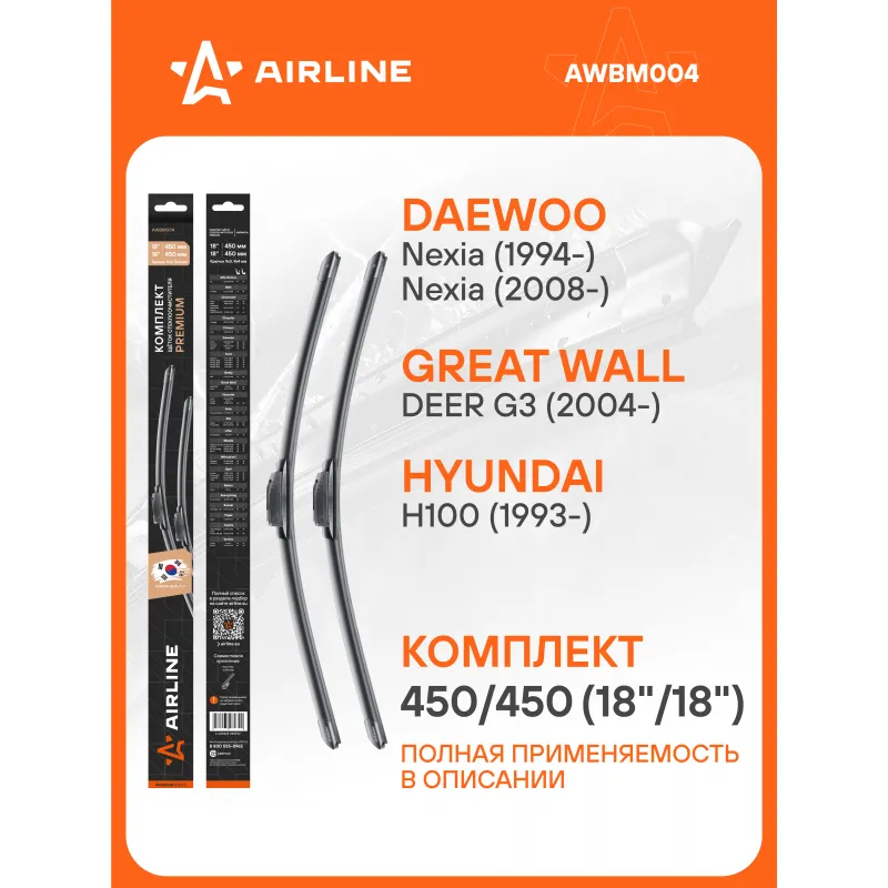 Щетки стеклоочистителя комплект 450/450мм (18"/18") бескаркасные PREMIUM с креплением "Крючок 9x3, 9x4 мм", 2 штуки Описание: Комплект модельных щеток стеклоочистителя PREMIUM с бескаркасной конструкцией AIRLINE AWBM004 450/450 мм - это результат инновационных разработок, направленных на обеспечение безупречного видения дороги в любых погодных условиях. Они специально разработаны для конкретных моделей авто, что позволяет достичь безупречного прилегания к лобовому стеклу и обеспечить высочайшую эффективность очистки. Использование премиальных материалов гарантирует долгий срок службы щеток, а также их стойкость к различным погодным условиям. Уникальная конструкция щеток AIRLINE обеспечивает тихую и плавную работу, минимизируя шум и неприятные звуки даже при высоких скоростях. Простота установки этих щеток стеклоочистителя делает их идеальным выбором для водителей, которые ценят свое время и удобство. Применяемость: ALFA ROMEO 33, CHEVROLET ASTRO, HHR, SUBURBAN, TAHOE, CHRYSLER VOYAGER, CITROEN VISA, DAEWOO NEXIA, KORANDO, LE MANS, FORD EXPLORER, RANGER, GEELY MR, HYUNDAI H100, PORTER, JEEP COMMANDER, KIA BESTA, PRIDE, LIFAN SMILY (320), MAZDA B-Series, BT-50, MX-5, MITSUBISHI L 300, NISSAN CABSTAR, OPEL CAMPO, COMBO, CORSA, TIGRA, RAVON NEXIA, ROVER 25, 200, STREETWISE, SSANGYONG KORANDO, SUZUKI VITARA, X-90, TAGAZ TAGER, TOYOTA HILUX, LAND CRUISER, VORTEX ESTINA / E5.. Преимущества щетки AIRLINE AWBM004 - Материал щетки - долговечная натуральная резина; - Адаптеры произведены из специального технического пластика, от -40 до +60; - Адаптер - Hook 9x3, 9x4 mm - Крючок 9x3, 9x4 мм; - Бесшумная работа бескаркасной щетки стеклоочистителя; - Равномерный прижим щетки к поверхности стекла; Если у вас есть вопросы по применяемости, мы всегда готовы помочь вам с подбором по VIN-НОМЕРУ ВАШЕГО АВТОМОБИЛЯ. С модельными щетками стеклоочистителя AIRLINE каждая поездка будет проходить с максимальным комфортом и безопасностью, независимо от погоды за окном. Характеристики: Артикул: AWBM004 OEM номера: 119 13 65 503 04, 61 61 9 069 195, 61 61 1 362 189, 61 61 1 365 991, 61 61 1 367 130, 60503452, 60523502, A750X 17528 AAA, 74EG 17528 BA, 80BG 17528 AA, 80BG 17528 BA, 3942607, 4035300, 04334805, 04719119, 433 4805, 471 9119, 190 7652, BM95-67-330B, NA12-67-330, NA13-67-330, B095-67-330, GB93-67-330, G044-67-330, MB683716, MB683717, MB885837, MB382532, 28890 W3560, 1272209, 1272210, 3012089, 1272207, 1272785, 12 72 788, 5 483 752, 6426 18, 6426 32, ZC 9 865 230, 38340 50F00 000, 38340-50F00, 00 174 905 XX, 90 511 639, 3201897, 3297732, 3343022, 431 955 425 C, 431 955 425 A, 431 998 001, 481 998 001, 531 955 425, 857 955 425, 98350 22000, 96123311, KS9 554 505 3, 640260, 84AU17528B, A780X17528AJA, XM3417528FA, XM3417528HA, 56001 133, 5E 5840, 1347 740 02 Размер водительской щетки, мм: 450 Размер пассажирской щетки, мм: 450 Адаптер крепления: Hook 9x3, 9x4 mm - Крючок 9x3, 9x4 мм Размер водительской щетки, дюйм: 18 Размер пассажирской щетки, дюйм: 18 Тип: Бескаркасная Комплектация: Щетка стеклоочистителя - 2 шт Адаптеры - 2 шт Картонная коробка - 1 шт Пластиковая подложка - 1 шт Гарантия: от 1 года.