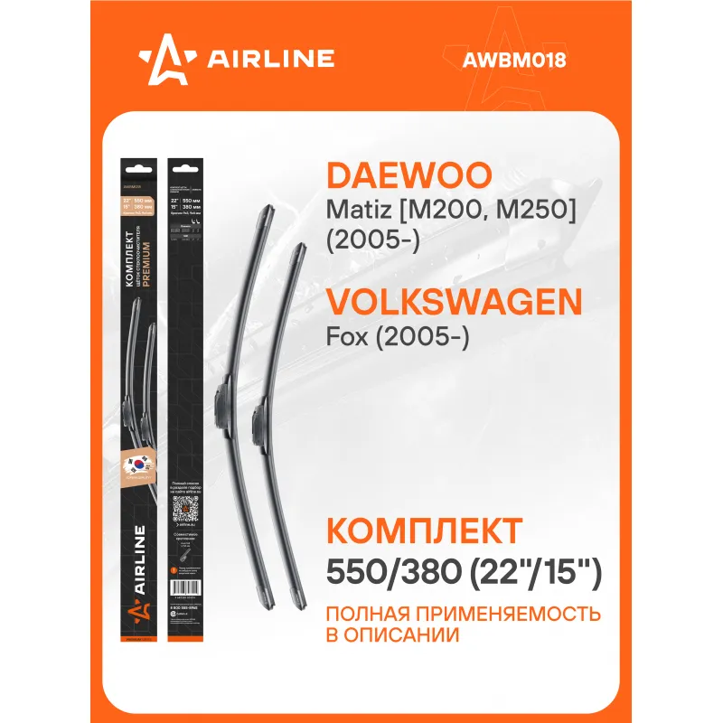Щетки стеклоочистителя комплект 550/380мм (22"/15") бескаркасные PREMIUM с креплением "Крючок 9x3, 9x4 мм", 2 штуки Описание: Комплект модельных щеток стеклоочистителя PREMIUM с бескаркасной конструкцией AIRLINE AWBM018 550/380 мм - это результат инновационных разработок, направленных на обеспечение безупречного видения дороги в любых погодных условиях. Они специально разработаны для конкретных моделей авто, что позволяет достичь безупречного прилегания к лобовому стеклу и обеспечить высочайшую эффективность очистки. Использование премиальных материалов гарантирует долгий срок службы щеток, а также их стойкость к различным погодным условиям. Уникальная конструкция щеток AIRLINE обеспечивает тихую и плавную работу, минимизируя шум и неприятные звуки даже при высоких скоростях. Простота установки этих щеток стеклоочистителя делает их идеальным выбором для водителей, которые ценят свое время и удобство. Применяемость: DAEWOO MATIZ, VW FOX.. Преимущества щетки AIRLINE AWBM018 - Материал щетки - долговечная натуральная резина; - Адаптеры произведены из специального технического пластика, от -40 до +60; - Адаптер - Hook 9x3, 9x4 mm - Крючок 9x3, 9x4 мм; - Бесшумная работа бескаркасной щетки стеклоочистителя; - Равномерный прижим щетки к поверхности стекла; Если у вас есть вопросы по применяемости, мы всегда готовы помочь вам с подбором по VIN-НОМЕРУ ВАШЕГО АВТОМОБИЛЯ. С модельными щетками стеклоочистителя AIRLINE каждая поездка будет проходить с максимальным комфортом и безопасностью, независимо от погоды за окном. Мы гарантируем качество и надежность наших товаров. Характеристики: Артикул: AWBM018 OEM номера: 5Z0955425C, 5Z0955425D, 5Z0998002C Размер водительской щетки, мм: 550 Размер пассажирской щетки, мм: 380 Адаптер крепления: Hook 9x3, 9x4 mm - Крючок 9x3, 9x4 мм Размер водительской щетки, дюйм: 22 Размер пассажирской щетки, дюйм: 15 Тип: Бескаркасная Комплектация: Щетка стеклоочистителя - 2 шт Адаптеры - 2 шт Картонная коробка - 1 шт Пластиковая подложка - 1 шт Гарантия: от 1 года.