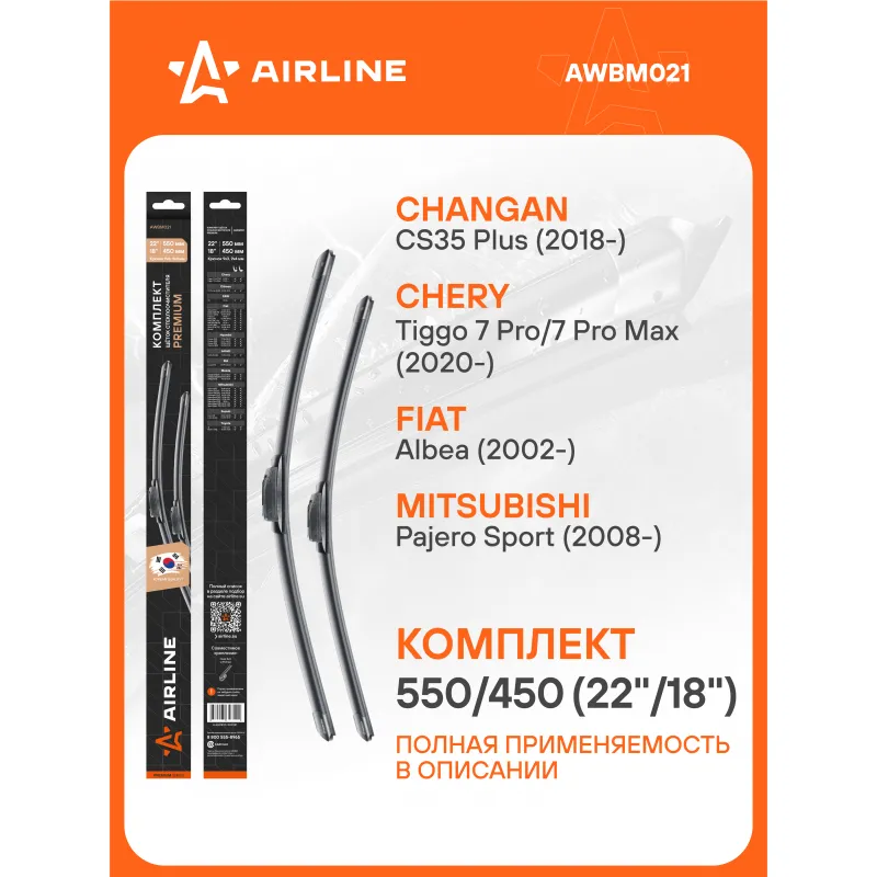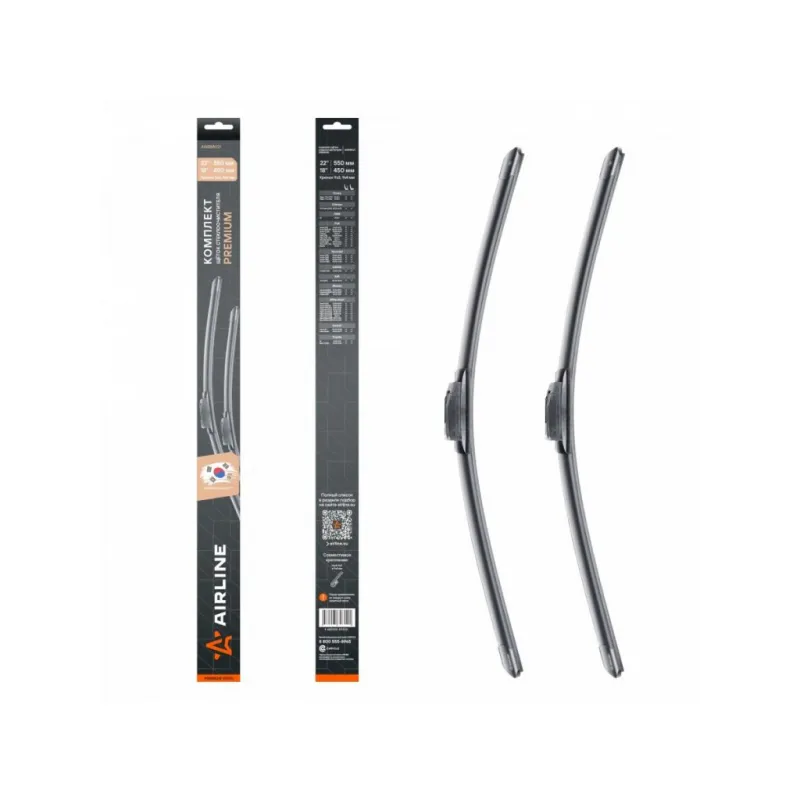 Щетки стеклоочистителя комплект 550/450мм (22"/18") бескаркасные PREMIUM с креплением "Крючок 9x3, 9x4 мм", 2 штуки Описание: Комплект модельных щеток стеклоочистителя PREMIUM с бескаркасной конструкцией AIRLINE AWBM021 550/450 мм - это результат инновационных разработок, направленных на обеспечение безупречного видения дороги в любых погодных условиях. Они специально разработаны для конкретных моделей авто, что позволяет достичь безупречного прилегания к лобовому стеклу и обеспечить высочайшую эффективность очистки. Использование премиальных материалов гарантирует долгий срок службы щеток, а также их стойкость к различным погодным условиям. Уникальная конструкция щеток AIRLINE обеспечивает тихую и плавную работу, минимизируя шум и неприятные звуки даже при высоких скоростях. Простота установки этих щеток стеклоочистителя делает их идеальным выбором для водителей, которые ценят свое время и удобство. Применяемость: CITROEN C3, FIAT SIENA, DOBLO, FULLBACK, PALIO, PUNTO, HYUNDAI COUPE, TIBURON, INFINITI G, KIA JOICE, MAZDA 6, MITSUBISHI GALANT, OUTLANDER, PAJERO SPORT, SPACE WAGON, SUZUKI LIANA, TOYOTA IQ, MARK.. Преимущества щетки AIRLINE AWBM021 - Материал щетки - долговечная натуральная резина; - Адаптеры произведены из специального технического пластика, от -40 до +60; - Адаптер - Hook 9x3, 9x4 mm - Крючок 9x3, 9x4 мм; - Бесшумная работа бескаркасной щетки стеклоочистителя; - Равномерный прижим щетки к поверхности стекла; Если у вас есть вопросы по применяемости, мы всегда готовы помочь вам с подбором по VIN-НОМЕРУ ВАШЕГО АВТОМОБИЛЯ. С модельными щетками стеклоочистителя AIRLINE каждая поездка будет проходить с максимальным комфортом и безопасностью, независимо от погоды за окном. Мы гарантируем качество и надежность наших товаров. Характеристики: Артикул: AWBM021 OEM номера: 5911195, 46402375, 46435950, 5911650, 46524670, NC1167330, GJ6A67330A, GK2C67330, GK2A67330, MN154885, MR971990, MR971988, MR971991, MR275300, MR275313, MB487897, MB848810, MB848802, MB848803, 8250A113, 8250A376, 8250A780, 8250A778, 8250A781, 8250A782, MR300210, MR300214, MN181335, MR416668, 8250A094, 8250A375, 3811054G00, 3810254G00, 3834054G00, 38340-54G20, 85212-74010, 8521433180, 8521453080, 85212-48130, 9835124510, 9835127000, 9835037000, S9835024510, S9835037000, 983612C000, 98361H1000, 983602C800, 983512C800, 983502C800, 983612C800, 98350-24510, 98350-2C000, 98360-2C000, 5L1 955 425, 5L1 955 426, 5L1 998 001 Размер водительской щетки, мм: 550 Размер пассажирской щетки, мм: 450 Адаптер крепления: Hook 9x3, 9x4 mm - Крючок 9x3, 9x4 мм Размер водительской щетки, дюйм: 22 Размер пассажирской щетки, дюйм: 18 Тип: Бескаркасная Комплектация: Щетка стеклоочистителя - 2 шт Адаптеры - 2 шт Картонная коробка - 1 шт Пластиковая подложка - 1 шт Гарантия: от 1 года.