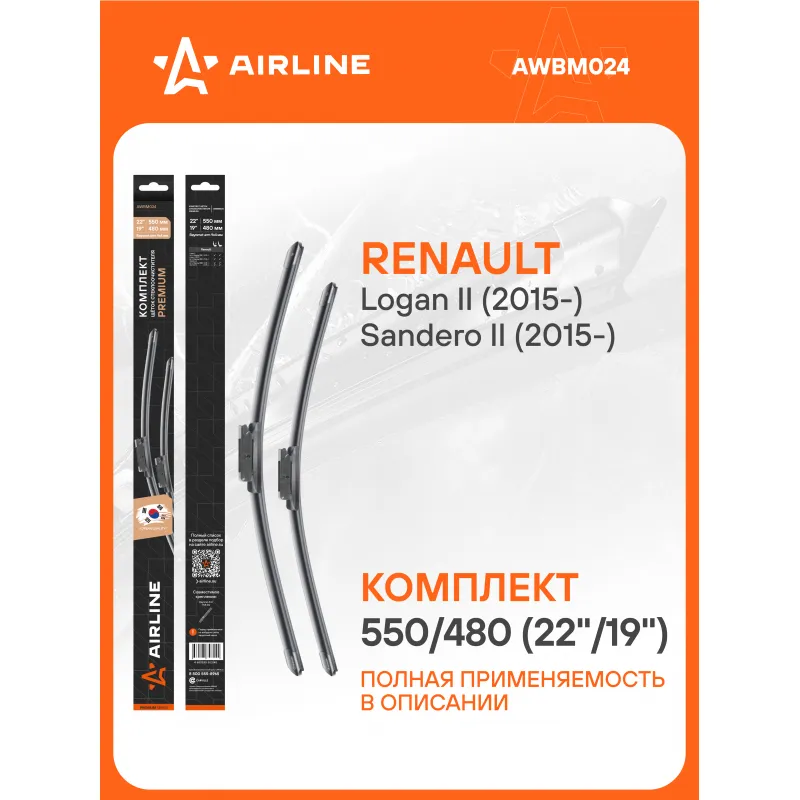 Щетки стеклоочистителя комплект 550/480мм (22"/19") бескаркасные PREMIUM с креплением "Bayonet arm 9x4 мм", 2 штуки Описание: Комплект модельных щеток стеклоочистителя PREMIUM с бескаркасной конструкцией AIRLINE AWBM024 550/480 мм - это результат инновационных разработок, направленных на обеспечение безупречного видения дороги в любых погодных условиях. Они специально разработаны для конкретных моделей авто, что позволяет достичь безупречного прилегания к лобовому стеклу и обеспечить высочайшую эффективность очистки. Использование премиальных материалов гарантирует долгий срок службы щеток, а также их стойкость к различным погодным условиям. Уникальная конструкция щеток AIRLINE обеспечивает тихую и плавную работу, минимизируя шум и неприятные звуки даже при высоких скоростях. Простота установки этих щеток стеклоочистителя делает их идеальным выбором для водителей, которые ценят свое время и удобство. Применяемость: RENAULT LOGAN / STEPWAY, SANDERO / STEPWAY.. Преимущества щетки AIRLINE AWBM024 - Материал щетки - долговечная натуральная резина; - Адаптеры произведены из специального технического пластика, от -40 до +60; - Адаптер - Bayonet arm 8x4, 9x4 mm - Штыковой замок 8x4, 9x4 мм; - Бесшумная работа бескаркасной щетки стеклоочистителя; - Равномерный прижим щетки к поверхности стекла; Если у вас есть вопросы по применяемости, мы всегда готовы помочь вам с подбором по VIN-НОМЕРУ ВАШЕГО АВТОМОБИЛЯ. С модельными щетками стеклоочистителя AIRLINE каждая поездка будет проходить с максимальным комфортом и безопасностью, независимо от погоды за окном. Мы гарантируем качество и надежность наших товаров. Характеристики: Артикул: AWBM024 OEM номера: 28 89 004 64R, 28 89 032 11R, 28 89 054 01R, 28 89 058 11R Размер водительской щетки, мм: 550 Размер пассажирской щетки, мм: 480 Адаптер крепления: Bayonet arm 8x4, 9x4 mm - Штыковой замок 8x4, 9x4 мм Размер водительской щетки, дюйм: 22 Размер пассажирской щетки, дюйм: 19 Тип: Бескаркасная Комплектация: Щетка стеклоочистителя - 2 шт Адаптеры - 2 шт Картонная коробка - 1 шт Пластиковая подложка - 1 шт Гарантия: от 1 года.