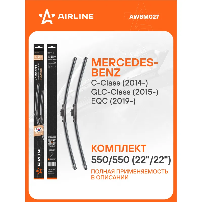 Щетки стеклоочистителя комплект 550/550мм (22"/22") бескаркасные PREMIUM с креплением "MBTL1.1", 2 штуки Описание: Комплект модельных щеток стеклоочистителя PREMIUM с бескаркасной конструкцией AIRLINE AWBM027 550/550 мм - это результат инновационных разработок, направленных на обеспечение безупречного видения дороги в любых погодных условиях. Они специально разработаны для конкретных моделей авто, что позволяет достичь безупречного прилегания к лобовому стеклу и обеспечить высочайшую эффективность очистки. Использование премиальных материалов гарантирует долгий срок службы щеток, а также их стойкость к различным погодным условиям. Уникальная конструкция щеток AIRLINE обеспечивает тихую и плавную работу, минимизируя шум и неприятные звуки даже при высоких скоростях. Простота установки этих щеток стеклоочистителя делает их идеальным выбором для водителей, которые ценят свое время и удобство. Применяемость: MERCEDES-BENZ C-Class, EQC, GLC.. Преимущества щетки AIRLINE AWBM027 - Материал щетки - долговечная натуральная резина; - Адаптеры произведены из специального технического пластика, от -40 до +60; - Адаптер - MBTL1.1 - МБТЛ1.1; - Бесшумная работа бескаркасной щетки стеклоочистителя; - Равномерный прижим щетки к поверхности стекла; Если у вас есть вопросы по применяемости, мы всегда готовы помочь вам с подбором по VIN-НОМЕРУ ВАШЕГО АВТОМОБИЛЯ. С модельными щетками стеклоочистителя AIRLINE каждая поездка будет проходить с максимальным комфортом и безопасностью, независимо от погоды за окном. Мы гарантируем качество и надежность наших товаров. Характеристики: Артикул: AWBM027 OEM номера: 2058205700, A2058205700 Размер водительской щетки, мм: 550 Размер пассажирской щетки, мм: 550 Адаптер крепления: MBTL1.1 - МБТЛ1.1 Размер водительской щетки, дюйм: 22 Размер пассажирской щетки, дюйм: 22 Тип: Бескаркасная Комплектация: Щетка стеклоочистителя - 2 шт Картонная коробка - 1 шт Адаптеры - 2 шт Пластиковая подложка - 1 шт Гарантия: от 1 года.