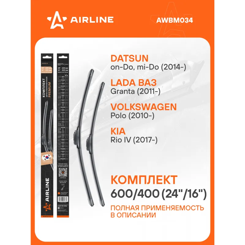 Щетки стеклоочистителя комплект 600/400мм (24"/16") бескаркасные PREMIUM с креплением "Крючок 9x3, 9x4 мм", 2 штуки Описание: Комплект модельных щеток стеклоочистителя PREMIUM с бескаркасной конструкцией AIRLINE AWBM034 600/400 мм - это результат инновационных разработок, направленных на обеспечение безупречного видения дороги в любых погодных условиях. Они специально разработаны для конкретных моделей авто, что позволяет достичь безупречного прилегания к лобовому стеклу и обеспечить высочайшую эффективность очистки. Использование премиальных материалов гарантирует долгий срок службы щеток, а также их стойкость к различным погодным условиям. Уникальная конструкция щеток AIRLINE обеспечивает тихую и плавную работу, минимизируя шум и неприятные звуки даже при высоких скоростях. Простота установки этих щеток стеклоочистителя делает их идеальным выбором для водителей, которые ценят свое время и удобство. Применяемость: BESTURN (FAW) X40, X80, BYD F3, F3R, CHERY TIGGO 5, CHEVROLET CAPTIVA, DATSUN mi-DO, on-DO, DODGE CALIBER, FORD RANGER, GEELY EMGRAND GT, EMGRAND EC7/7, GC6, VISION / FC, GREAT WALL HOVER M4, HAVAL M6, HYUNDAI i10, i20, SOLARIS, iX35, TUCSON, JAC S5, KIA SPORTAGE, CERATO, RIO, LADA GRANTA, KALINA, LANCIA YPSILON, LEXUS LS, LIFAN BREEZ (520), SOLANO (620), MAZDA 6, CX-5, 2, PREMACY, NISSAN NAVARA, X-TRAIL, OPEL ANTARA, RENAULT LATITUDE, MEGANE, SSANGYONG ACTYON, ACTYON SPORTS, KORANDO, STAVIC, TIVOLI, XLV, SUBARU IMPREZA, SUZUKI VITARA, TOYOTA AVENSIS, COROLLA, COROLLA VERSO, RAV 4, ALLION, PICNIC, PRIUS, YARIS, VW POLO.. Преимущества щетки AIRLINE AWBM034 - Материал щетки - долговечная натуральная резина; - Адаптеры произведены из специального технического пластика, от -40 до +60; - Адаптер - Hook 9x3, 9x4 mm - Крючок 9x3, 9x4 мм; - Бесшумная работа бескаркасной щетки стеклоочистителя; - Равномерный прижим щетки к поверхности стекла; Если у вас есть вопросы по применяемости, мы всегда готовы помочь вам с подбором по VIN-НОМЕРУ ВАШЕГО АВТОМОБИЛЯ. С модельными щетками стеклоочистителя AIRLINE каждая поездка будет проходить с максимальным комфортом и безопасностью, независимо от погоды за окном. Характеристики: Артикул: AWBM034 OEM номера: 6423 02, 71802636, 6E5317B437AA, 1 554 028, 111805205072, 11185205072, GS1E-67-330, GSFB673309K, GS1D67330, KD3567330, DF7167330, DD1067330, BHS267330, BBP267330, 8250A097, 8250A173, 8250A218, 8250A246, 8250A253, MZ 690431, 28890-JG410, KE28889925AG, KE28889960AG, 28890-5X10A, 28890ES61A, 288955X10B, 28890JR80A, 28891ES60A, 288909U100, 28891JG400, 12 72 037, 12 72 736, 62 72 271, 62 72 296, 1272 338, 6423 01, 86542SC110, 86542SC100, 86542FG330, 86542FG110, 86542FG100, 86542FG010, 86542AG22A, 86542AG120, 3834057L10, 3834057L00, 85212-05081, 85212YZZAC, 85212YZZCR, 8522205120, 85212-02161, 8521212371, 8521230410, 8522242110, 85222AA070, 85222YZZBE, 85222-52100, 85222-52180, 852220G010, 8522202220, 8522202130, 8521250100, 85212YZZAW, 85212YZZCQ, 85212-42120, 85212YZZAF, 85212-52170, 85222-33250, 8521213031, 8522202120, 8522202170, 8522205090, 85222-44070, 85212YZZAM, 7831534000, 7831534010, 7832534000, 7832534010, 98350 C8000, 98360 1S000, 983502S000, 983502S010, 983502Y000, 983602S000, 983502B010, 983501J200, 983501J000, 983602Y000, 98360H5000, 984000, 983503K100, 983502H050, 983502E010, 0K201-67-330A, 0K9A167330, 983501F010, 983501F060, 983601F000, 983601F050, 98350-1H300, 98350-1J920, 98350-2B910, S98350-2B010, 6RG 955 425 A, 6RU 955 425 C, 7H1955425F, 7H1955426, 13227404, 9195562, 93178171, 93187194, 95161605, 96262505, 96830172, 96910777, 288905PA0A, 288905PA0B, 8522233200, 85222-33240, 8522233241, 8522250080, 5205142XS56XA, B5205220, B5205320 Размер водительской щетки, мм: 600 Размер пассажирской щетки, мм: 400 Адаптер крепления: Hook 9x3, 9x4 mm - Крючок 9x3, 9x4 мм Размер водительской щетки, дюйм: 24 Размер пассажирской щетки, дюйм: 16 Тип: Бескаркасная Комплектация: Щетка стеклоочистителя - 2 шт Адаптеры - 2 шт Картонная коробка - 1 шт Пластиковая подложка - 1 шт Гарантия: от 1 года.