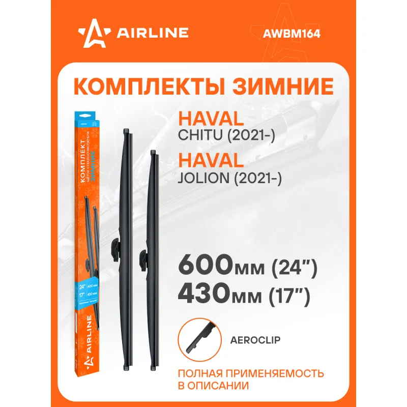 Щетки стеклоочистителя комплект 600/430мм (24"/17") зимние с креплением "Aeroclip", 2 штуки Описание: Модельные зимние щетки стеклоочистителя AIRLINE – это результат инновационных разработок, направленных на обеспечение безупречного видения дороги в любых зимних погодных условиях. Они специально разработаны для конкретных моделей авто, что позволяет достичь безупречного прилегания к лобовому стеклу и обеспечить высочайшую эффективность очистки даже при низких температурах и обильных осадках. Щетки изготовлены из премиальных материалов и специальной резины EPDM, которая отлично сохраняет свои свойства даже в агрессивно-химических условиях, таких как воздействие дорожных реагентов. Это обеспечивает долгий срок службы и высокую стойкость щеток к экстремальным зимним условиям. Уникальная конструкция щеток AIRLINE обеспечивает тихую и плавную работу, минимизируя шум и неприятные звуки, обеспечивая стабильную работу в любых зимних условиях. Простота установки этих щеток стеклоочистителя делает их идеальным выбором для водителей, которые ценят свое время и удобство. С модельными зимними щетками стеклоочистителя AIRLINE каждая зимняя поездка будет проходить с максимальным комфортом и безопасностью, независимо от погоды за окном. Характеристики: Артикул: AWBM164 OEM номера: 5205104XST01A, 5205102XST01A Размер водительской щетки, мм: 600 Размер пассажирской щетки, мм: 430 Адаптер крепления: AeroClip - Аэроклип Размер водительской щетки, дюйм: 24 Размер пассажирской щетки, дюйм: 17 Тип: Зимняя Комплектация: Щетка стеклоочистителя - 2 шт Адаптеры - 2 шт Картонная коробка - 1 шт Картонная подложка для щетки стеклоочистителя - 2 шт Гарантия: от 1 года.