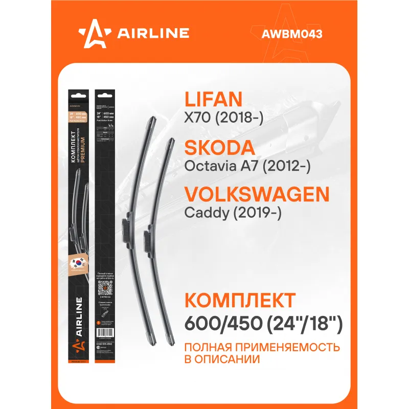 Щетки стеклоочистителя комплект 600/450мм (24"/18") бескаркасные PREMIUM с креплением "Push Button 16 мм", 2 штуки Описание: Комплект модельных щеток стеклоочистителя PREMIUM с бескаркасной конструкцией AIRLINE AWBM043 600/450 мм - это результат инновационных разработок, направленных на обеспечение безупречного видения дороги в любых погодных условиях. Они специально разработаны для конкретных моделей авто, что позволяет достичь безупречного прилегания к лобовому стеклу и обеспечить высочайшую эффективность очистки. Использование премиальных материалов гарантирует долгий срок службы щеток, а также их стойкость к различным погодным условиям. Уникальная конструкция щеток AIRLINE обеспечивает тихую и плавную работу, минимизируя шум и неприятные звуки даже при высоких скоростях. Простота установки этих щеток стеклоочистителя делает их идеальным выбором для водителей, которые ценят свое время и удобство. Применяемость: LIFAN X70, SKODA OCTAVIA, VW CADDY.. Преимущества щетки AIRLINE AWBM043 - Материал щетки - долговечная натуральная резина; - Адаптеры произведены из специального технического пластика, от -40 до +60; - Адаптер - Push Button 16 mm - Узкая кнопка 16 мм; - Бесшумная работа бескаркасной щетки стеклоочистителя; - Равномерный прижим щетки к поверхности стекла; Если у вас есть вопросы по применяемости, мы всегда готовы помочь вам с подбором по VIN-НОМЕРУ ВАШЕГО АВТОМОБИЛЯ. С модельными щетками стеклоочистителя AIRLINE каждая поездка будет проходить с максимальным комфортом и безопасностью, независимо от погоды за окном. Мы гарантируем качество и надежность наших товаров. Характеристики: Артикул: AWBM043 OEM номера: 2K1 955 425 E, 2K1 998 002, 5E1 955 425, 5E1 955 425 A, 5E1 955 426, 5E1 955 426 A, 5E1 998 001 Размер водительской щетки, мм: 600 Размер пассажирской щетки, мм: 450 Адаптер крепления: Push Button 16 mm - Узкая кнопка 16 мм Размер водительской щетки, дюйм: 24 Размер пассажирской щетки, дюйм: 18 Тип: Бескаркасная Комплектация: Щетка стеклоочистителя - 2 шт Адаптеры - 2 шт Картонная коробка - 1 шт Пластиковая подложка - 1 шт Гарантия: от 1 года.