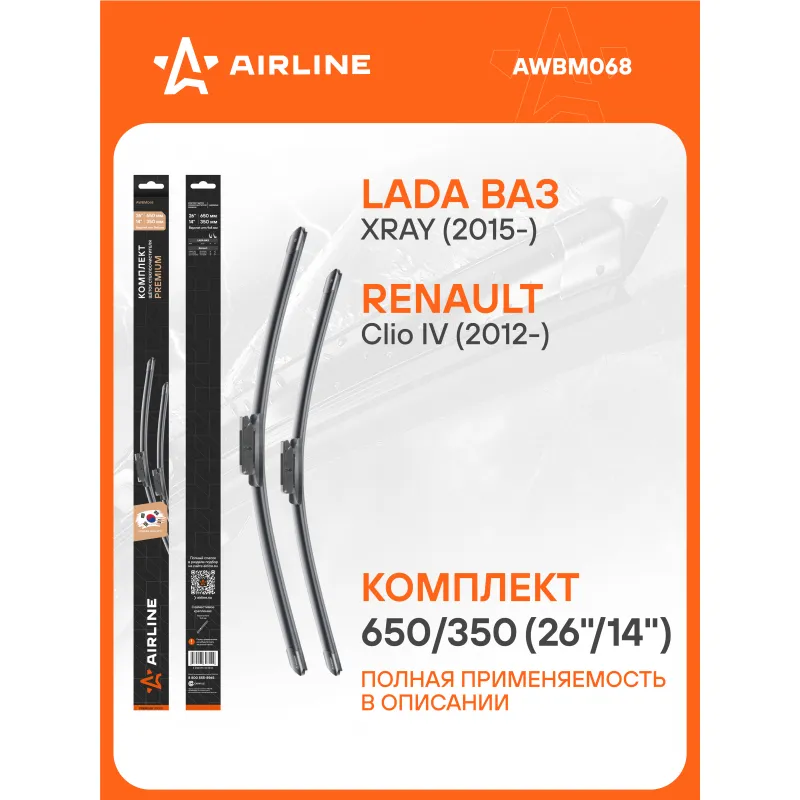 Щетки стеклоочистителя комплект 650/350мм (26"/14") бескаркасные PREMIUM с креплением "Bayonet arm 9x4 мм", 2 штуки Описание: Комплект модельных щеток стеклоочистителя PREMIUM с бескаркасной конструкцией AIRLINE AWBM068 650/350 мм - это результат инновационных разработок, направленных на обеспечение безупречного видения дороги в любых погодных условиях. Они специально разработаны для конкретных моделей авто, что позволяет достичь безупречного прилегания к лобовому стеклу и обеспечить высочайшую эффективность очистки. Использование премиальных материалов гарантирует долгий срок службы щеток, а также их стойкость к различным погодным условиям. Уникальная конструкция щеток AIRLINE обеспечивает тихую и плавную работу, минимизируя шум и неприятные звуки даже при высоких скоростях. Простота установки этих щеток стеклоочистителя делает их идеальным выбором для водителей, которые ценят свое время и удобство. Применяемость: LADA XRAY, RENAULT CLIO.. Преимущества щетки AIRLINE AWBM068 - Материал щетки - долговечная натуральная резина; - Адаптеры произведены из специального технического пластика, от -40 до +60; - Адаптер - Bayonet arm 8x4, 9x4 mm - Штыковой замок 8x4, 9x4 мм; - Бесшумная работа бескаркасной щетки стеклоочистителя; - Равномерный прижим щетки к поверхности стекла; Если у вас есть вопросы по применяемости, мы всегда готовы помочь вам с подбором по VIN-НОМЕРУ ВАШЕГО АВТОМОБИЛЯ. С модельными щетками стеклоочистителя AIRLINE каждая поездка будет проходить с максимальным комфортом и безопасностью, независимо от погоды за окном. Мы гарантируем качество и надежность наших товаров. Характеристики: Артикул: AWBM068 OEM номера: 28 89 004 32R, 28 89 011 64R, 28 89 029 58R, 28 89 030 13R, 28 89 038 79R, 28 89 055 29R, 28 89 058 75R, 28 89 098 71R, 28 89 542 76R Размер водительской щетки, мм: 650 Размер пассажирской щетки, мм: 350 Адаптер крепления: Bayonet arm 8x4, 9x4 mm - Штыковой замок 8x4, 9x4 мм Размер водительской щетки, дюйм: 26 Размер пассажирской щетки, дюйм: 14 Тип: Бескаркасная Комплектация: Щетка стеклоочистителя - 2 шт Картонная коробка - 1 шт Адаптеры - 2 шт Пластиковая подложка - 1 шт Гарантия: от 1 года.