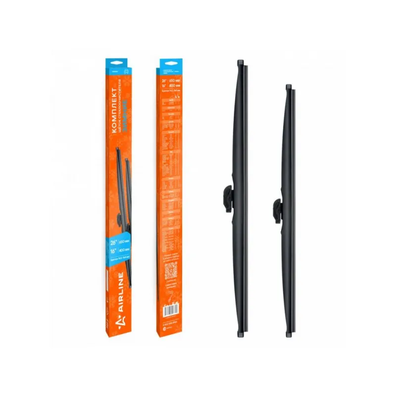 Щетки стеклоочистителя комплект 650/400мм (26"/16") зимние с креплением "Крючок 9x3, 9x4 мм", 2 штуки Описание: Модельные зимние щетки стеклоочистителя AIRLINE – это результат инновационных разработок, направленных на обеспечение безупречного видения дороги в любых зимних погодных условиях. Они специально разработаны для конкретных моделей авто, что позволяет достичь безупречного прилегания к лобовому стеклу и обеспечить высочайшую эффективность очистки даже при низких температурах и обильных осадках. Щетки изготовлены из премиальных материалов и специальной резины EPDM, которая отлично сохраняет свои свойства даже в агрессивно-химических условиях, таких как воздействие дорожных реагентов. Это обеспечивает долгий срок службы и высокую стойкость щеток к экстремальным зимним условиям. Уникальная конструкция щеток AIRLINE обеспечивает тихую и плавную работу, минимизируя шум и неприятные звуки, обеспечивая стабильную работу в любых зимних условиях. Простота установки этих щеток стеклоочистителя делает их идеальным выбором для водителей, которые ценят свое время и удобство. С модельными зимними щетками стеклоочистителя AIRLINE каждая зимняя поездка будет проходить с максимальным комфортом и безопасностью, независимо от погоды за окном. Характеристики: Артикул: AWBM161 OEM номера: 76620-SDA-A01, 76620-STK-A01, 76620-T0A-A02, 76620-TX4-A02, 76630-SDA-A01, 76630-SEC-A11, 76630-STK-A01, 76630-T0A-A02, 261022000000, CC29-67-330, CC30-67-330, EG21-67-330, EG22-67-330, GS1E-67-330, TD11-67-330, TD12-67-330, 28890-1AA0B, 28890-1AA0C, 28890-1AA1B, 28890-1AA1C, 28890-4BA0C, 28890-4BA1B, 28890-4EH0A, 28890-4EH1A, KE288-90020, 6426.KW, 6426.XZ, 86542-FJ030, 86542-FJ080, 86542-FJ130, 86542-SG020, 86542-SG100, 86542-SG110, 85212-42130, 85212-44080, 85222-42120, 85222-44070, 983501R050, 98350-1R100, 98350-3X000, 98360-1R000, 98360-1R100, 98360-1W000, 983501R000, 94732524 Размер водительской щетки, мм: 650 Размер пассажирской щетки, мм: 400 Адаптер крепления: Hook 9x3, 9x4 mm - Крючок 9x3, 9x4 мм Размер водительской щетки, дюйм: 26 Размер пассажирской щетки, дюйм: 16 Комплектация: Щетка стеклоочистителя - 2 шт Адаптеры - 2 шт Картонная коробка - 1 шт Картонная подложка для щетки стеклоочистителя - 2 шт Гарантия: от 1 года.