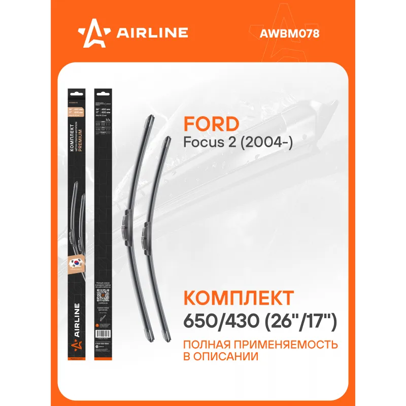 Щетки стеклоочистителя комплект 650/430мм (26"/17") бескаркасные PREMIUM с креплением "Side Pin 22 мм", 2 штуки Описание: Комплект модельных щетки стеклоочистителя PREMIUM с бескаркасной конструкцией AIRLINE AWBM078 650/430 мм - это результат инновационных разработок, направленных на обеспечение безупречного видения дороги в любых погодных условиях. Они специально разработаны для конкретных моделей авто, что позволяет достичь безупречного прилегания к лобовому стеклу и обеспечить высочайшую эффективность очистки. Использование премиальных материалов гарантирует долгий срок службы щеток, а также их стойкость к различным погодным условиям. Уникальная конструкция щеток AIRLINE обеспечивает тихую и плавную работу, минимизируя шум и неприятные звуки даже при высоких скоростях. Простота установки этих щеток стеклоочистителя делает их идеальным выбором для водителей, которые ценят свое время и удобство. Применяемость: BMW 6, FORD FOCUS, PEUGEOT 207.. Преимущества щетки AIRLINE AWBM078 - Материал щетки - долговечная натуральная резина; - Адаптеры произведены из специального технического пластика, от -40 до +60; - Адаптер - Side pin 17 mm, 22 mm - Боковой штырь 17 мм, 22 мм; - Бесшумная работа бескаркасной щетки стеклоочистителя; - Равномерный прижим щетки к поверхности стекла; Если у вас есть вопросы по применяемости, мы всегда готовы помочь вам с подбором по VIN-НОМЕРУ ВАШЕГО АВТОМОБИЛЯ. С модельными щетками стеклоочистителя AIRLINE каждая поездка будет проходить с максимальным комфортом и безопасностью, независимо от погоды за окном. Характеристики: Артикул: AWBM078 OEM номера: 6423.A4, 6426.YV, 6426.YW, 6426.YX, 6426.YY, 1537077, 1352060, 1352062, 1738870, 4M5J-S17528-AA Размер водительской щетки, мм: 650 Размер пассажирской щетки, мм: 430 Адаптер крепления: Side pin 17 mm, 22 mm - Боковой штырь 17 мм, 22 мм Размер водительской щетки, дюйм: 26 Размер пассажирской щетки, дюйм: 17 Тип: Бескаркасная Комплектация: Щетка стеклоочистителя - 2 шт Адаптеры - 2 шт Картонная коробка - 1 шт Пластиковая подложка - 1 шт Гарантия: от 1 года.