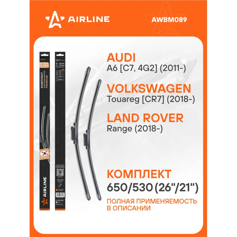Щетки стеклоочистителя комплект 650/530мм (26"/21") бескаркасные PREMIUM с креплением "Push Button 16 мм", 2 штуки Описание: Комплект модельных щеток стеклоочистителя PREMIUM с бескаркасной конструкцией AIRLINE AWBM089 650/530 мм - это результат инновационных разработок, направленных на обеспечение безупречного видения дороги в любых погодных условиях. Они специально разработаны для конкретных моделей авто, что позволяет достичь безупречного прилегания к лобовому стеклу и обеспечить высочайшую эффективность очистки. Использование премиальных материалов гарантирует долгий срок службы щеток, а также их стойкость к различным погодным условиям. Уникальная конструкция щеток AIRLINE обеспечивает тихую и плавную работу, минимизируя шум и неприятные звуки даже при высоких скоростях. Простота установки этих щеток стеклоочистителя делает их идеальным выбором для водителей, которые ценят свое время и удобство. Применяемость: AUDI A6, A7, LAND ROVER RANGE ROVER EVOQUE, VW TERAMONT / ATLAS, TOUAREG.. Преимущества щетки AIRLINE AWBM089 - Материал щетки - долговечная натуральная резина; - Адаптеры произведены из специального технического пластика, от -40 до +60; - Адаптер - Push Button 16 mm - Узкая кнопка 16 мм; - Бесшумная работа бескаркасной щетки стеклоочистителя; - Равномерный прижим щетки к поверхности стекла; Если у вас есть вопросы по применяемости, мы всегда готовы помочь вам с подбором по VIN-НОМЕРУ ВАШЕГО АВТОМОБИЛЯ. С модельными щетками стеклоочистителя AIRLINE каждая поездка будет проходить с максимальным комфортом и безопасностью, независимо от погоды за окном. Мы гарантируем качество и надежность наших товаров. Характеристики: Артикул: AWBM089 OEM номера: 4G1 955 425 A, 4G1 998 002 A, 8F1 955 426 A Размер водительской щетки, мм: 650 Размер пассажирской щетки, мм: 530 Адаптер крепления: Push Button 16 mm - Узкая кнопка 16 мм Размер водительской щетки, дюйм: 26 Размер пассажирской щетки, дюйм: 21 Тип: Бескаркасная Комплектация: Щетка стеклоочистителя - 2 шт Адаптеры - 2 шт Картонная коробка - 1 шт Пластиковая подложка - 1 шт Гарантия: от 1 года.