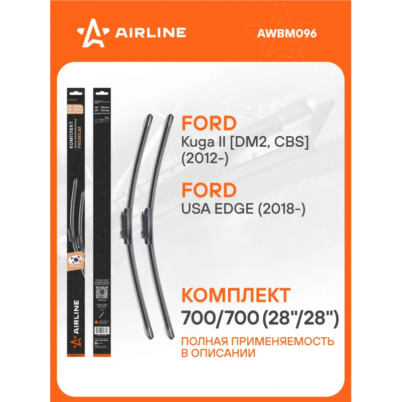 Щетки стеклоочистителя комплект 700/700мм (28"/28") бескаркасные PREMIUM с креплением "Pinch Tab", 2 штуки Описание: Комплект модельных щеток стеклоочистителя PREMIUM с бескаркасной конструкцией AIRLINE AWBM096 700/700 мм - это результат инновационных разработок, направленных на обеспечение безупречного видения дороги в любых погодных условиях. Они специально разработаны для конкретных моделей авто, что позволяет достичь безупречного прилегания к лобовому стеклу и обеспечить высочайшую эффективность очистки. Использование премиальных материалов гарантирует долгий срок службы щеток, а также их стойкость к различным погодным условиям. Уникальная конструкция щеток AIRLINE обеспечивает тихую и плавную работу, минимизируя шум и неприятные звуки даже при высоких скоростях. Простота установки этих щеток стеклоочистителя делает их идеальным выбором для водителей, которые ценят свое время и удобство. Применяемость: FORD EDGE, KUGA.. Преимущества щетки AIRLINE AWBM096 - Материал щетки - долговечная натуральная резина; - Адаптеры произведены из специального технического пластика, от -40 до +60; - Адаптер - Pinch Tab - Боковой зажим; - Бесшумная работа бескаркасной щетки стеклоочистителя; - Равномерный прижим щетки к поверхности стекла; Если у вас есть вопросы по применяемости, мы всегда готовы помочь вам с подбором по VIN-НОМЕРУ ВАШЕГО АВТОМОБИЛЯ. С модельными щетками стеклоочистителя AIRLINE каждая поездка будет проходить с максимальным комфортом и безопасностью, независимо от погоды за окном. Мы гарантируем качество и надежность наших товаров. Характеристики: Артикул: AWBM096 OEM номера: 1814112, 5310655, 5310654, 2 121 378 Размер водительской щетки, мм: 700 Размер пассажирской щетки, мм: 700 Адаптер крепления: Pinch Tab - Боковой зажим Размер водительской щетки, дюйм: 28 Размер пассажирской щетки, дюйм: 28 Тип: Бескаркасная Комплектация: Щетка стеклоочистителя - 2 шт Адаптеры - 2 шт Картонная коробка - 1 шт Пластиковая подложка - 1 шт Гарантия: от 1 года.