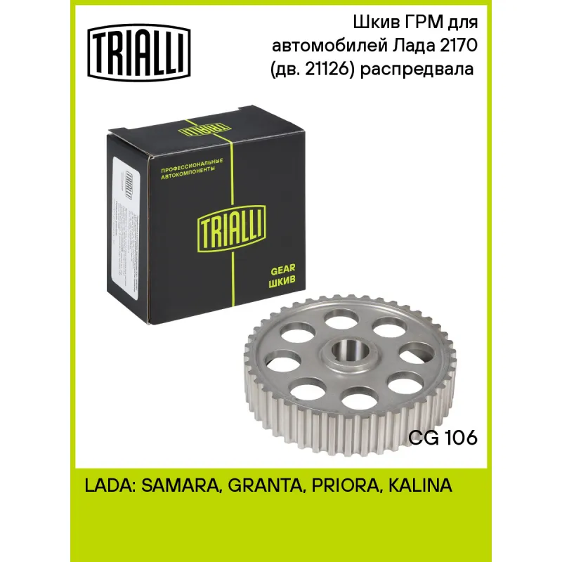 Шкив ГРМ для автомобилей Лада 2170 (дв. 21126) распредвала (выпускной б/кольца) Характеристики: Артикул: CG 106 OEM номера: 21126100603100 Материал: сталь Ширина, мм: 28 Внешний диаметр, мм: 125.8 Гарантийный срок: 2 года/60 000 км. Способ производства: не литые Количество на автомобиль: 1 Комплектация: Шестерня распредвала -... Читать полностью →