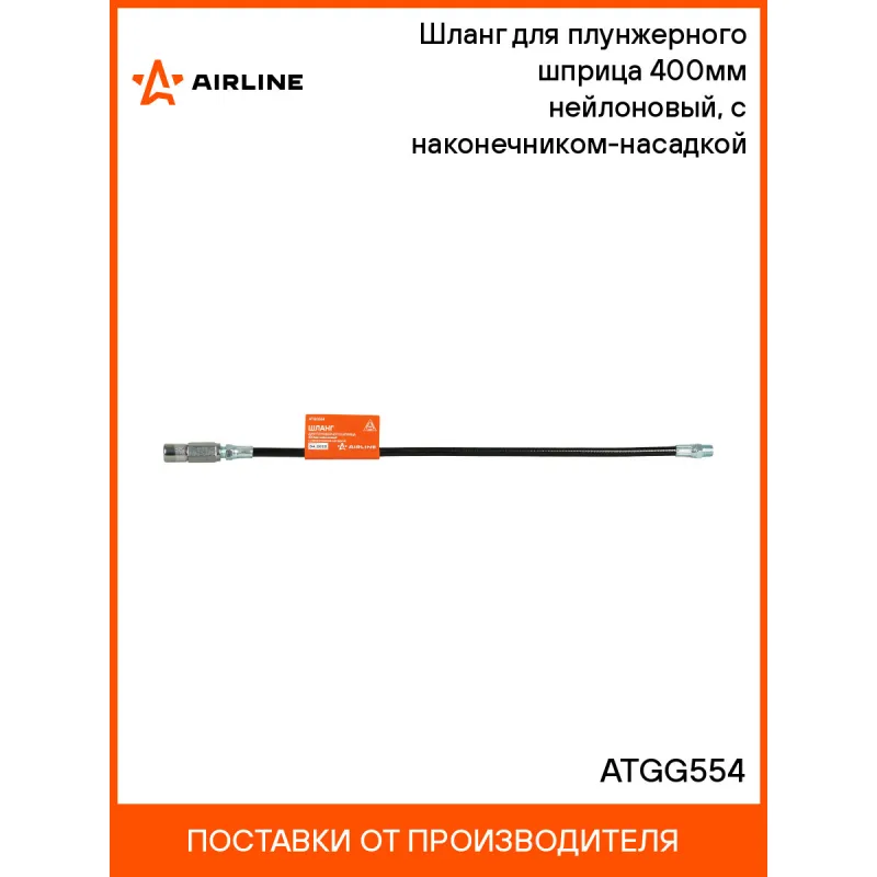 Шланг для плунжерного шприца 400мм нейлоновый, с наконечником-насадкой Описание: Шланг для плунжерного шприца 400мм нейлоновый, с наконечником-насадкой (ATGG554) — это практичное и надежное решение для удобного и эффективного обслуживания оборудования, агрегатов и узлов, требующих регулярной смазки. Комплект включает в себя нейлоновый шланг длиной 400 мм и четырехлепестковый наконечник, который обеспечивает плотное соединение с пресс-масленкой. Характеристики: Артикул: ATGG554 Материал: нейлон, сталь Длина, мм: 500 Присоединительная резьба: NPT 1/8-27 Рабочее давление, атм: 240-580 Максимальное давление, aтм: 680 Комплектация: Шланг нейлоновый - 1 шт Наконечник 4-х лепестковый - 1 шт Гарантия: от 1 года.