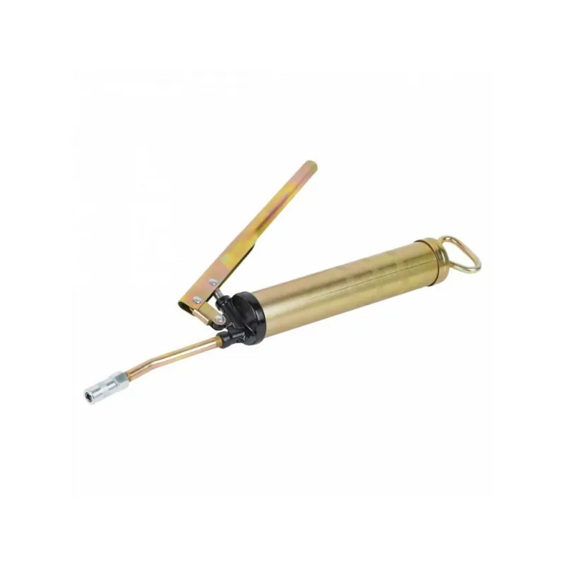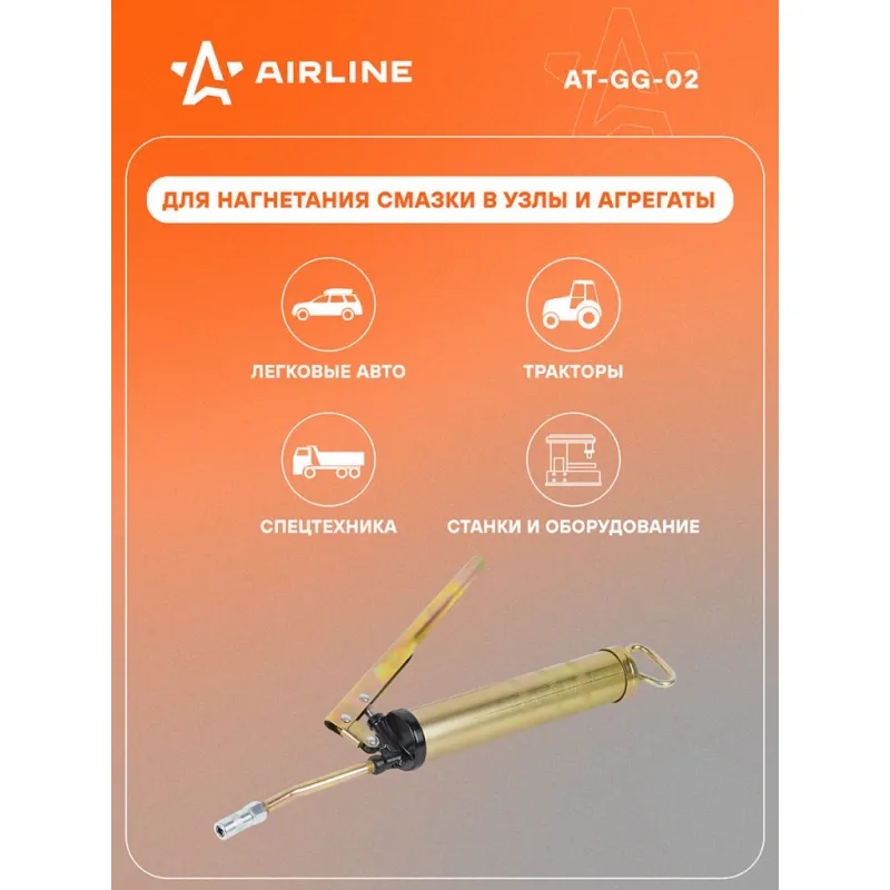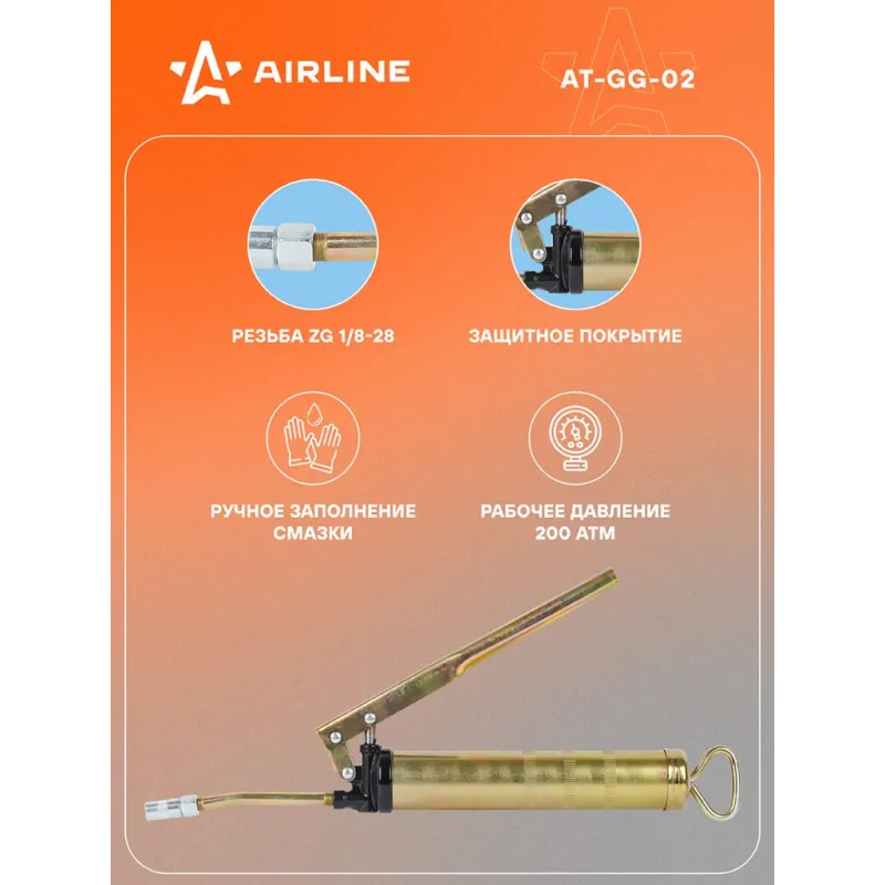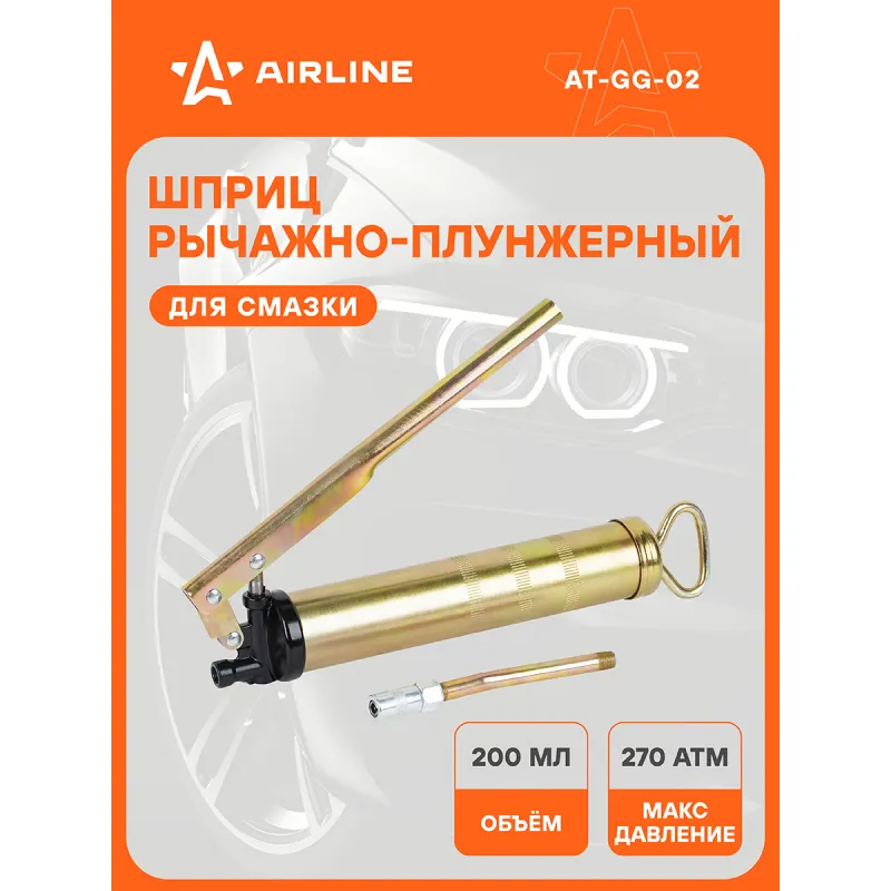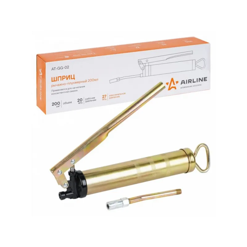 Шприц рычажно-плунжерный 200см3 Описание: Шприц рычажно-плунжерный пистолетного типа AIRLINE AT-GG-02 предназначен для нагнетания пластичной (консистентной) смазки в различные узлы и агрегаты, подверженные трению. Производится из высокопрочной стали на автоматизированном оборудовании, а прочный корпус имеет защитное покрытие. Применяется для обслуживания легковых автомобилей, грузовых, тракторов, спецтехники, промышленного оборудования и станков. Особенности инструмента: - Ручное заполнение смазкой. - Присоединительная резьба - ZG 1/8-28; - Максимальное давление - 27 Mпа; - Работа двумя руками; - Подходит для профессионального использования в автомастерских, СТО, а также для самостоятельной работы с инструментом; - Инструкция на русском языке в комплекте; Ручной нагнетатель для масла и смазки AIRLINE - отличный инструмент для замены устаревшей смазки, смазывания механизмов автомобиля и подачи новой смазки на детали машины. Такой инструмент можно преподнести в подарок любимому парню, мужу, брату, коллеге, другу, папе и дедушке на любой праздник, день рождения, Новый год и просто так. Характеристики: Артикул: AT-GG-02 OEM номера: 42200 Присоединительная резьба: ZG 1/8-28 Количество плунжеров: 1 Рабочее давление, атм: 200 Максимальное давление, aтм: 270 Максимальное давление, Mпа: 27 Работа одной рукой: нет Работа двумя руками: да Ёмкость смазки, см.куб.: 200 Работа с картриджем: Нет Ручное заполнение смазкой: Есть Клапан выпуска воздуха: Нет Клапан для заправки шприца смазкой: Нет Рабочее давление, Мпа: 20 Комплектация: Шприц рычажно-плунжерный - 1 шт Трубка стальная 105мм с 4-м лепестковым наконечником - 1 шт Гарантия: от 1 года.