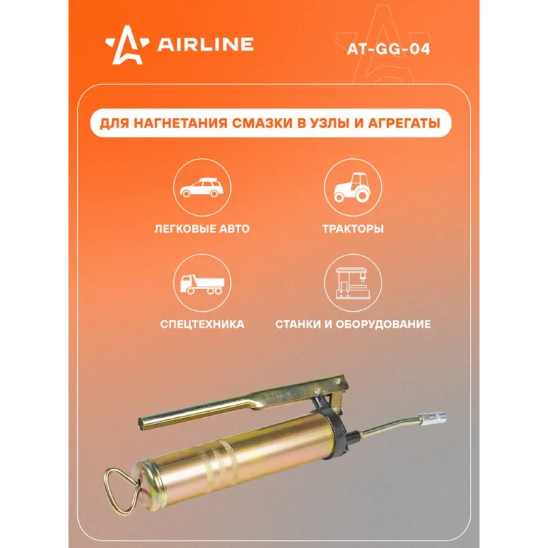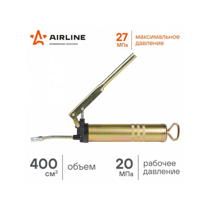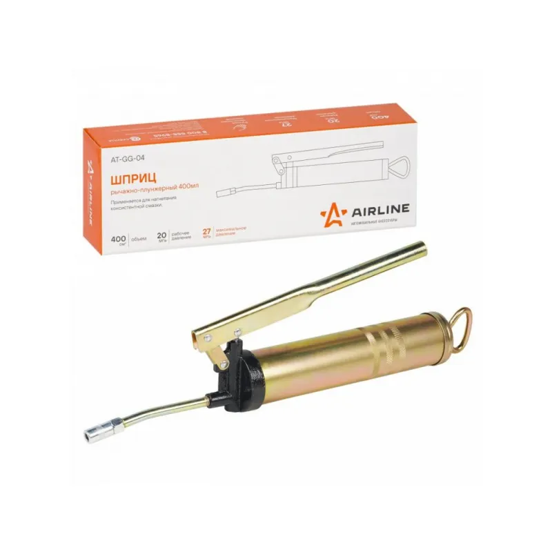 Шприц рычажно-плунжерный 400см3 Описание: Шприц рычажно-плунжерный пистолетного типа AIRLINE AT-GG-04 предназначен для нагнетания пластичной (консистентной) смазки в различные узлы и агрегаты, подверженные трению. Производится из высокопрочной стали на автоматизированном оборудовании, а прочный корпус имеет защитное покрытие. Применяется для обслуживания легковых автомобилей, грузовых, тракторов, спецтехники, промышленного оборудования и станков. Особенности инструмента: - Ручное заполнение смазкой. - Присоединительная резьба - ZG 1/8-28; - Максимальное давление - 27 Mпа; - Работа двумя руками; - Подходит для профессионального использования в автомастерских, СТО, а также для самостоятельной работы с инструментом; - Инструкция на русском языке в комплекте; Ручной нагнетатель для масла и смазки AIRLINE - отличный инструмент для замены устаревшей смазки, смазывания механизмов автомобиля и подачи новой смазки на детали машины. Такой инструмент можно преподнести в подарок любимому парню, мужу, брату, коллеге, другу, папе и дедушке на любой праздник, день рождения, Новый год и просто так. Характеристики: Артикул: AT-GG-04 OEM номера: 42040, 865542 Количество плунжеров: 1 Рабочее давление, атм: 200 Максимальное давление, aтм: 270 Работа одной рукой: нет Работа двумя руками: да Ёмкость смазки, см.куб.: 400 Работа с картриджем: Нет Ручное заполнение смазкой: Есть Клапан выпуска воздуха: Нет Клапан для заправки шприца смазкой: Нет Присоединительная резьба: ZG 1/8-28 Рабочее давление, Мпа: 20 Максимальное давление, Mпа: 27 Комплектация: Шприц рычажно-плунжерный - 1 шт Наконечник 4-х лепестковый - 1 шт Трубка стальная изогнутая 105мм - 1 шт Гарантия: от 1 года.