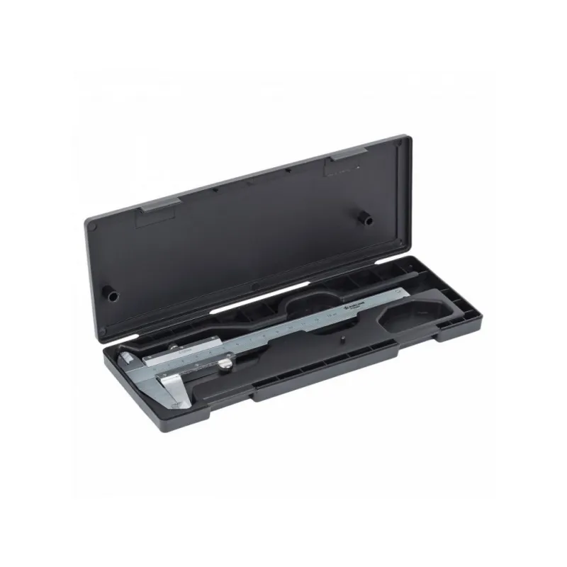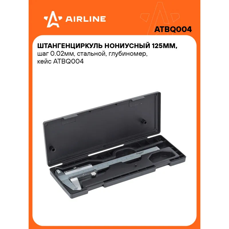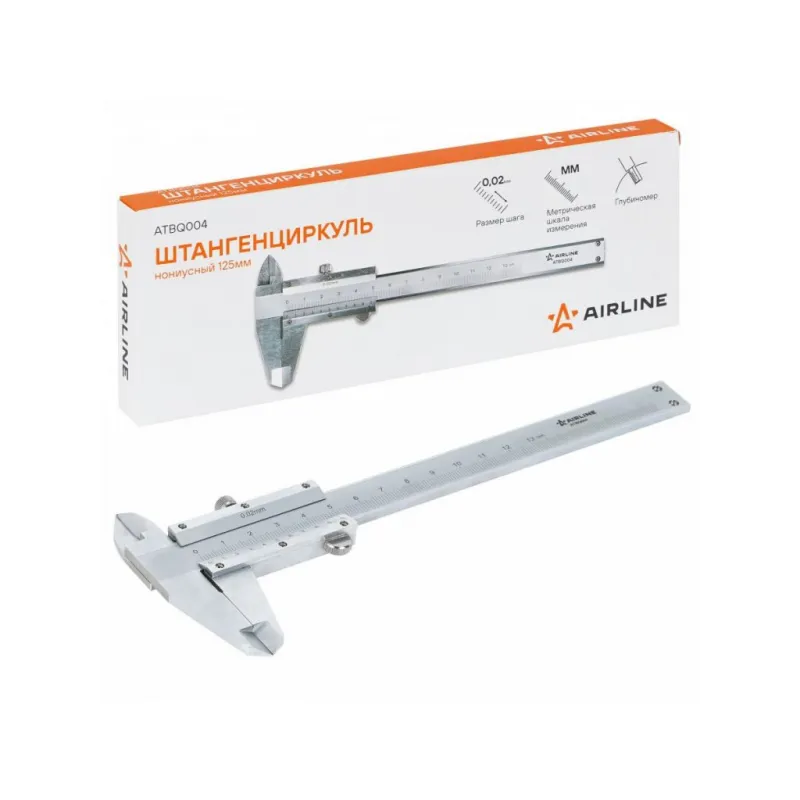Штангенциркуль нониусный 125мм, шаг 0.02мм, стальной, глубиномер, кейс Описание: Штангенциркуль AIRLINE ATBQ004 представляет собой точный и надежный инструмент для измерения внешних и внутренних размеров различных предметов. Рабочий диапазон этой модели 0-125мм, размер шага 0.02 мм, штангенциркуль оснащен глубиномером. Изготовлен из стали СТ45, обработан высококачественным антикоррозийным маслом. Поставляется в пластиковом кейсе, в котором удобно транспортировать и хранить изделие. Абсолютно все штангенциркули производятся по единой технологии на современных автоматизированных предприятиях. Тестирование штангенциркулей происходит в собственной современной испытательной лаборатории, что является залогом качества и надежности. Характеристики: Артикул: ATBQ004 Тип: нониусный Min значение диапазона измерений, мм: 0 Max значение диапазона измерений, мм: 125 Рамка микроподачи: нет Размер шага, мм: 0.02 Глубиномер: да Материал губок: сталь Материал штанги: сталь Вид штангенциркуля: ШЦ-I Комплектация: Штангенциркуль в кейсе - 1 шт Пакет силикагеля - 1 шт Гарантия: от 1 года.
