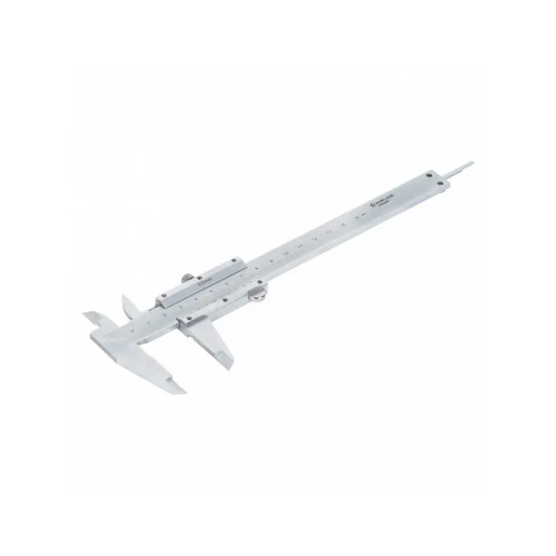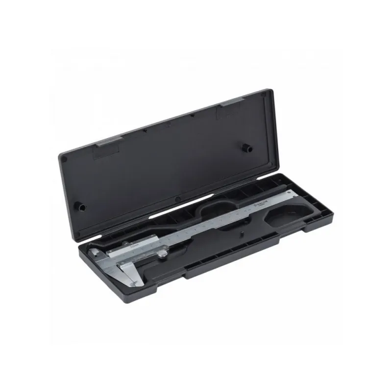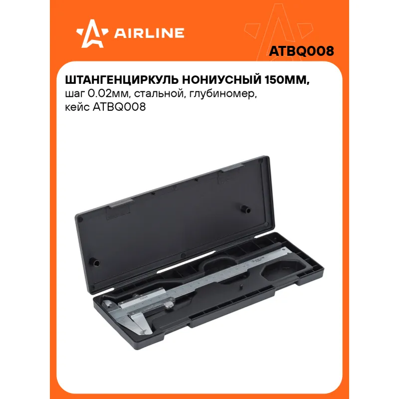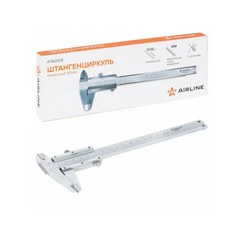 Штангенциркуль нониусный 150мм, шаг 0.02мм, стальной, глубиномер, кейс Описание: Штангенциркуль AIRLINE ATBQ008 представляет собой точный и надежный инструмент для измерения внешних и внутренних размеров различных предметов. Рабочий диапазон этой модели 0-150мм, размер шага 0.02 мм, штангенциркуль оснащен глубиномером. Изготовлен из стали СТ45, обработан высококачественным антикоррозийным маслом. Поставляется в пластиковом кейсе, в котором можно удобно транспортировать и хранить изделие./ Абсолютно все штангенциркули производятся по единой технологии на современных автоматизированных предприятиях. Тестирование штангенциркулей происходит в собственной современной испытательной лаборатории, что является залогом качества и надежности. Характеристики: Артикул: ATBQ008 Тип: нониусный Min значение диапазона измерений, мм: 0 Max значение диапазона измерений, мм: 150 Рамка микроподачи: нет Размер шага, мм: 0.02 Глубиномер: да Материал губок: сталь Материал штанги: сталь Вид штангенциркуля: ШЦ-I Комплектация: Штангенциркуль в кейсе - 1 шт Пакет силикагеля - 1 шт Гарантия: от 1 года.