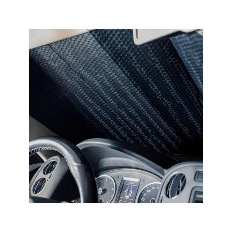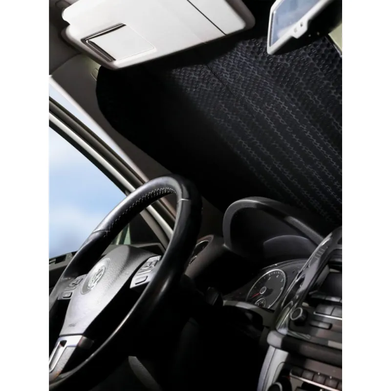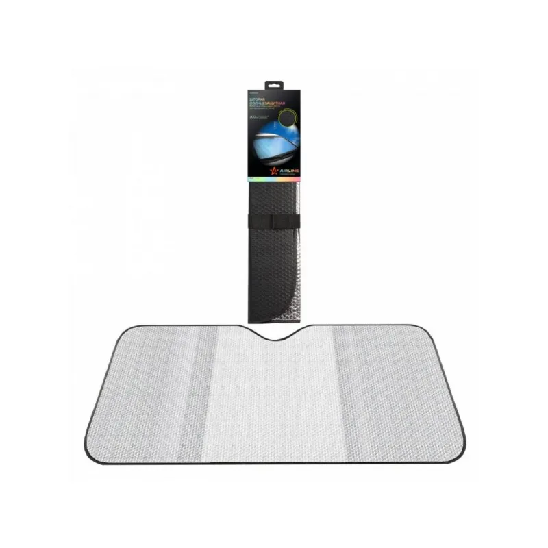 Шторка солнцезащитная PRO 60*130см на лобовое стекло, 200г/м2, черный/серый Описание: Бережная защита от солнца от бренда AIRLINE ADSS001 на лобовое стекло салона вашего автомобиля. Двусторонняя солнцезащитная шторка AIRLINE в машину размером необходима для блокировки попадания солнечных лучей со стороны лобового стекла в салон машины. Серебристая поверхность автошторки отражает солнечные лучи, защищая салон и торпедо автомобиля от перегрева. Внутренняя поверхность для красоты имеет черное матовое покрытие. Шторка имеет повышенную плотность (жесткость). Крепится к лобовому стеклу при помощи солнцезащитных козырьков. Высота шторки 60 см - идеальна для среднеразмерных автомобилей. Характеристики: Артикул: ADSS001 Цвет: черный/серебро Тип крепления: прижимается козырьками Плотность материала, г/м2: 200 Ширина, мм: 1300 Высота, мм: 600 Комплектация: Шторка - 1 шт Навершие картонное - 1 шт Гарантия: от 1 года.