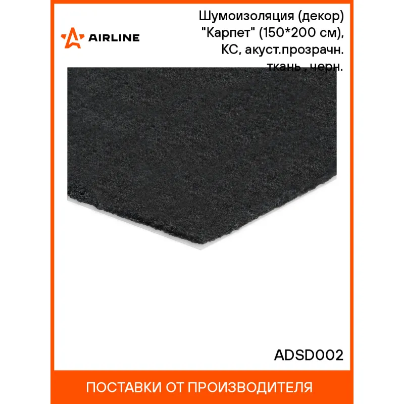 Шумоизоляция (декор) "Карпет" (150*200 см), КС, акуст.прозрачн. ткань (220-250 г/м), черн. Описание: Представляет собой нетканый ворсованный, акустически прозрачный и приятный на ощупь материал графитового цвета. Карпет широко применяется для декорирования деталей салона авто, багажника, задней полки, сабвуферных корпусов и разнообразных панелей при установке автозвука. Также его можно использовать для устранения скрипа соприкасающихся деталей интерьера автомобиля, герметизации и уплотнения стыков и швов. -Акустически прозрачная ткань; -Приятный на ощупь материал; - Удобство при монтаже, мягкий и тянущийся материал. Пригоден для монтажа на поверхностях имеющих сложную конфигурацию; Рекомендуемые зоны обработки: деталей салона авто, багажника, задней полки, сабвуферных корпусов и разнообразных панелей. Монтаж: Перед осуществлением монтажа поверхность необходимо очистить от загрязнений и обезжирить растворителем. Снять защитный слой из силиконизированной бумаги или пленки и приклеить к поверхности. Характеристики: Артикул: ADSD002 Ширина, мм: 500 Рабочий диапазон температур, С: -40/+100 Адгезия к металлу (не менее), Н/См2: 5 Липкость, Н/См2: 10 Монтажные работы при темп., С: +10/+35 Клеевой слой: есть Запах: нет Ширина изделия, мм: 1500 Длина изделия, мм: 2000 Комплектация: Декоративное полотно - 1 шт Гарантия: от 1 года.