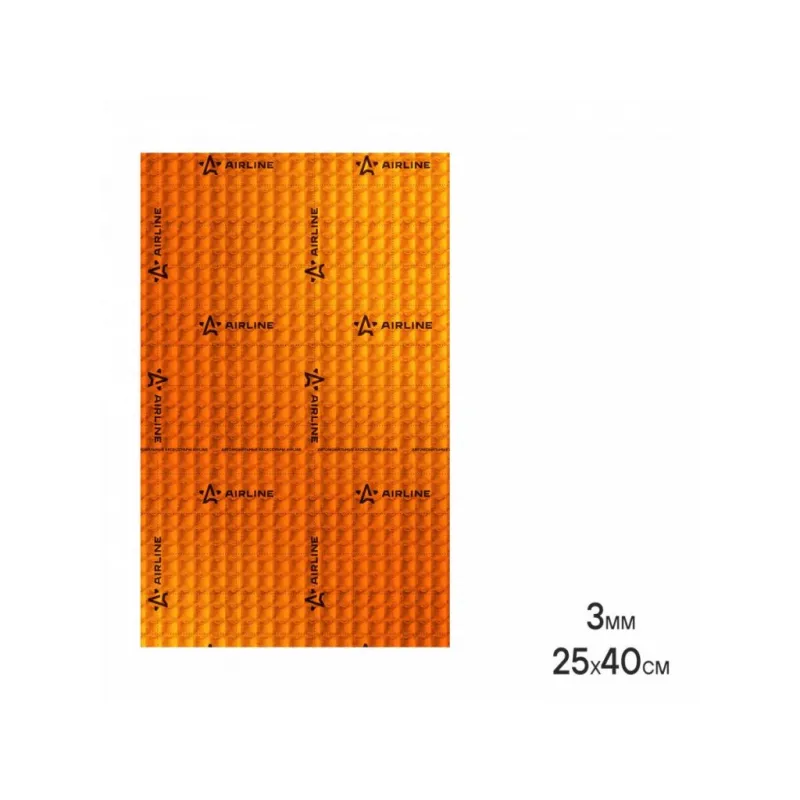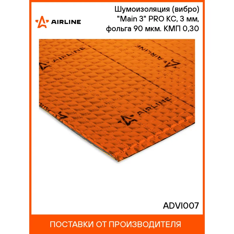 Шумоизоляция (вибро) "Main 3" PRO (25*40 см) КС, 3 мм, фольга 90 мкм. КМП 0,30 Описание: 3,0 мм. Фольга 90 мкм. КМП 0,30 Вибродемпфирующий материал повышенной эффективности, применяемый для шумоизоляции или акустической подготовки автомобилей. AIRLINE Main 3 - композиция лицевого защитного слоя из алюминиевой фольги с рисунком, снабженной тиснением и полимерной бутилкаучуковой самоклеющейся композицией (мастикой). C монтажной стороны материал защищен силиконизированной бумагой. Состав полимерной композиции характеризуется стабильностью показателей адгезии к металлическим поверхностям, хорошей клейкостью, умеренной общей каркасностью и средней прочностью вибромастики. Виброизоляция работает в широком диапазоне температур, сохраняя свои рабочие свойства: - утяжеляет конструкцию, за счет своей массы; - придает каркасность при помощи толстого слоя фольги с тиснением; - отличные вязко-пластичные показатели мастики при цикличных перепадах температуры; - хорошая адгезия к металлу (не менее): от 5 Н/см - удобство при монтаже, эластичный материал. -пригоден для монтажа на поверхностях имеющих сложную конфигурацию; -коэффициент механических потерь (КМП) составляет 0,30ед. (где 0- полное отсутствие поглощения, 1-абсолютное поглощение). Рекомендуемые зоны обработки: пол салона, арки, тоннель, крыша салона, багажник, крышка багажника, перегородка моторного отсека со стороны салона. Пластиковые элементы отделки салона автомобиля, возможно обработать подкрылки со стороны арок, арки автомобиля, защиту картера.Внимание: Следует избегать близости к сильно нагреваемым элементам – двигателю, коллекторам, выхлопной системе. Монтаж: Перед осуществлением монтажа поверхность необходимо очистить от загрязнений и обезжирить растворителем. Снять защитный слой из силиконизированной бумаги или пленки и приклеить к поверхности. Для лучшего результата приклеивания, поверхность можно прогреть строительным феном и прокатать специальным роликом. Характеристики: Артикул: ADVI007 Монтажные работы при темп., С: +10/+35 Толщина фольги, мкм: 90 КМП, у.е: 0,3 Ширина, мм: 500 Рабочий диапазон температур, С: -40/+120 Адгезия к металлу (не менее), Н/См2: 5 Липкость, Н/См2: 7 Запах: нет Вес, кг/м2: 1,73 Толщина изделия, мм: 3 Ширина изделия, мм: 250 Длина изделия, мм: 400 Комплектация: Шумоизоляция, лист - 1 шт Гарантия: от 1 года.